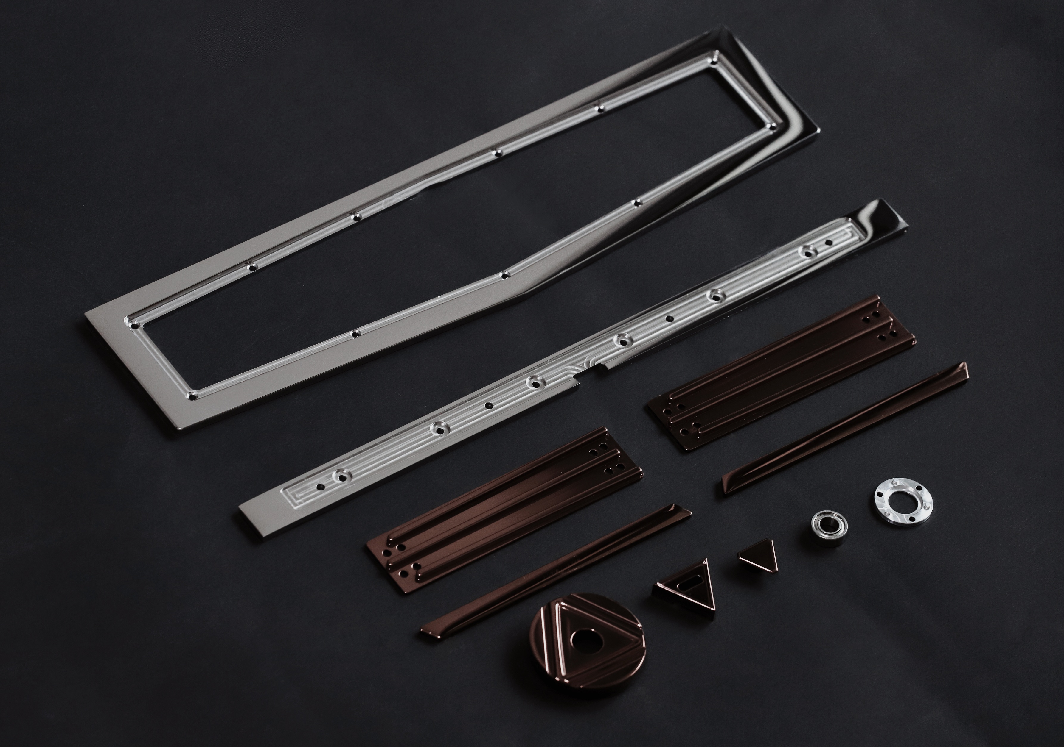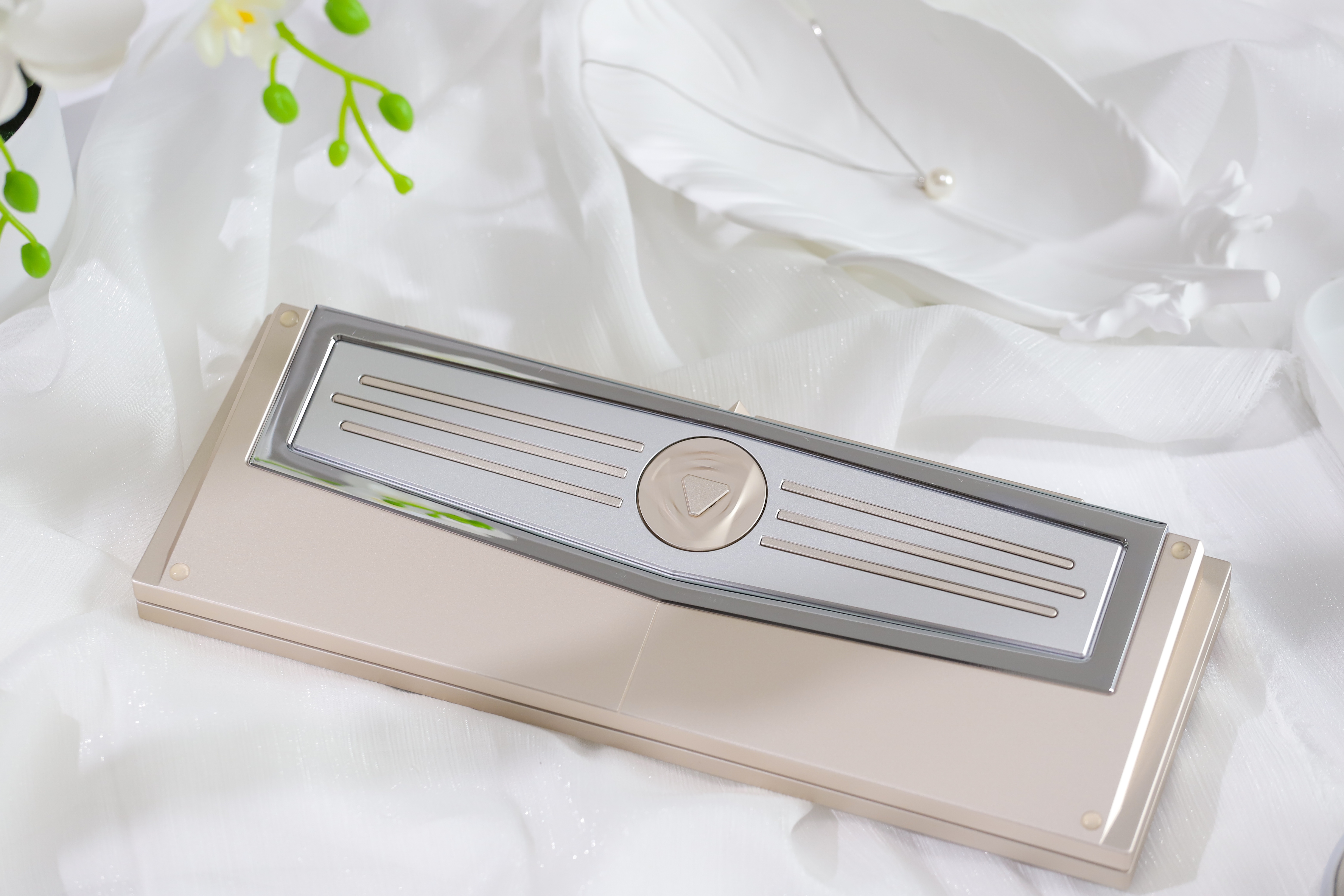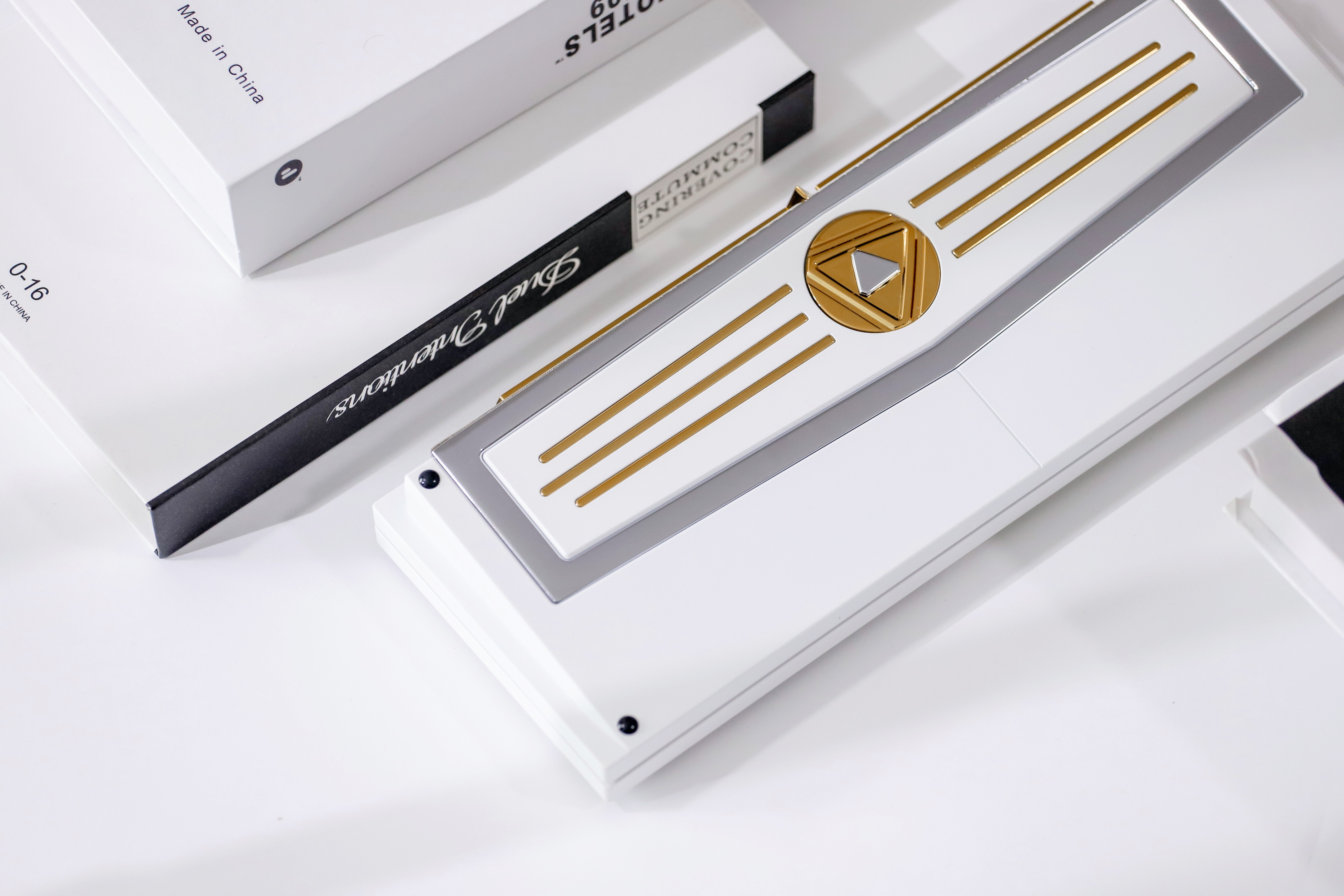 Mount: Gasket mount Connectivity: Single mode / Tri-mode Material: 6063 CNC Aluminum/ Stainless steel/ Brass Surfacing: Anodized, Spray paint Acoustic:0.5mm IXPE pad, 3.5mm Poron pad, 3 mm bottom pad, 3 mm epdm bottom pad Weight: Stainless steel PVD Support VIA & QMK (Can only be used in Windows system) No per-key RGB Net Weight: 1.2kg Weight With Package: 2.5kg Size: 313.5*112mm Default Plate: 1.6 mm thickness, With flex-cuts, FR4 material Typing Angle: 9° Compatible System: Support Windows & Mac Battery: 3600mAh (1800mAh*2) Rolling rate: 1000Hz (Wired), 125Hz (Bluetooth, 2.4G) Front Height: 18.7mm, R4 Height 19.7mm Caps indicator light: No Latency: 3ms(Wired), 8ms(Bluetooth) Add on: FR4/PC/Alu Plate without flex cuts