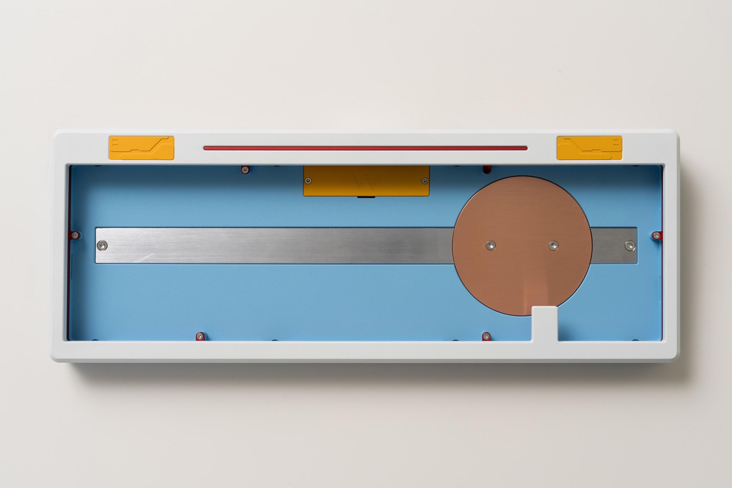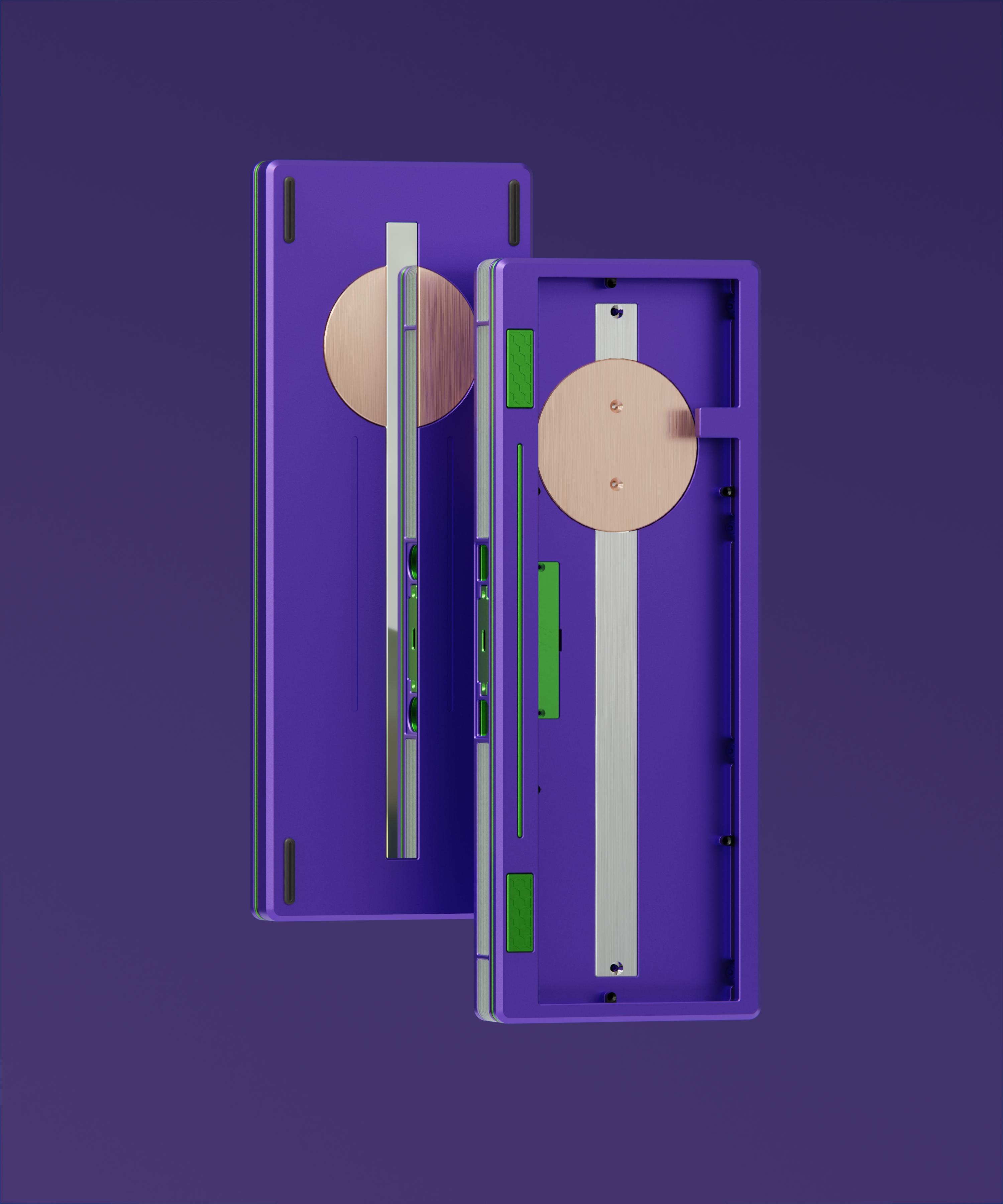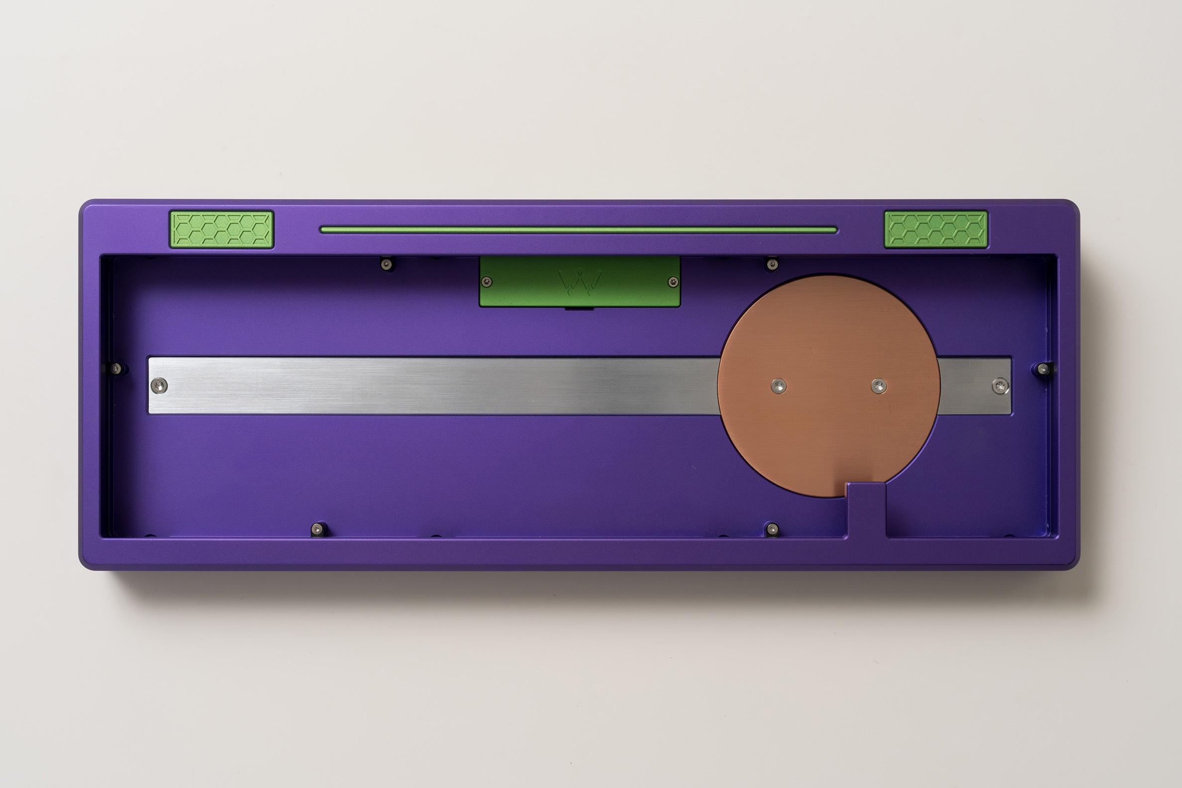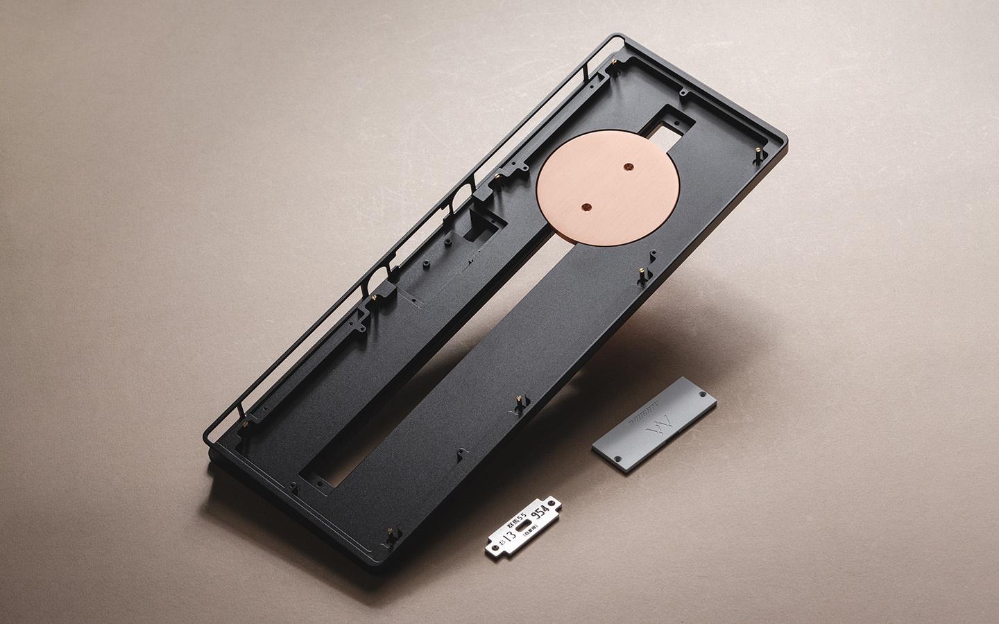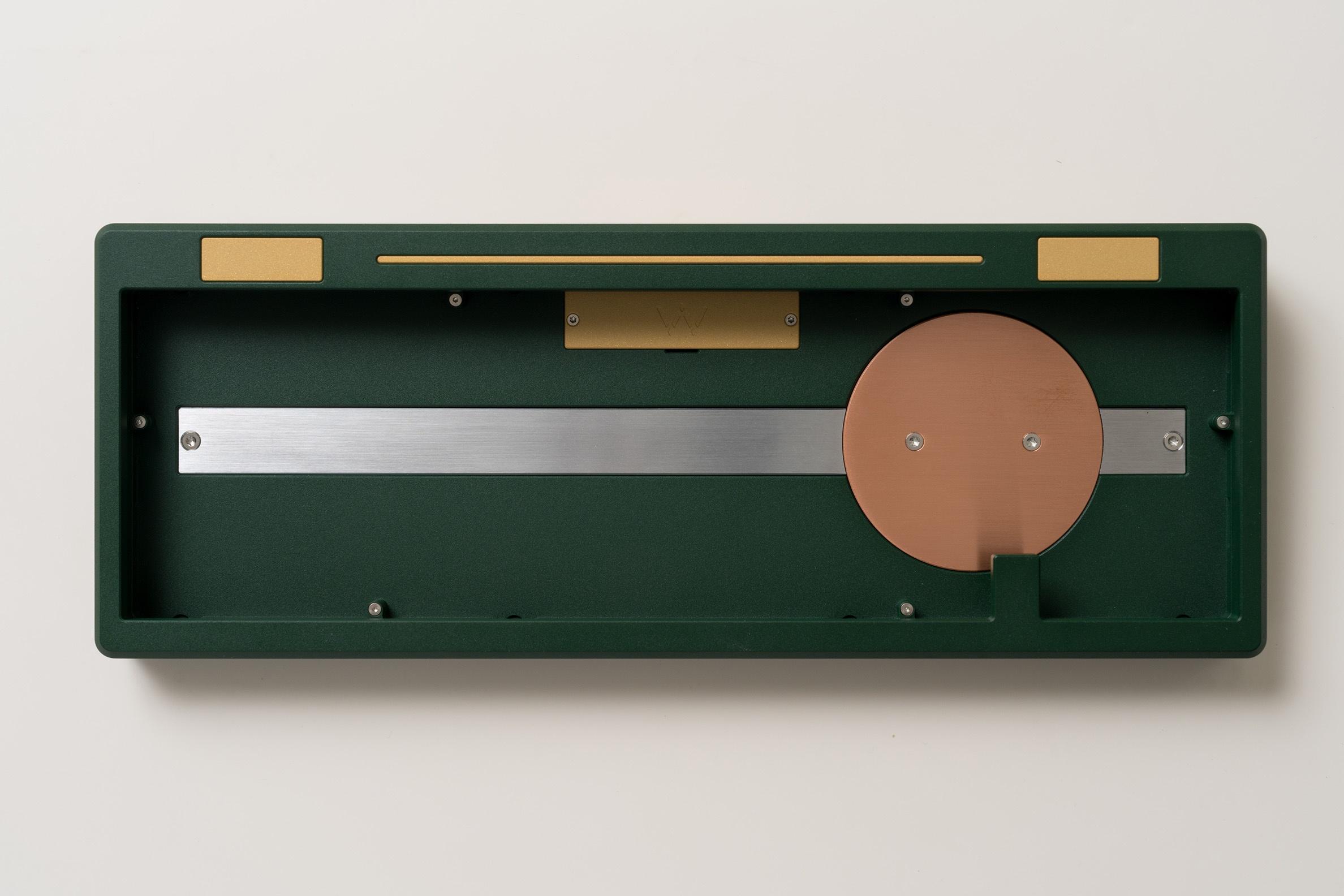 Layout: 65%+ Mounting: Top, Gasket, Spring (like a car suspension) Case: 6063 Aluminum CNC 7u spacebar Kit Weight: 2.14 KG Dimensions: 341.5mm x 126.9mm Stainless steel and copper weight QMK/VIA supported 1.6mm non-flex cut hotswap ANSI PCB and 1.6mm non-flex cut Solder PCB (support ISO layout with no form no plate build)