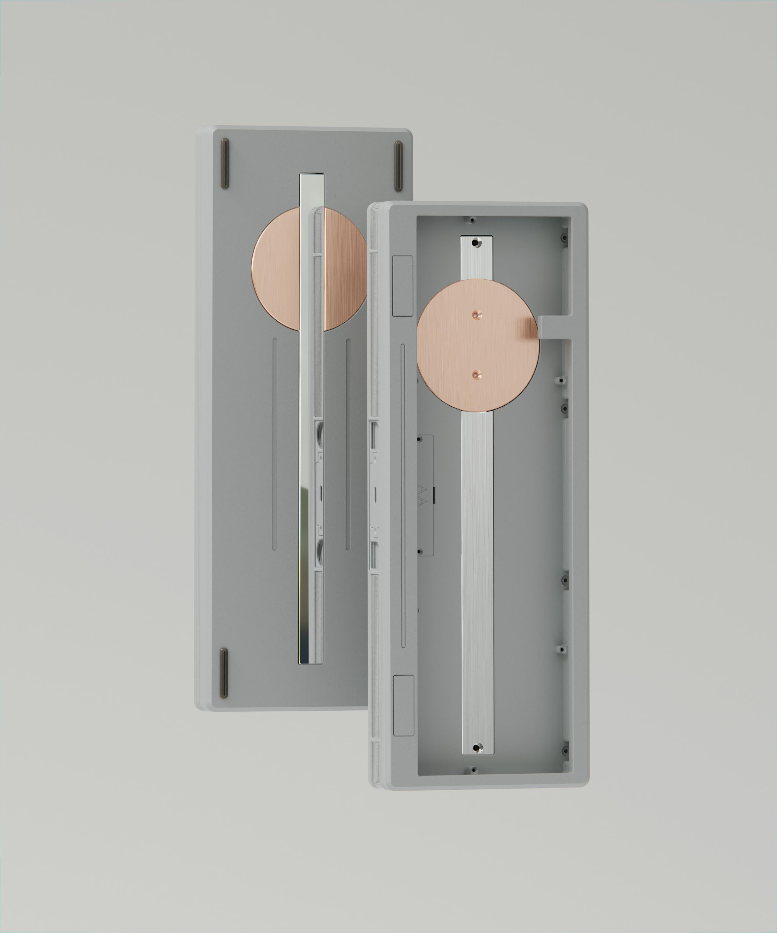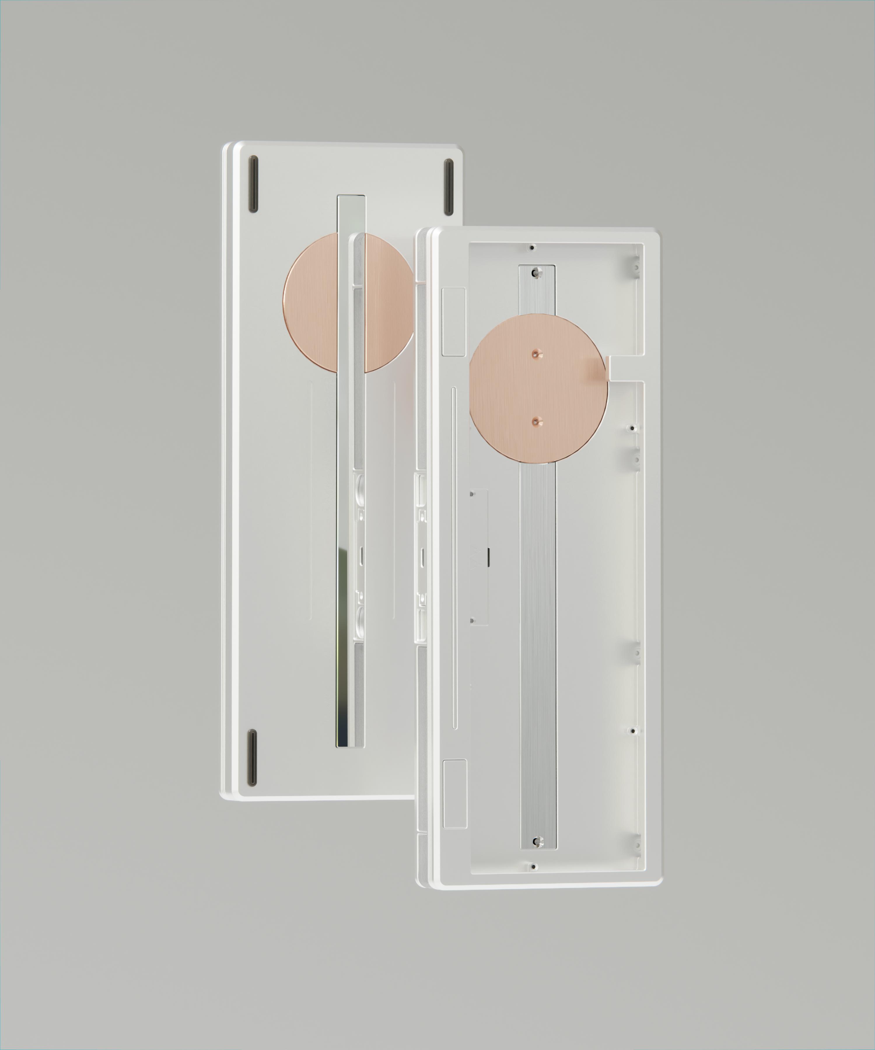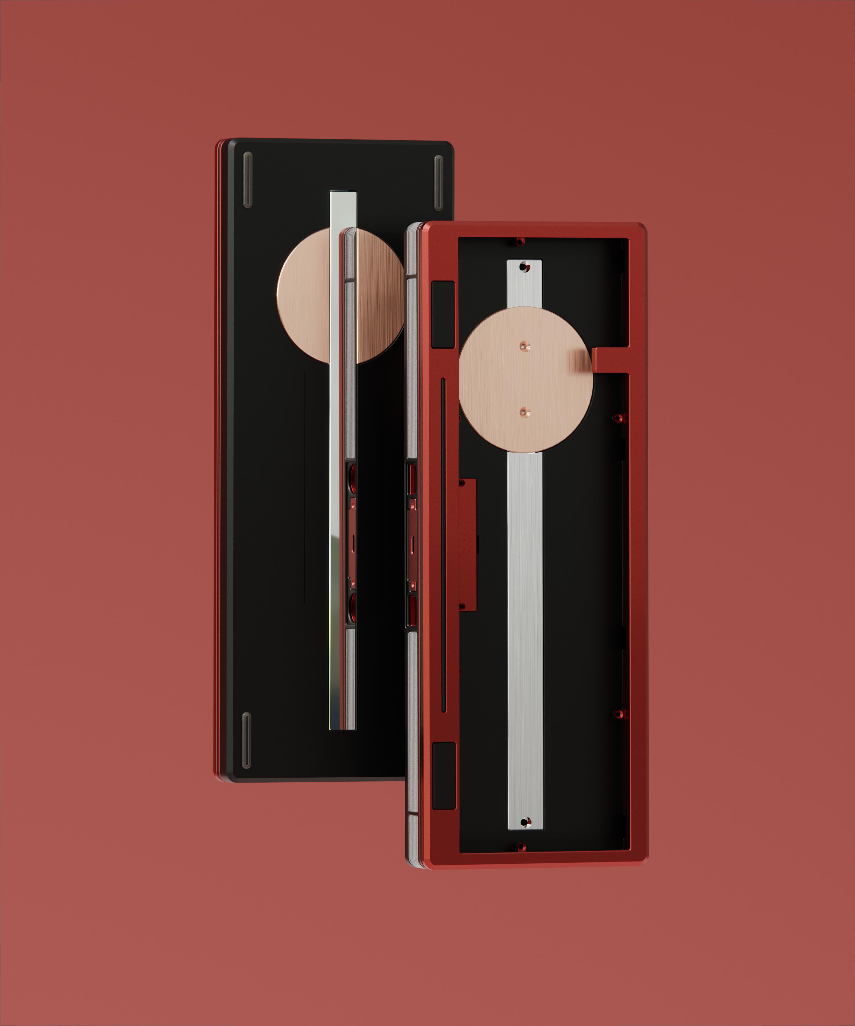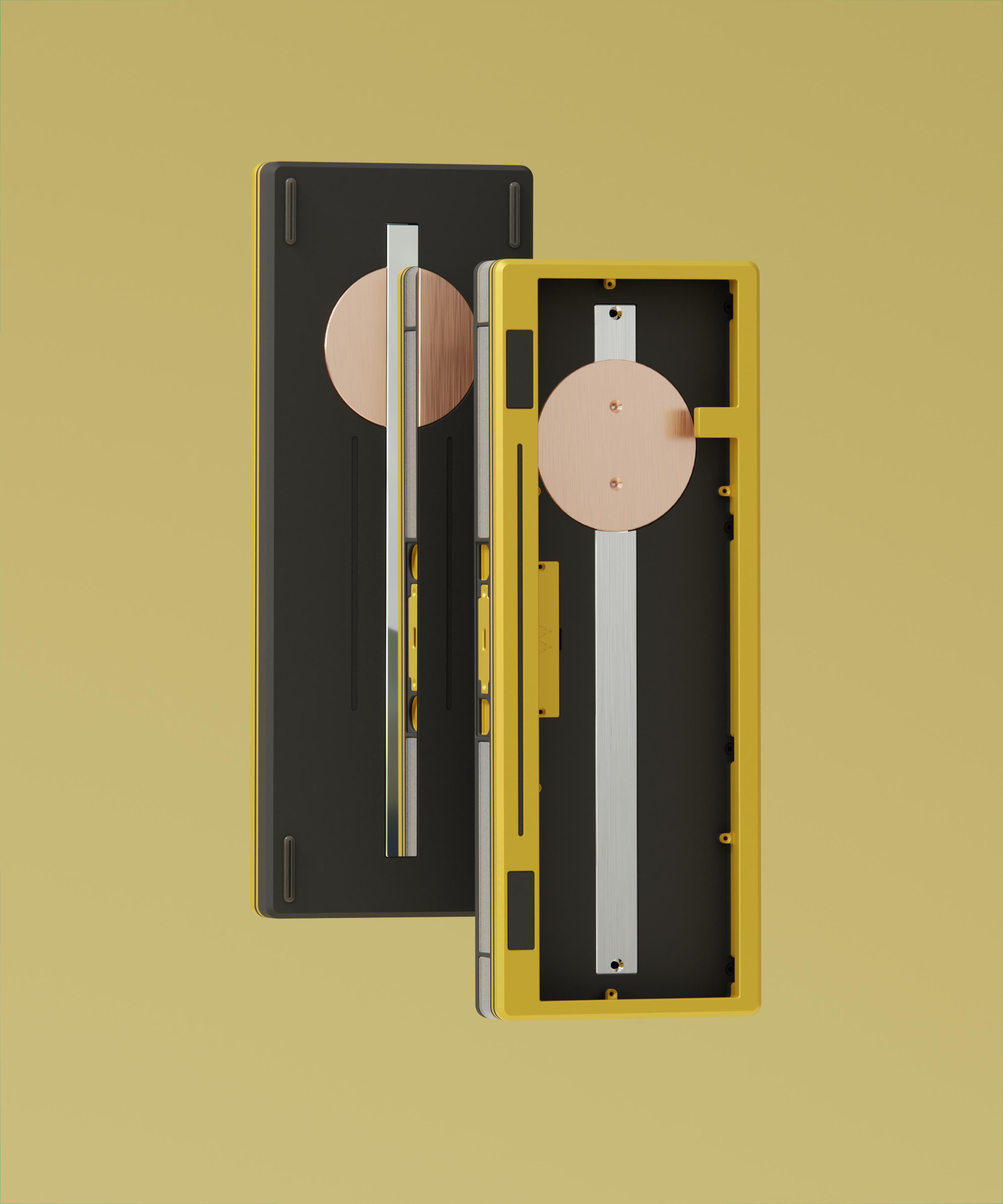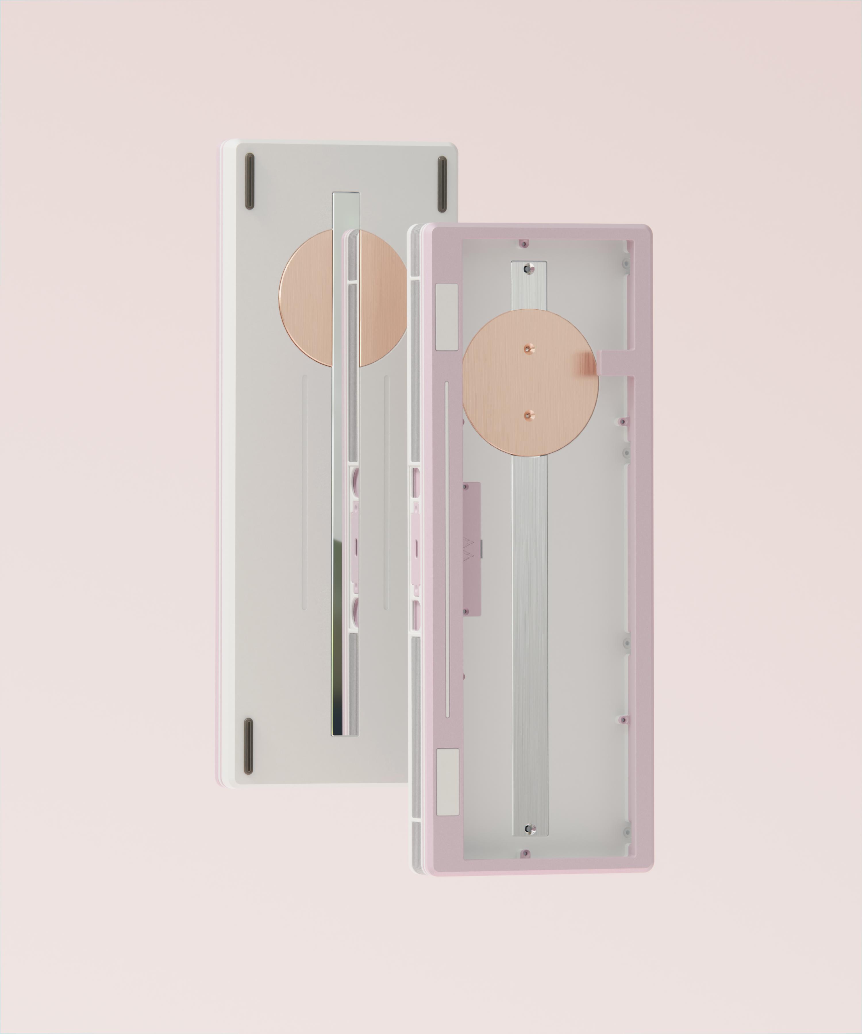 Layout: 65%+ Mounting: Top, Gasket, Spring (like a car suspension) Case: 6063 Aluminum CNC 7u spacebar Kit Weight: 2.14 KG Dimensions: 341.5mm x 126.9mm Stainless steel and copper weight QMK/VIA supported 1.6mm non-flex cut hotswap ANSI PCB and 1.6mm non-flex cut Solder PCB (support ISO layout with no form no plate build)