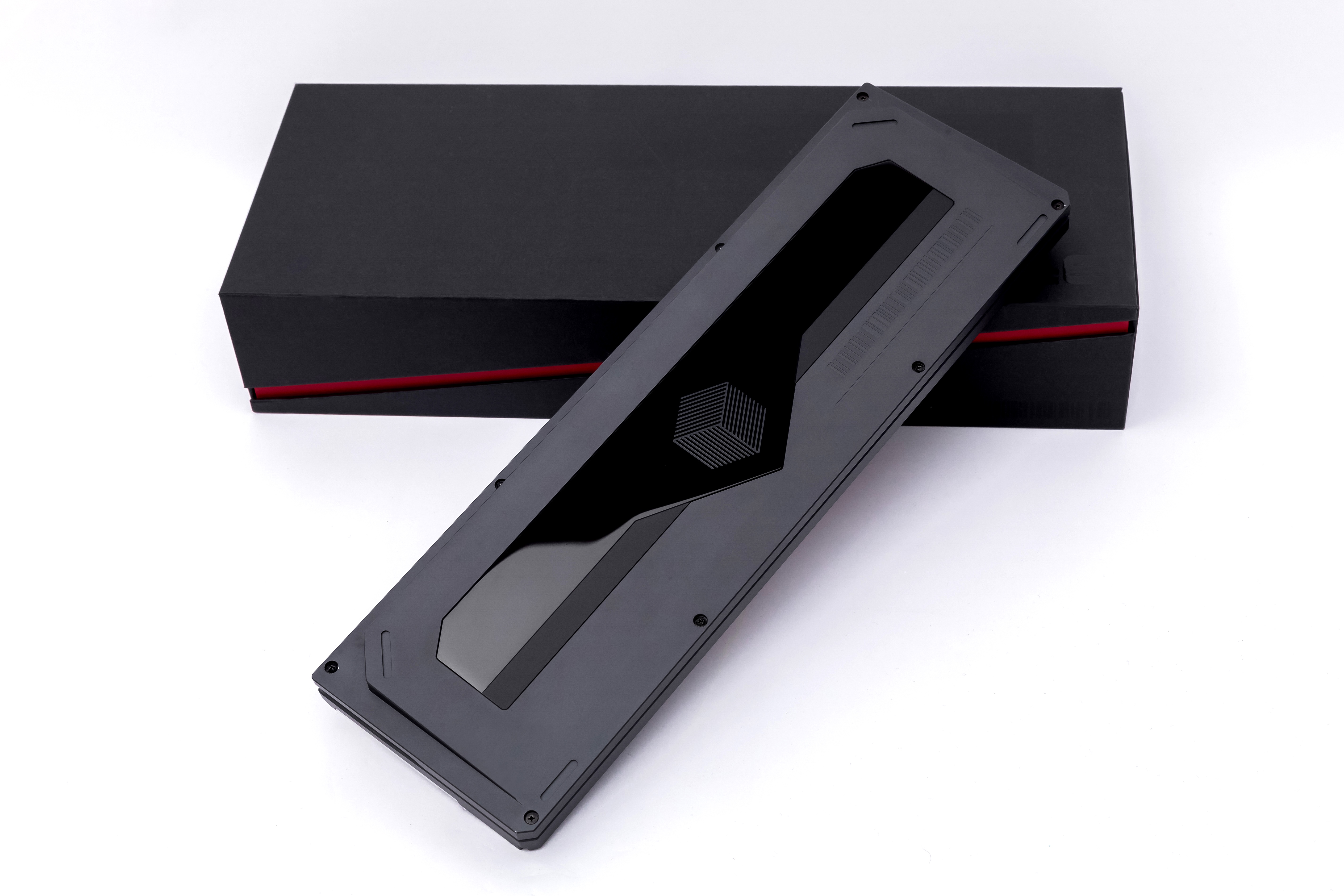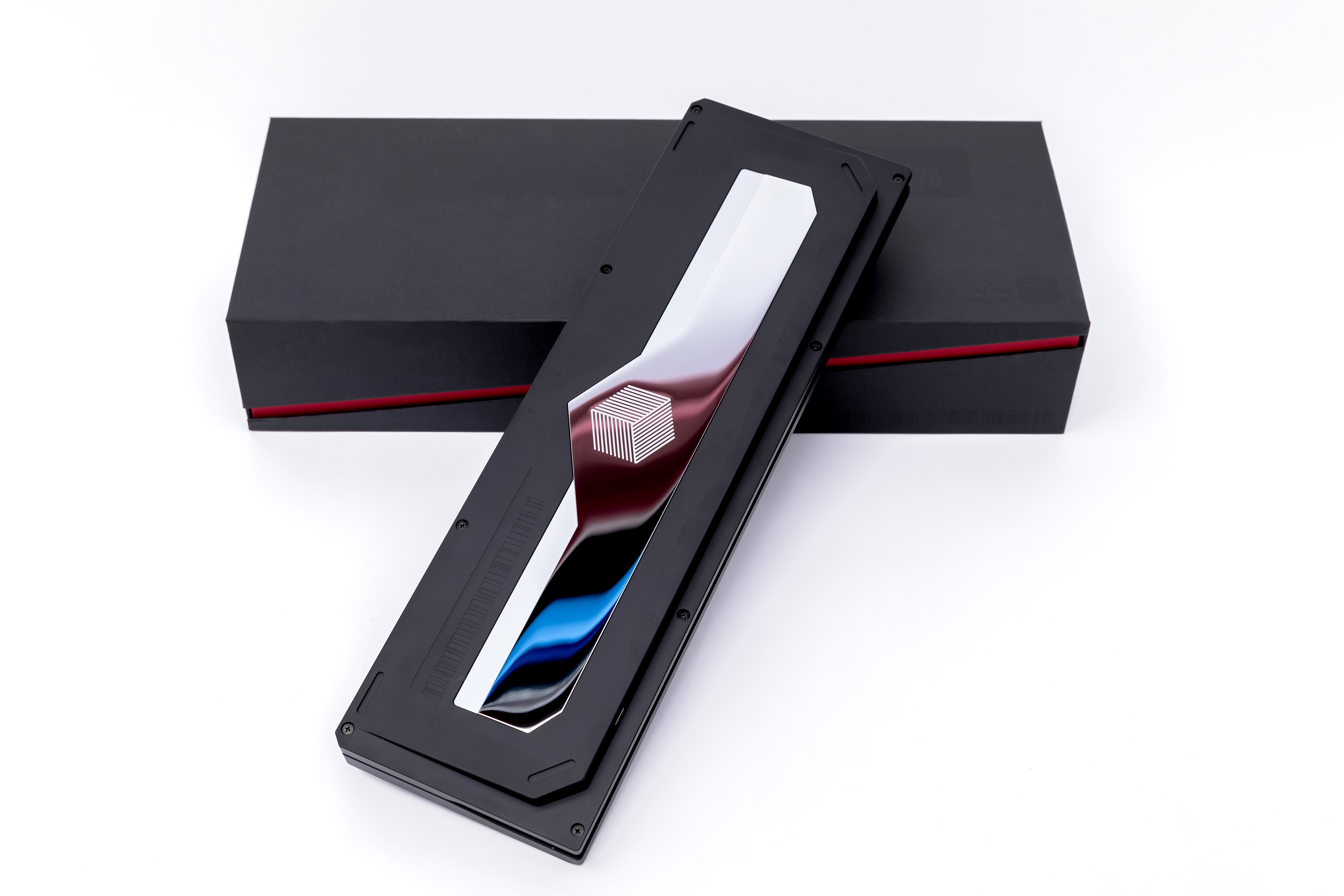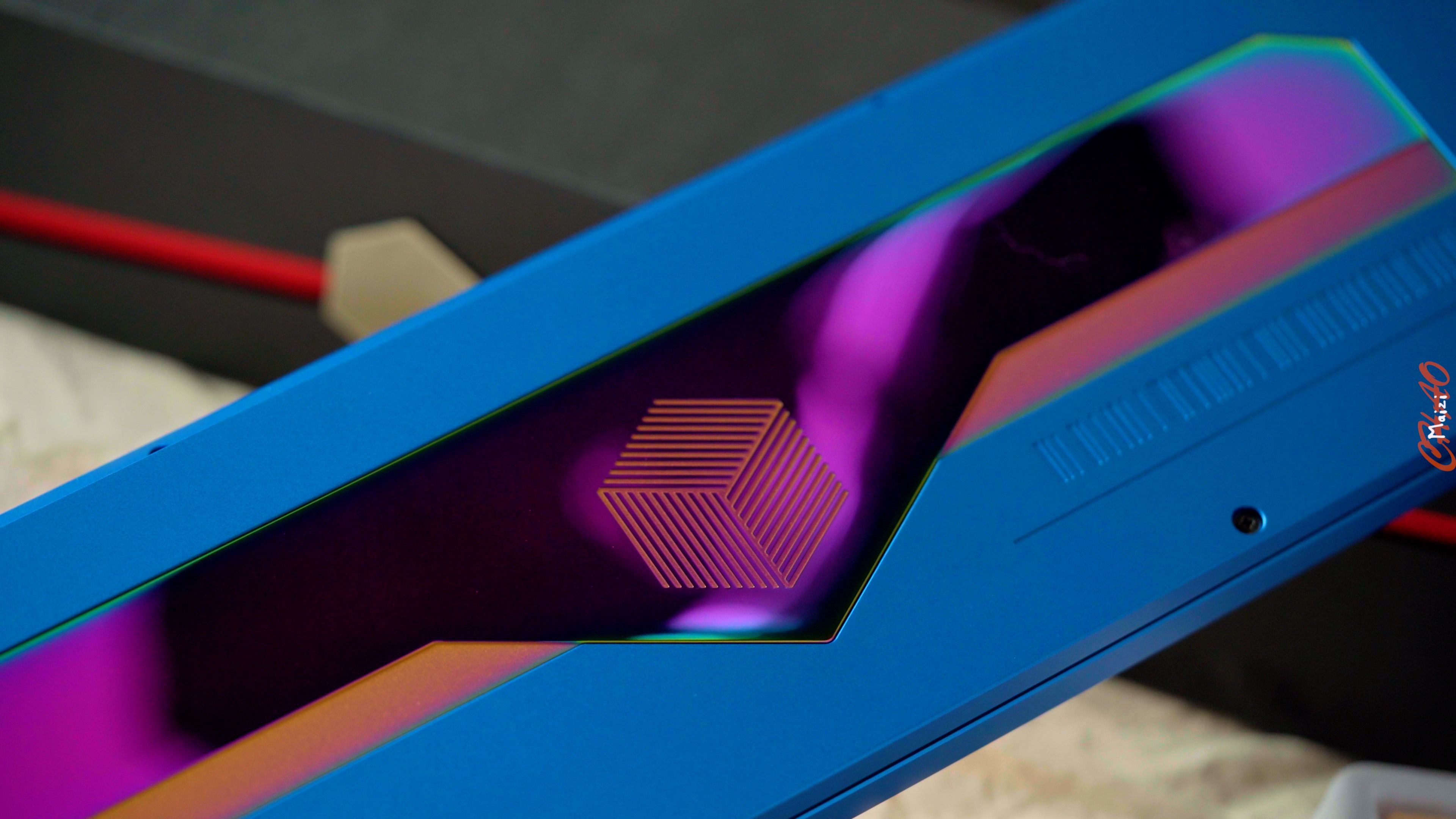 The bottom of the Geometry 70% uses a piece of PVD stainless steel, with a more complex geometric figure in the middle. This figure is the theme logo of the kit, indicating geometry. The protruding inverted triangle below is matched with the mirror trapezoids on both sides, and the trapezoids are sunken to increase the level.