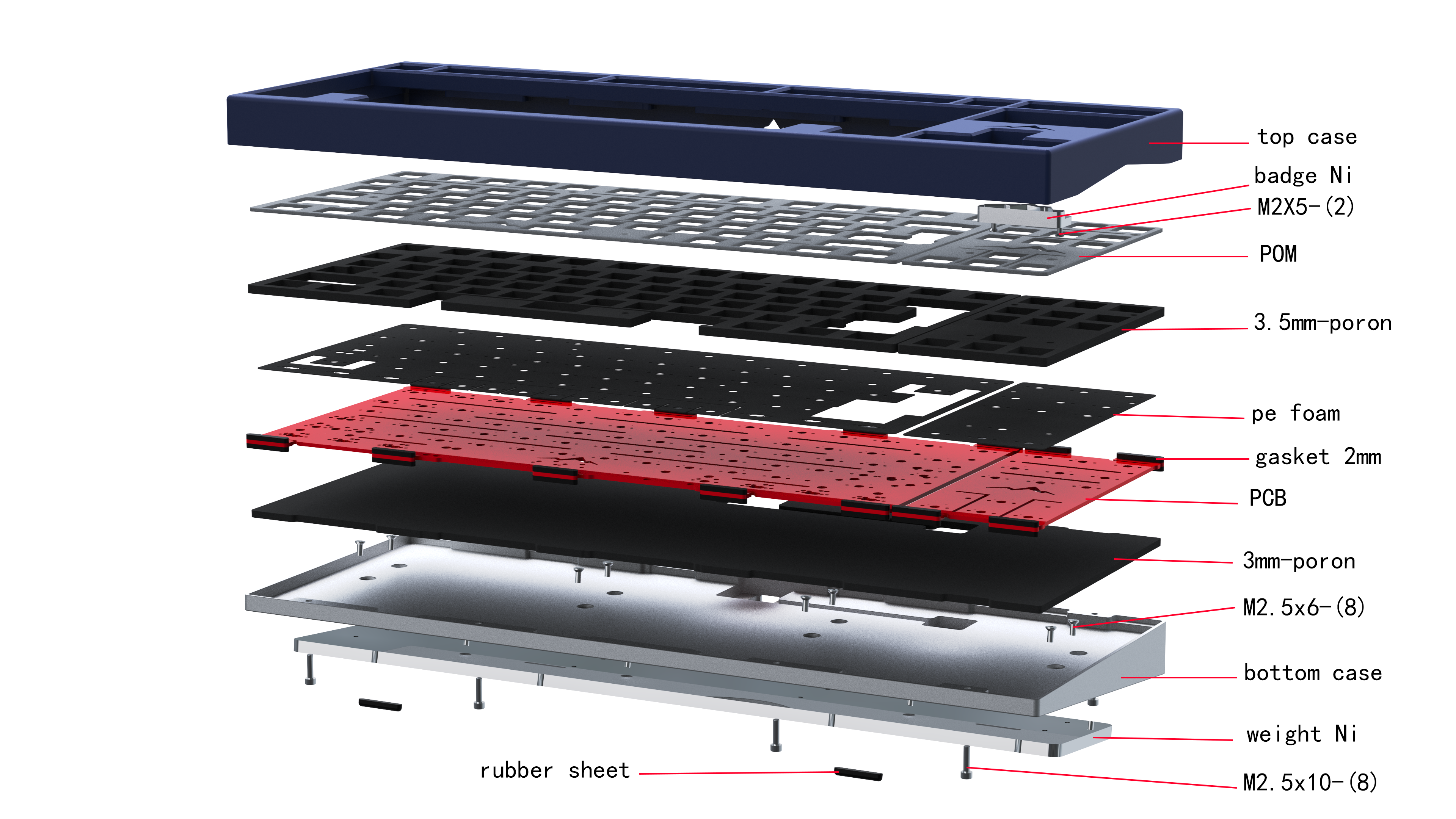 The plateless design can restore the original sound of the switch to the maximum extent, gaskets give typing a more soft, therefore, GLACIER80 is designed with plateless Gasket structure as the original intention. Poron is still selected as the material of gasket and bottom foam.