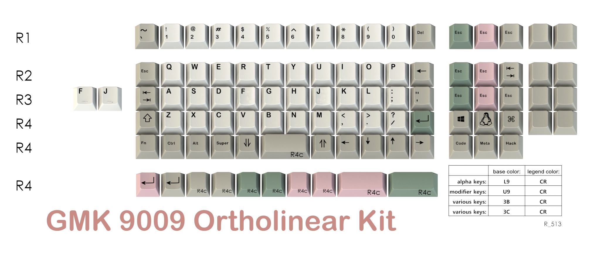 WhatObviously this is a group buy for the GMK 9009 Ortholinear and Vim kits. Below you will see the details of each kit.