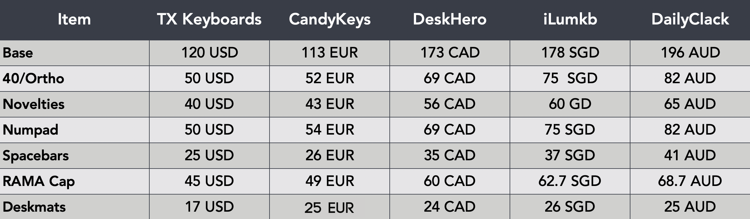 Shipping is expected to be May 2021The set can be found from these vendors below!US: TX Keyboards Buy Here! EU: CandyKeys Buy Here! AUS: DailyClack Buy Here! Asia: iLumKB Buy Here! Canada: DeskHero Buy Here! Renders!https://imgur.com/a/KrsCextColors Used: