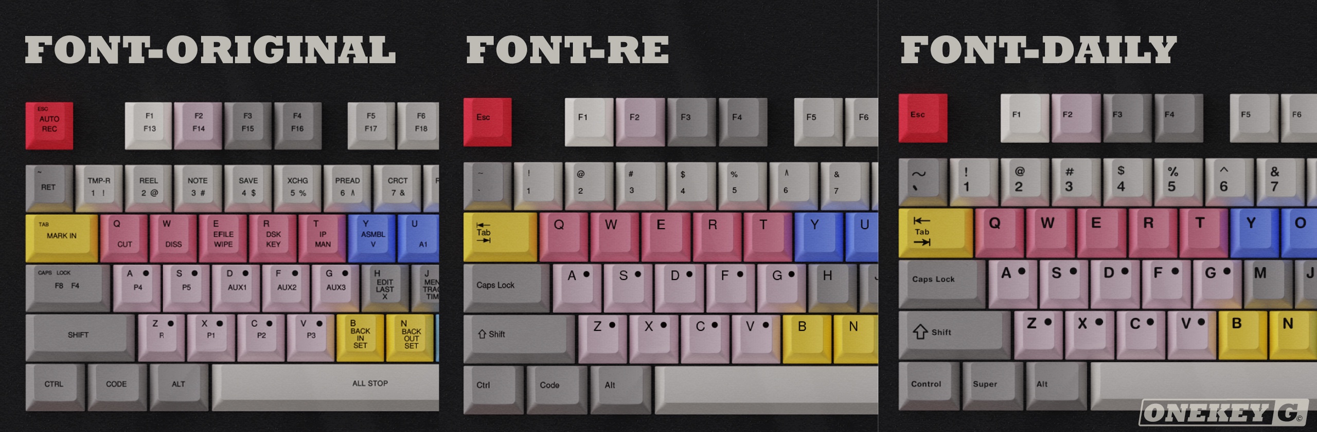 ● RE: A modern-style font that has been completely redesigned with only the color retained ( This font is derived from the new version of MU- set of keycaps. For details about this set of keycaps, please refer to the QQ group documents or the subsequent IC.)