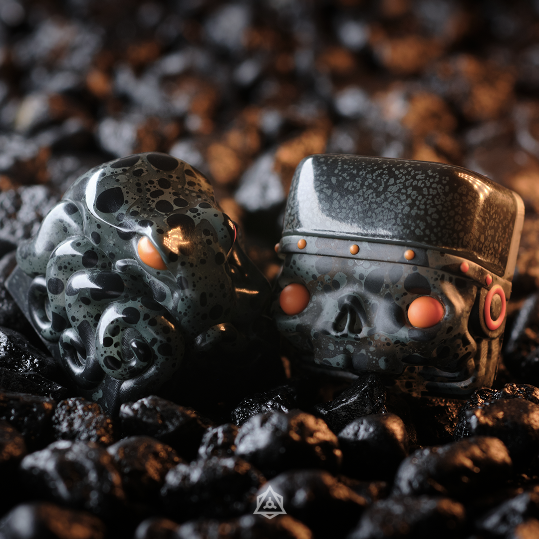 Inspired by charred wood, fire and volcanic rock, the concept for this set is orange alphas that stand out like embers against the grey base color and dark grey modifier legends.