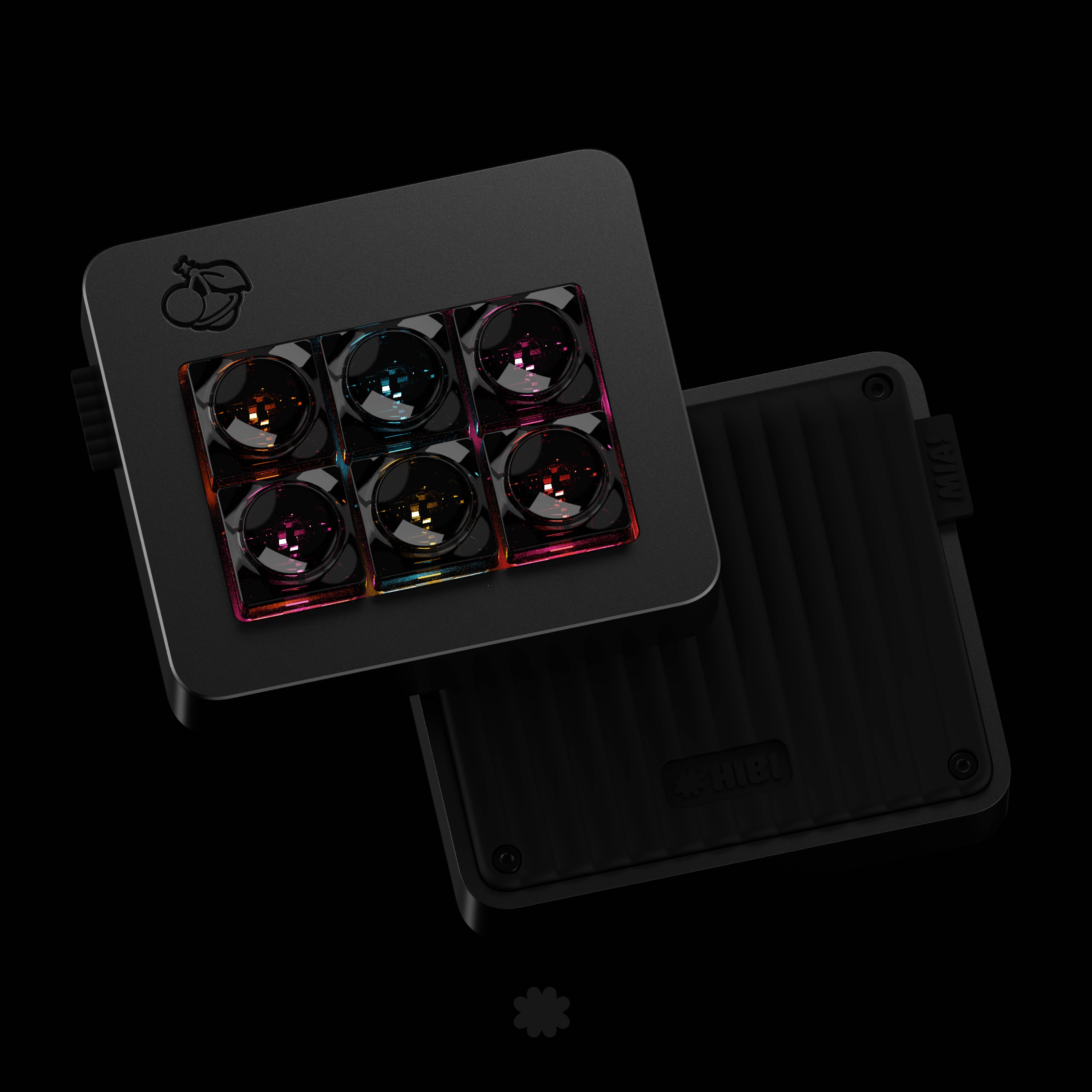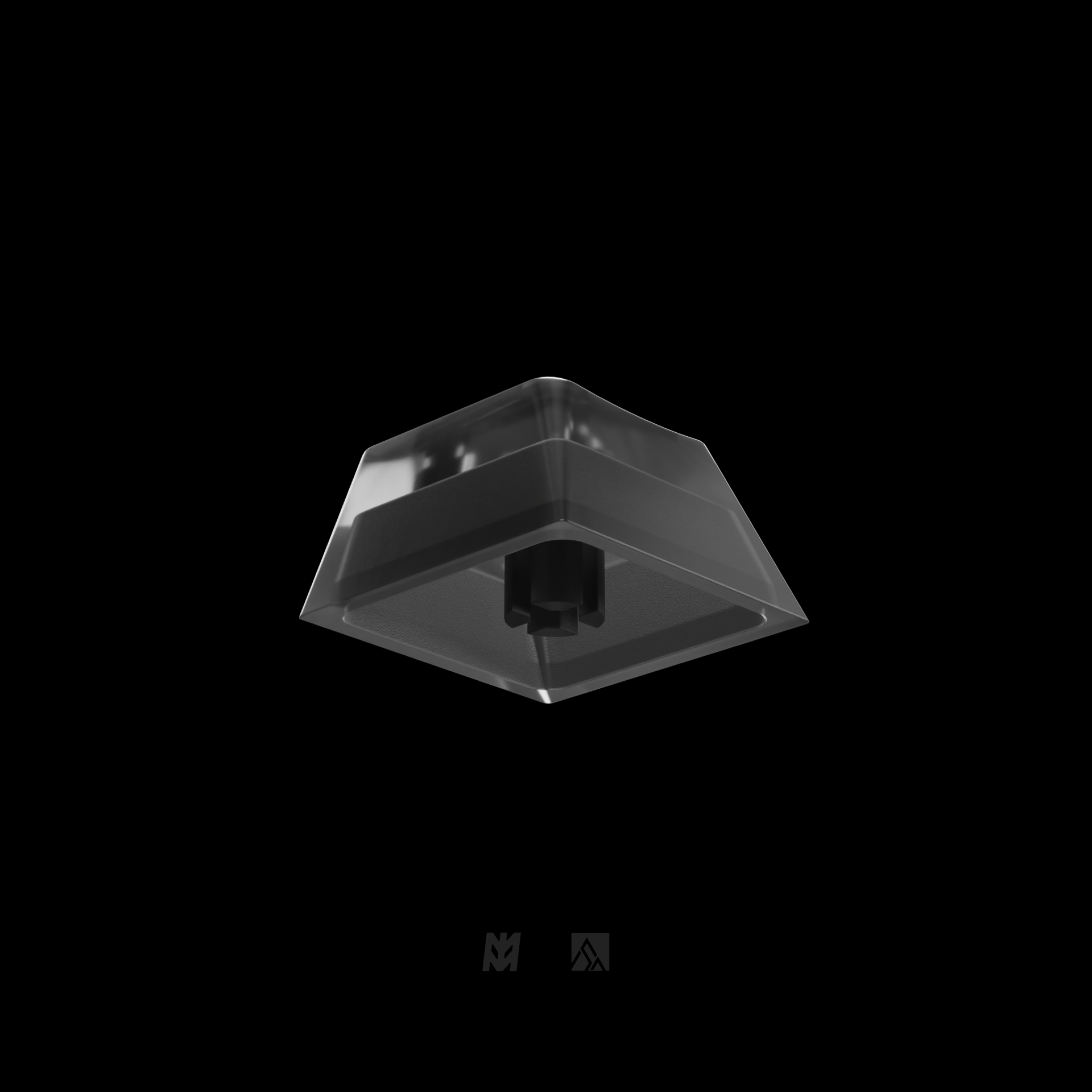 Transparent black PC caps (polished outside, bead blasted inside for contrast), alu accent held in place by a screw, black infill. Cherry profile, MX stem, R1 1U. Final product might look slightly different, really pushing the boundaries here!