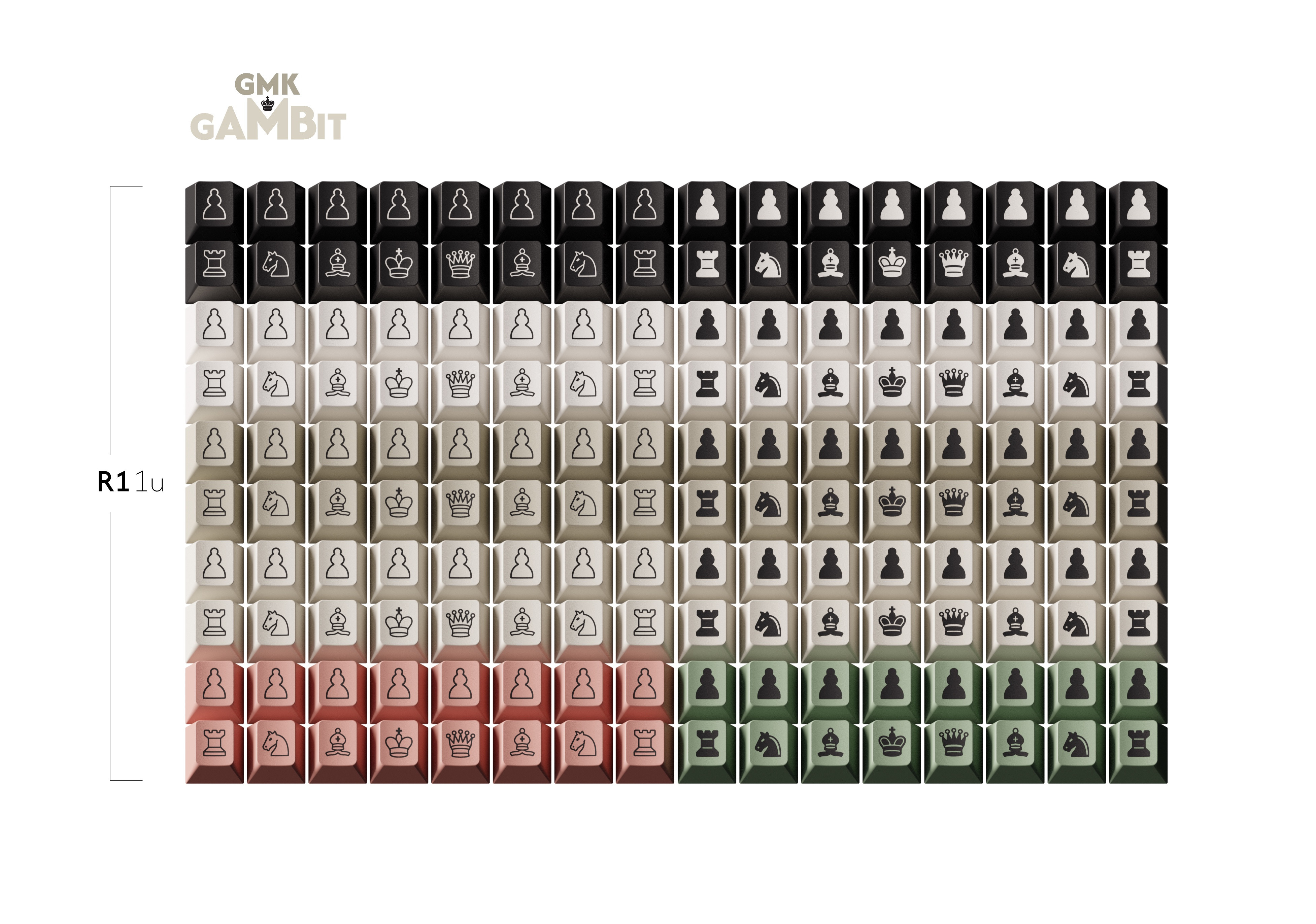 GMK CYL GambitPlay Chess!R1 1u Doubleshot ABS chess novelties keycaps — Iconic chess pieces for OG/Timeless GMK sets. Ideal for accents, XT/Macro rows, or simply just play chess with.