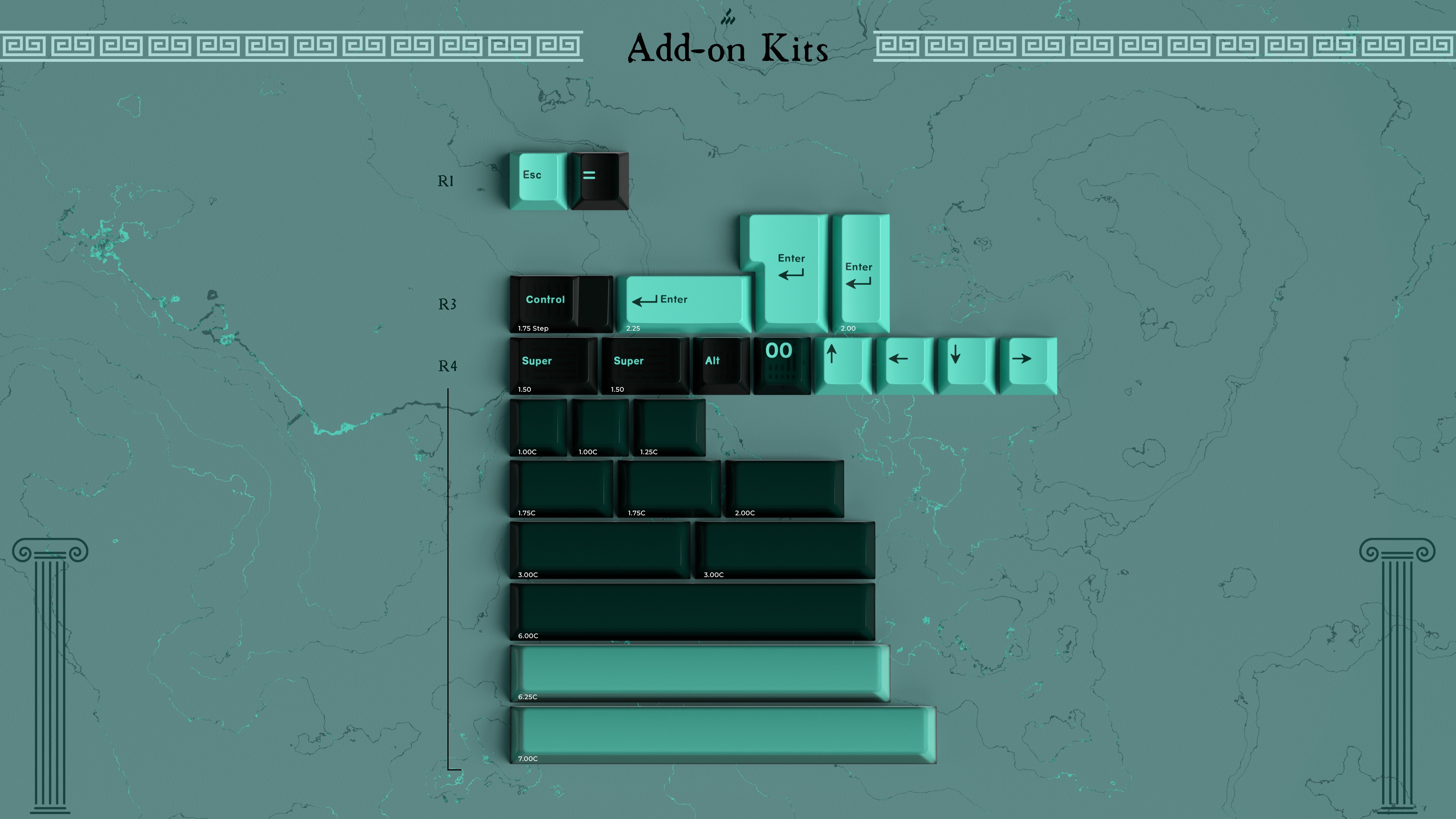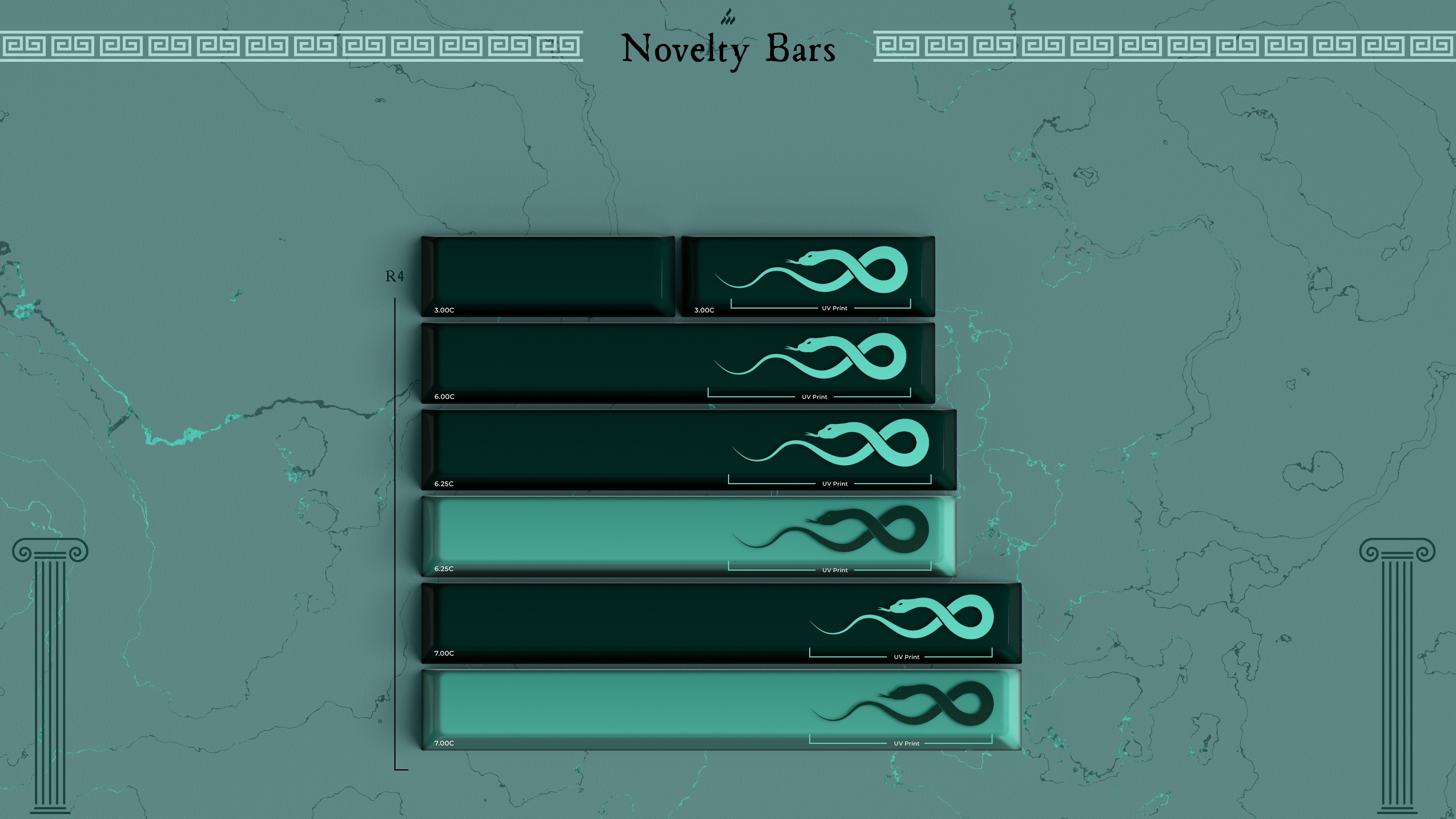 R1 Maiden Medusa : Symbol of purity and tragic innocence before the curse. R1 Athena – Goddess of wisdom and war. R1 Poseidon – God of the seas and storms. R1 Gorgon Medusa and transformation – A tragic, vengeful figure innocence turned into mythic terror. Dual-Face Medusa – One side as the innocent maiden, the other the cursed monster. ISO Enter : Inspired by Perseus with the Head of Medusa by Benvenuto Cellini. ANSI : Eyes of Medusa with a gaze of terror R1 Backspace Snake – Elegant but deadly symbolic of the lore. R2 Perseus’ Gear (Sword, Shield, Helmet) – His divine kit: the curved sword (harpe), mirrored shield from Athena, and the helm of Hades that made him invisible. R3 Perseus’ Boots R3 1.75u Temple of Athena R4 Athena Shield R4 Broken Scales R4 Hades – Associated with the helm and the underworld. R4 1.25u/1.5u Pegasus – The winged stallion born of Medusa’s blood. R4 1.25u/1.5u Chrysaor – Born alongside Pegasus, depicted as a warrior.
