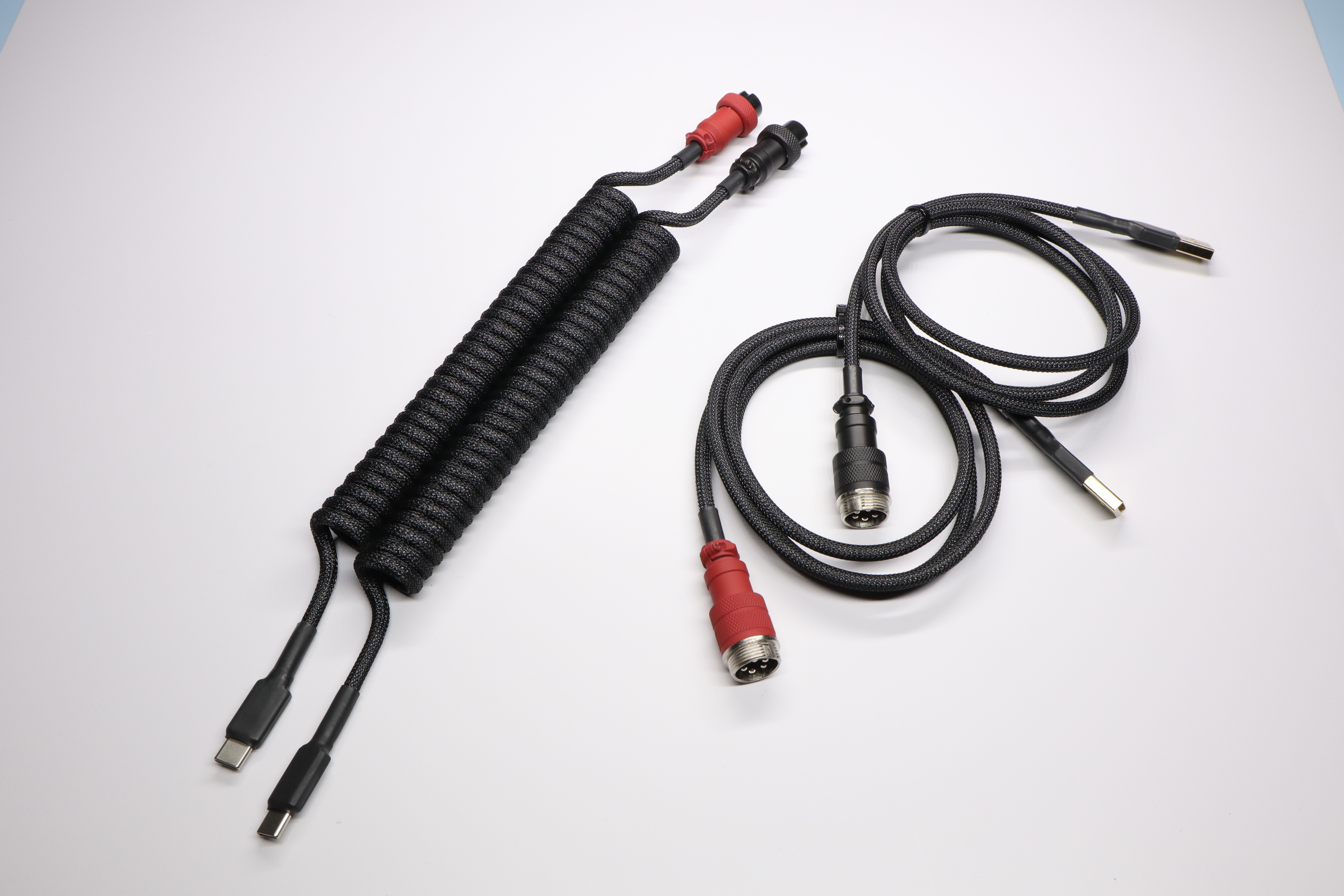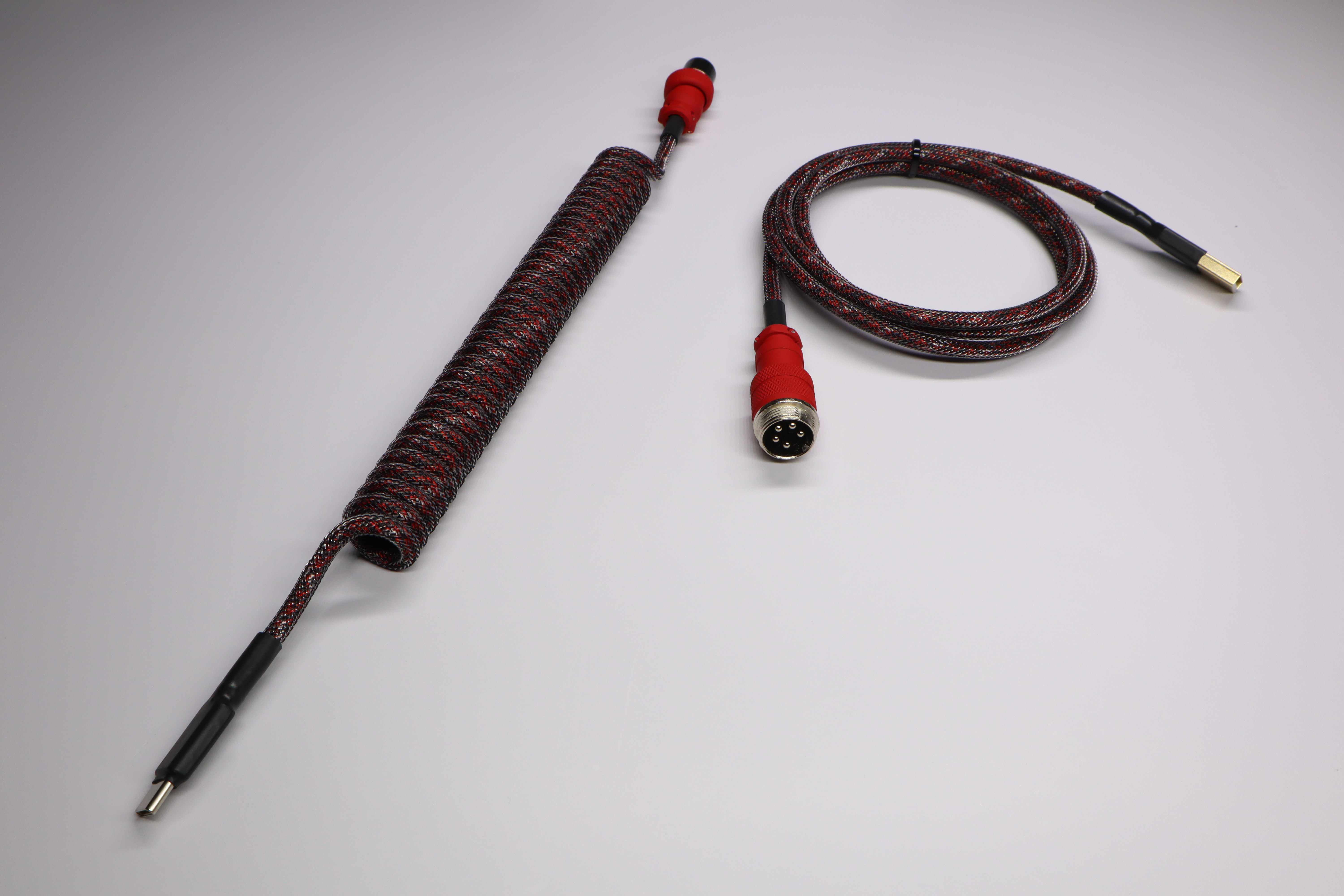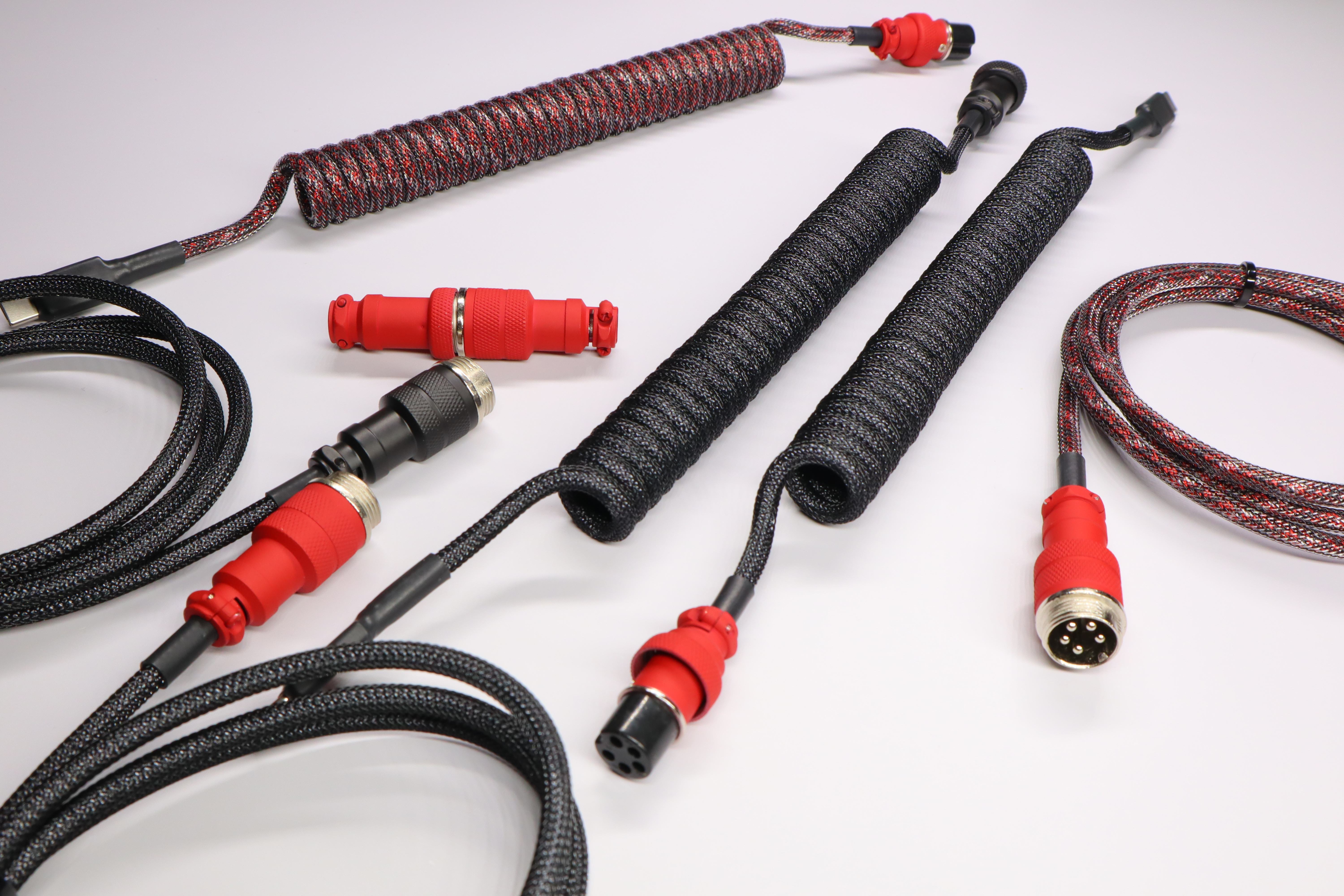 [Custom] CablesI've collaberated with Swiftcables and we've made 4 different custom coiled cable variants with colored aviators that's matching GMK Evil Dolch! We have 2 different paracords, Black paracord with black tech-flex and Red Camo paracord with carbon tech-flex. Both paracords will come with a coil and a colored aviator where the customer can decide between red or black! These cables will be sold through: Projectcables.com