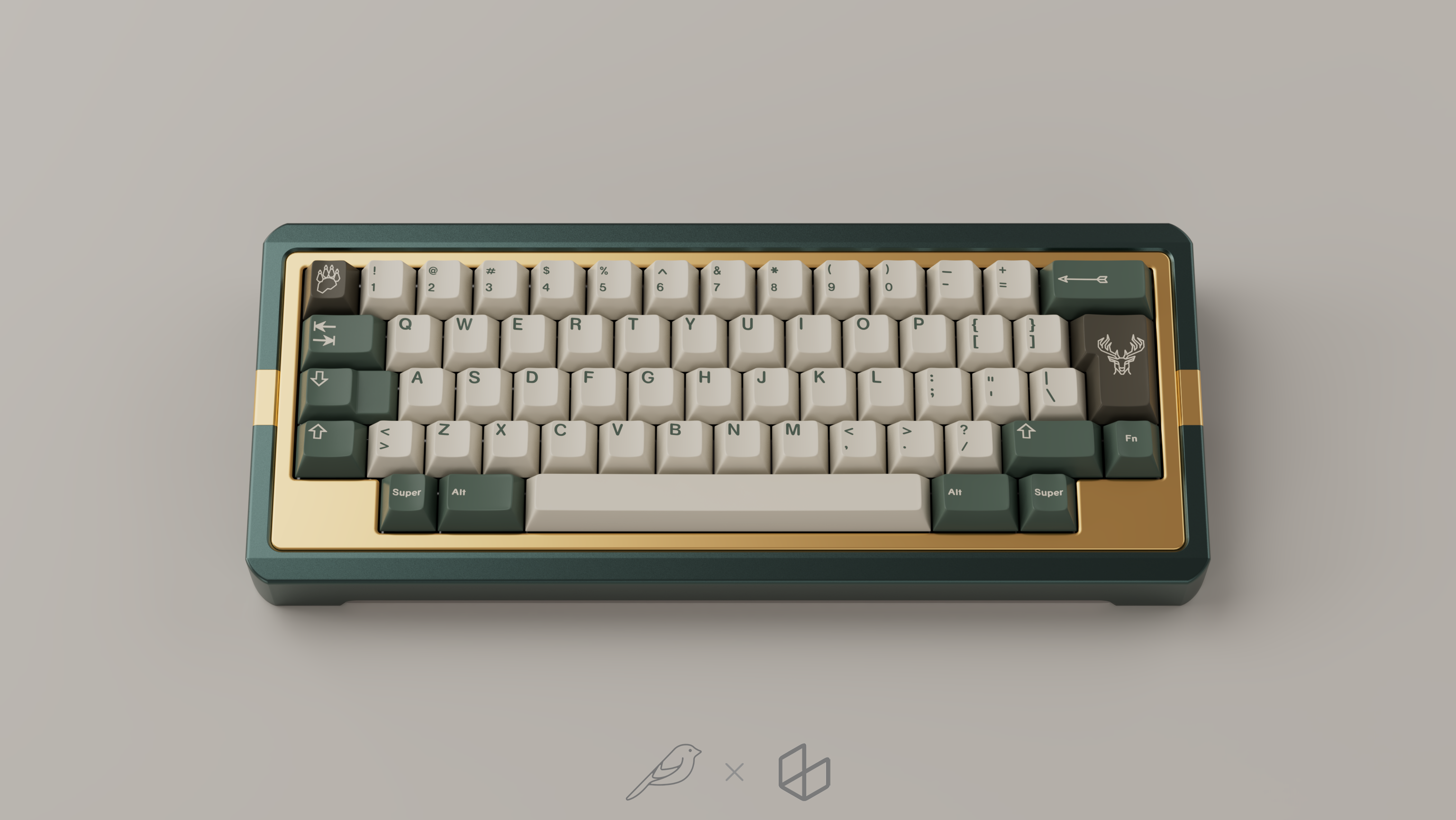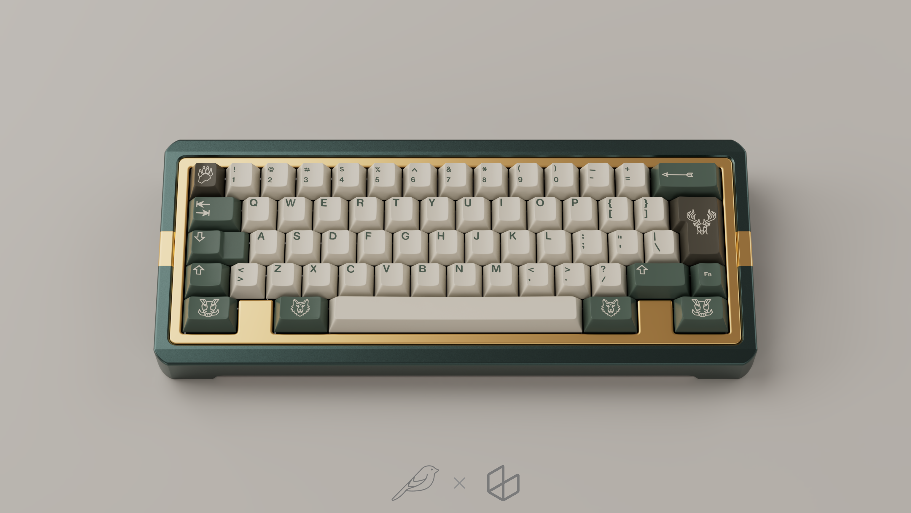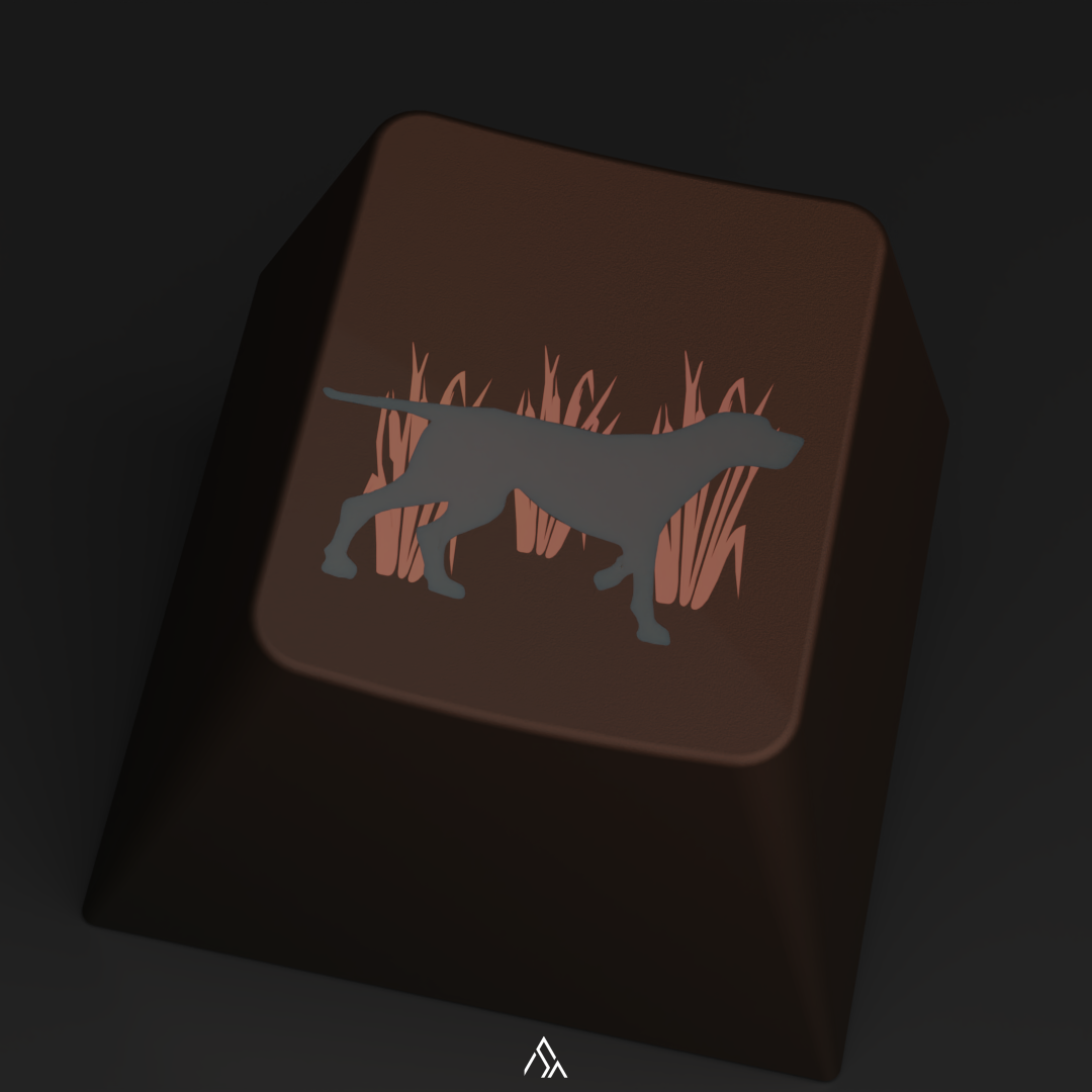 SPESIFICATIONS Keyset: Cherry profile, ABS, produced by GMK Artisan: R1, copper torch patina, lasered out grass so it is shiny copper and enamel infill on the dog, made by Salvun Deskmat: Stitched edges, 900x400x4mm