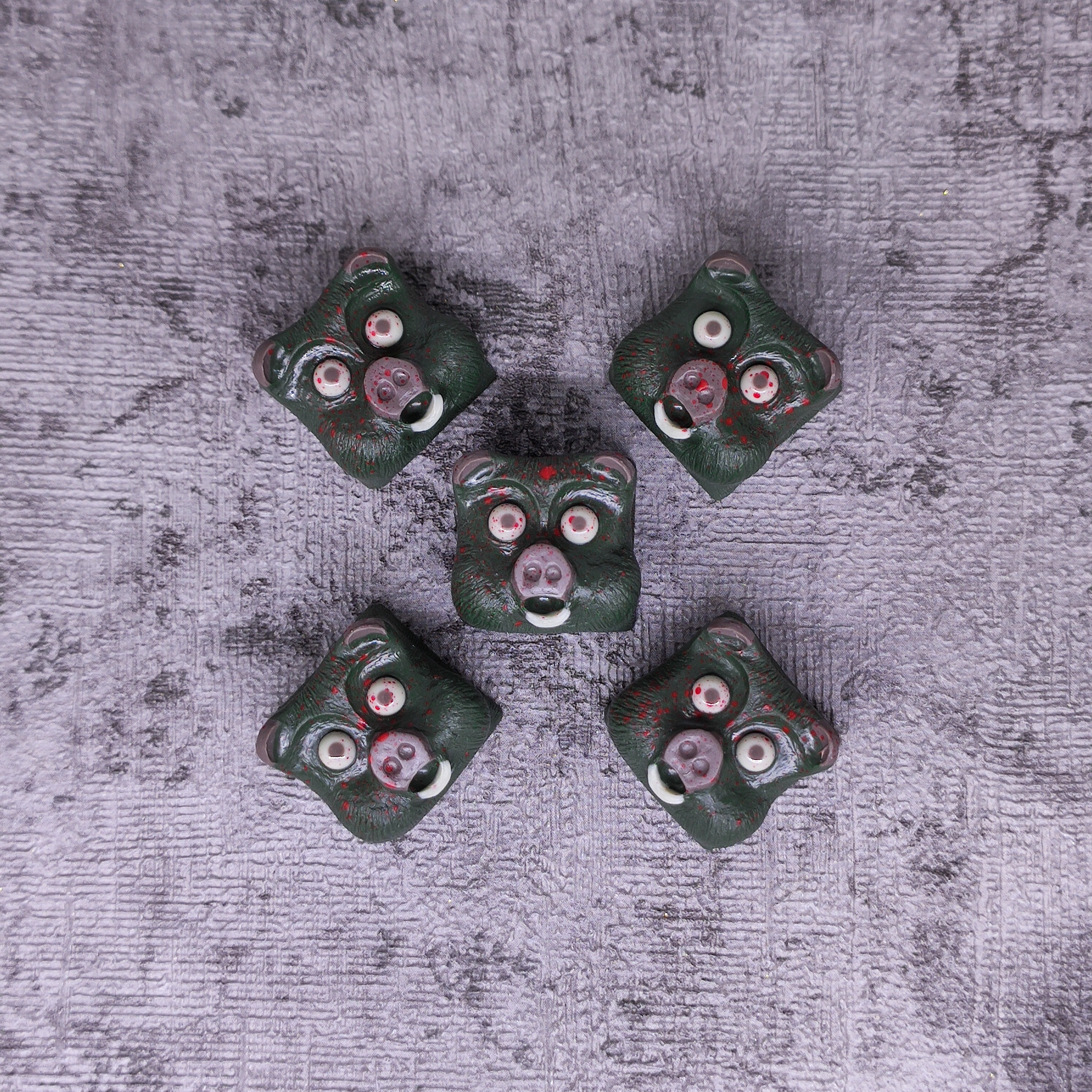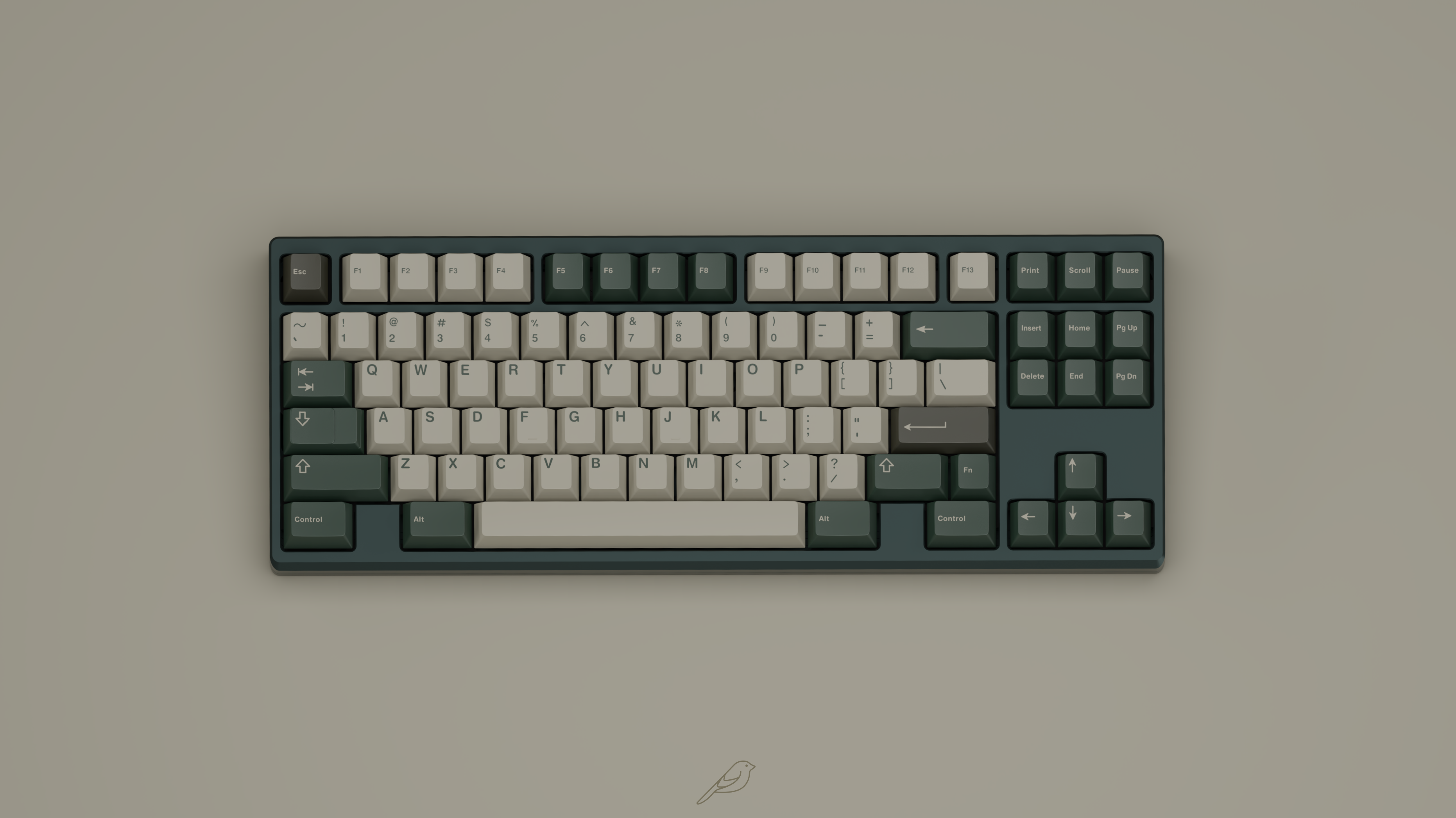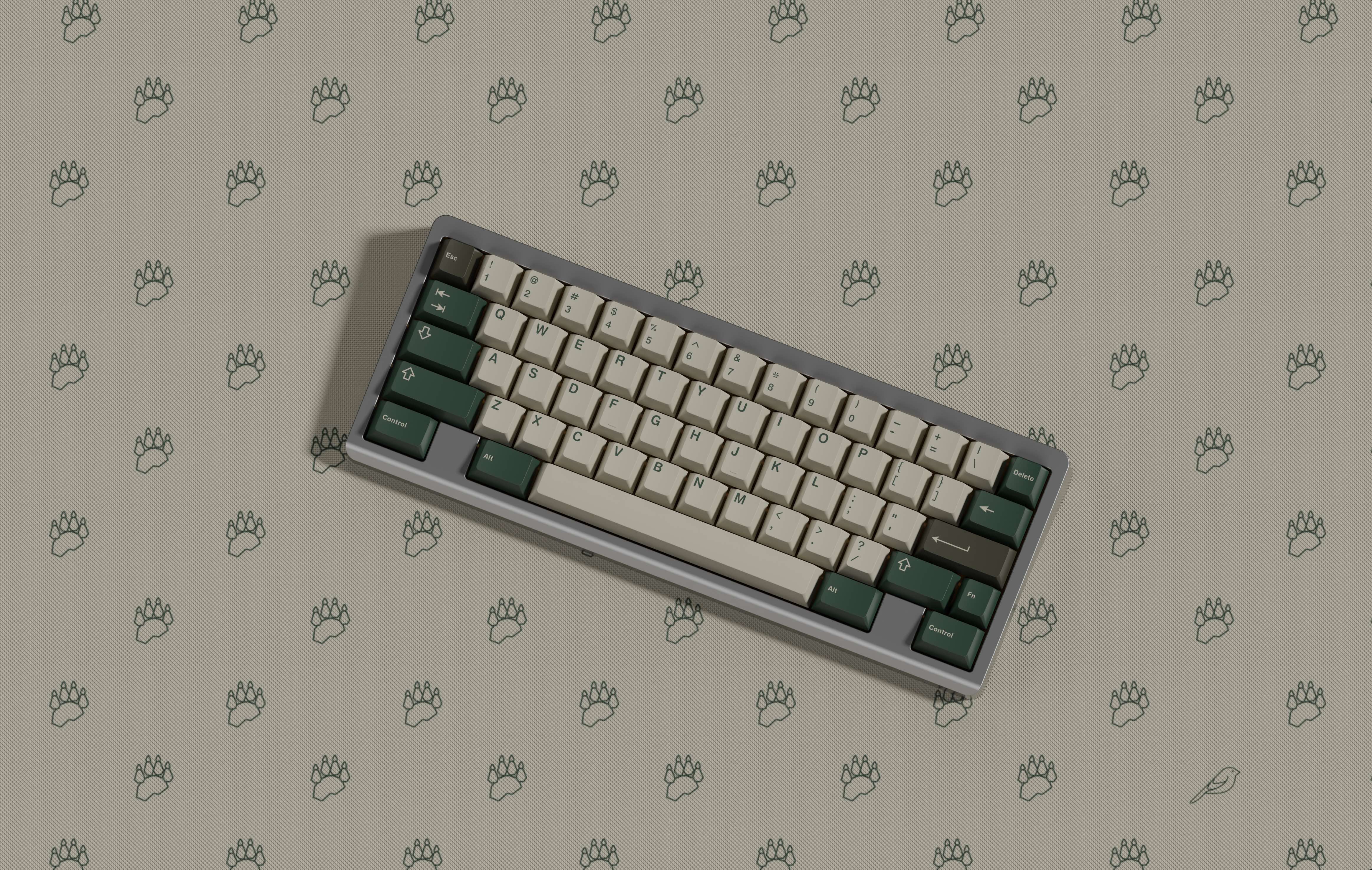 SPESIFICATIONS Keyset: Cherry profile, ABS, produced by GMK Artisan: R1, copper torch patina, lasered out grass so it is shiny copper and enamel infill on the dog, made by Salvun Deskmat: Stitched edges, 900x400x4mm