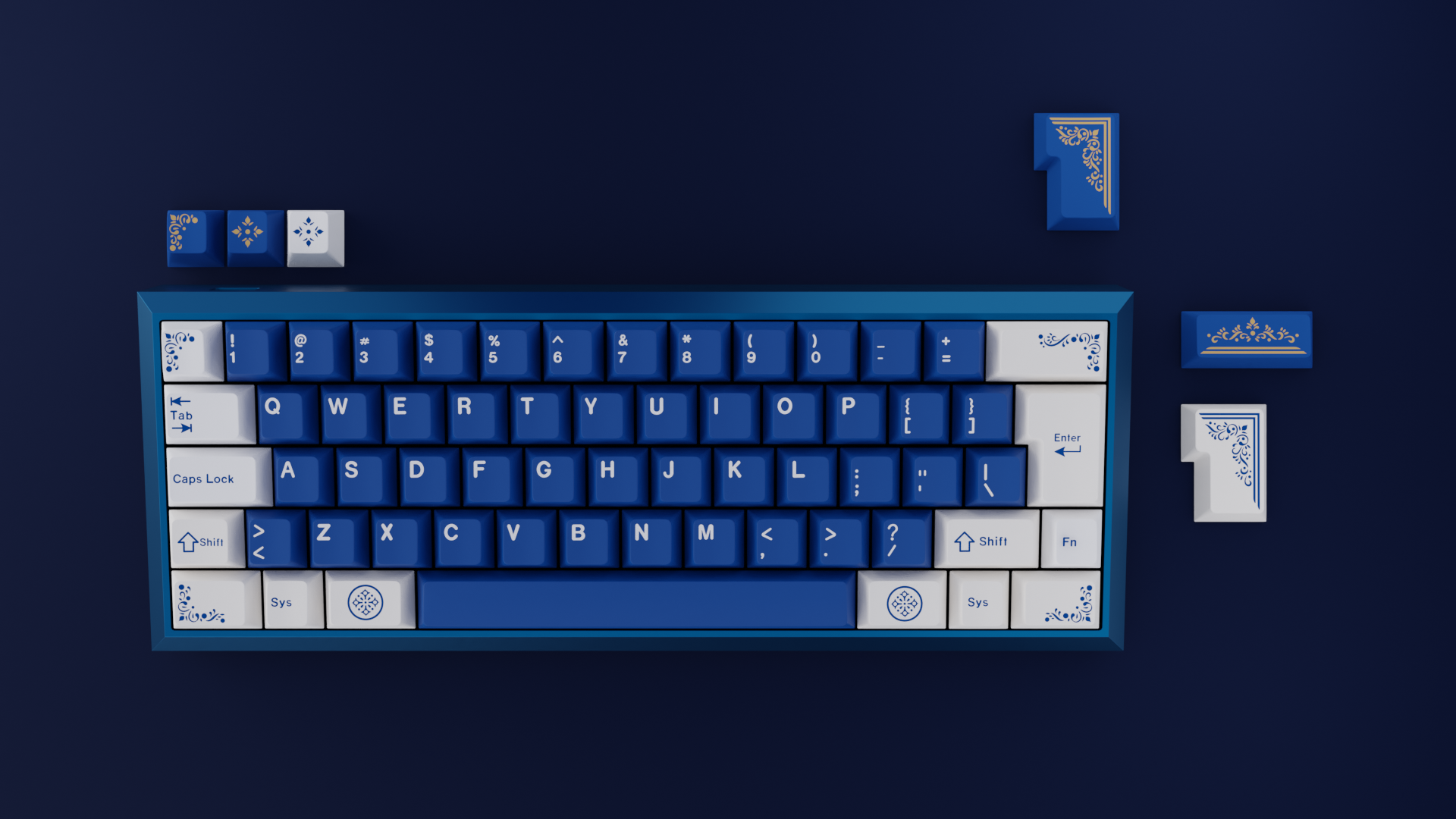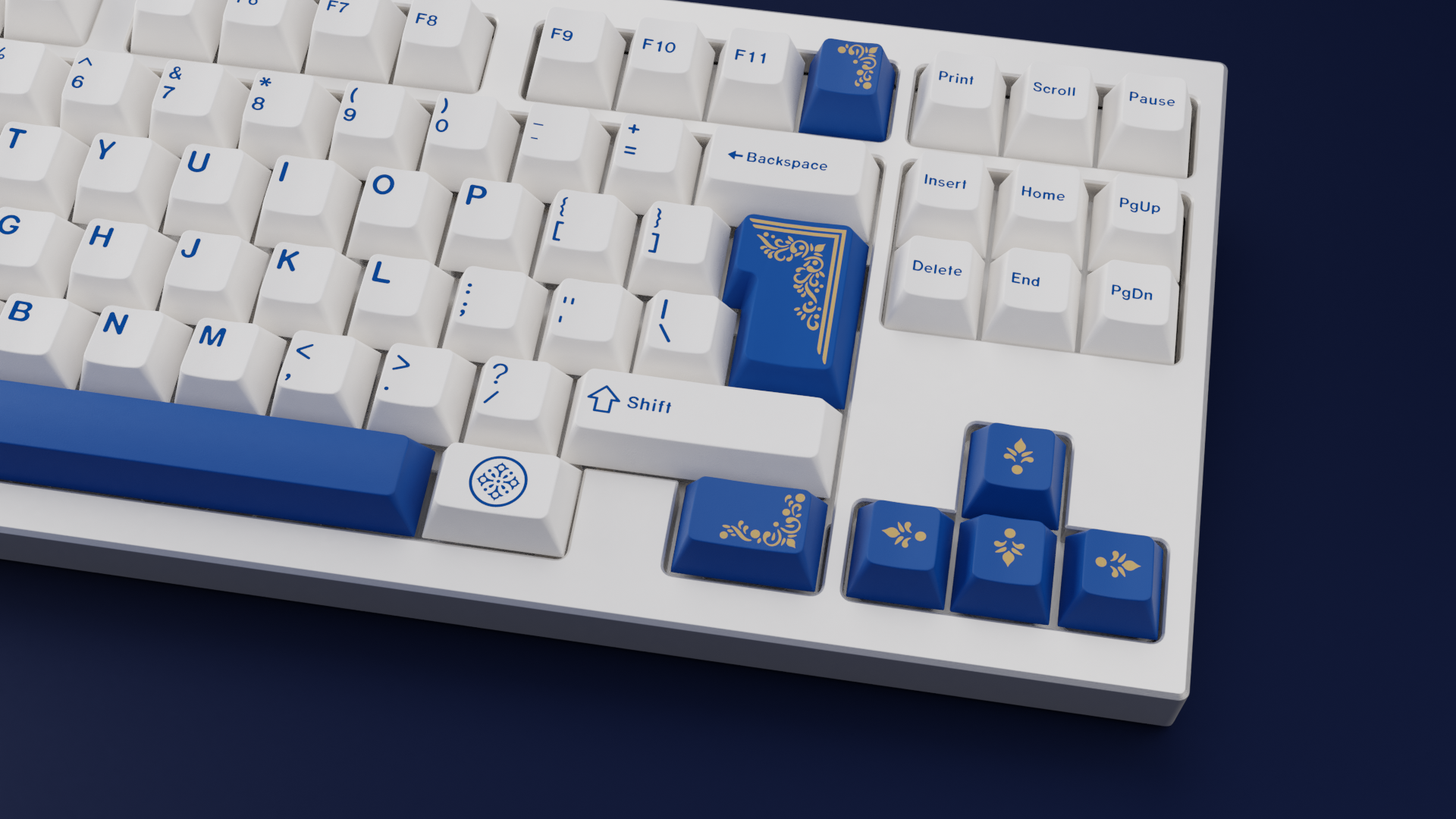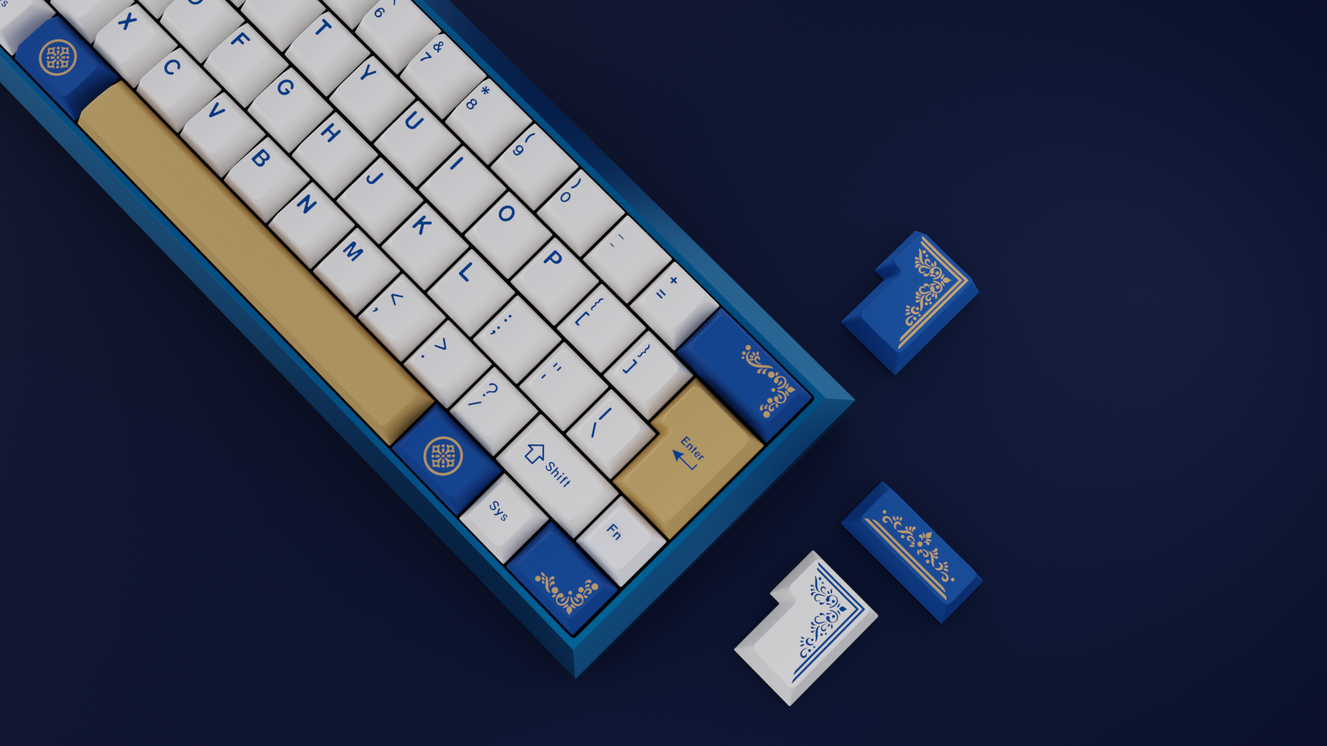 For people who would like to accentuate their keycap set with gold on ultramarine blue