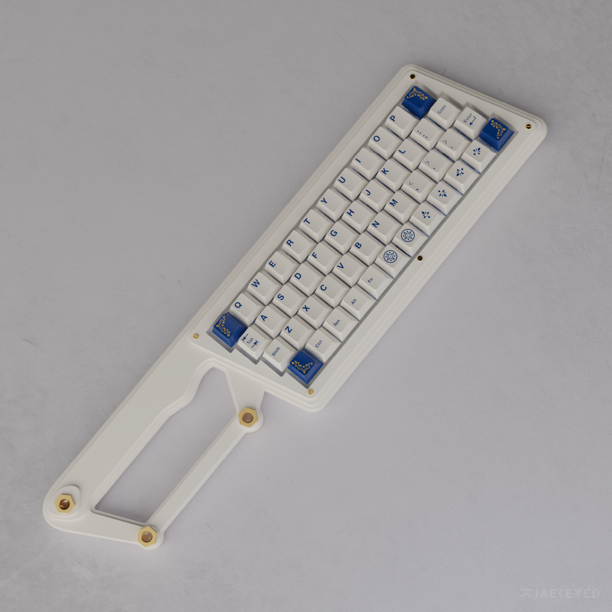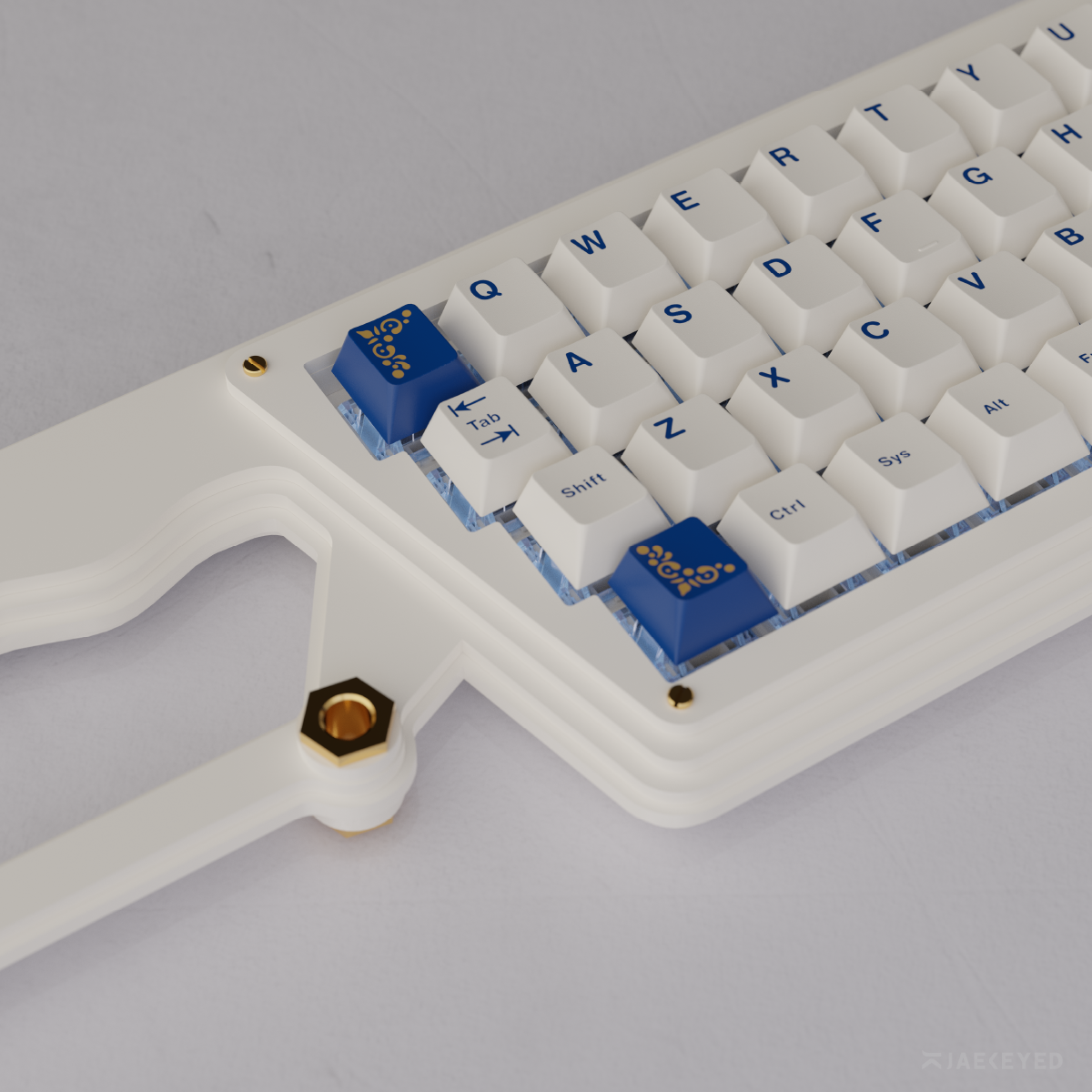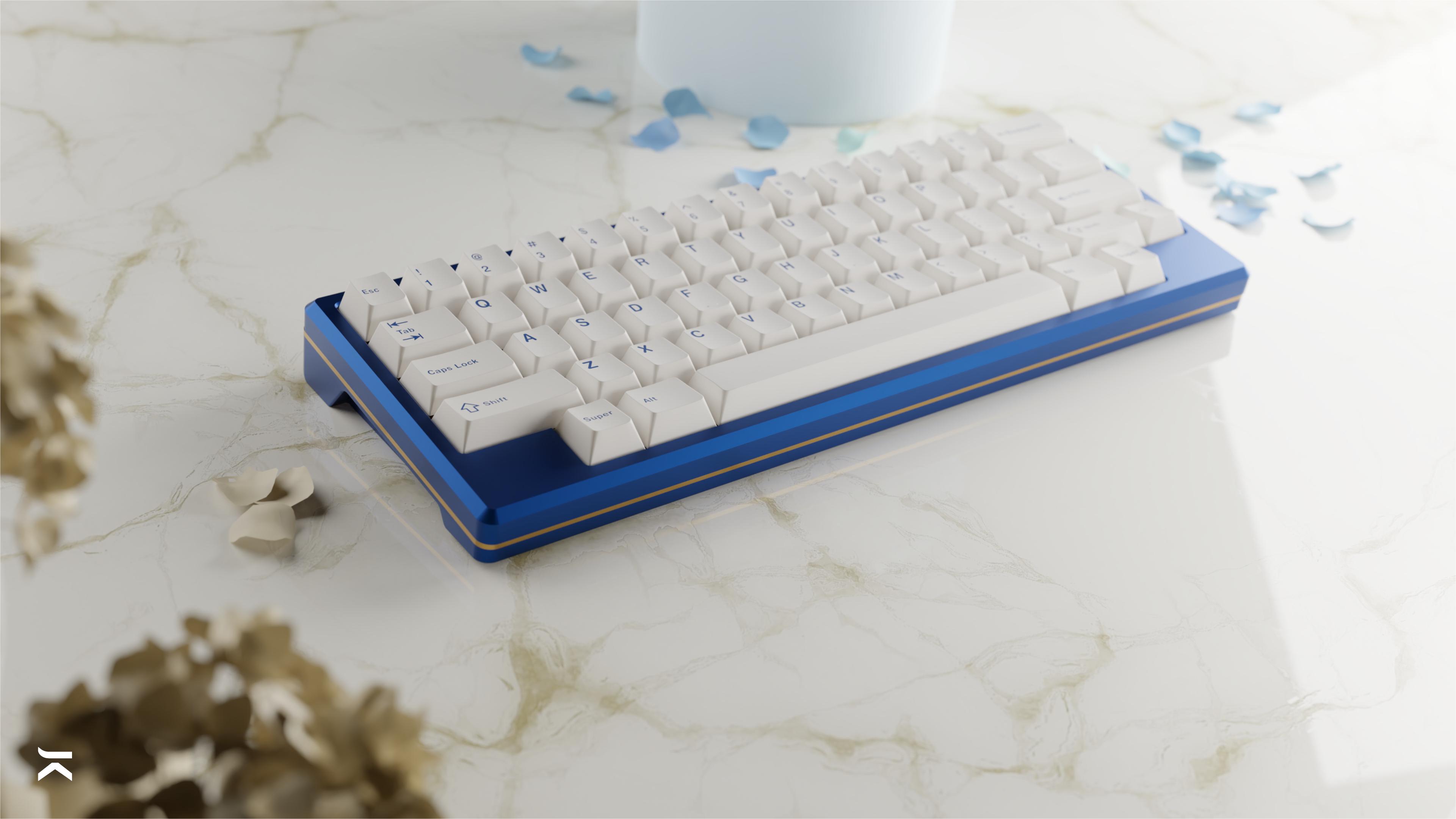 Colors: Bottom Case (Blue); Top Case (White), USB Port (Gold) - color-matched with GMK Lazurite