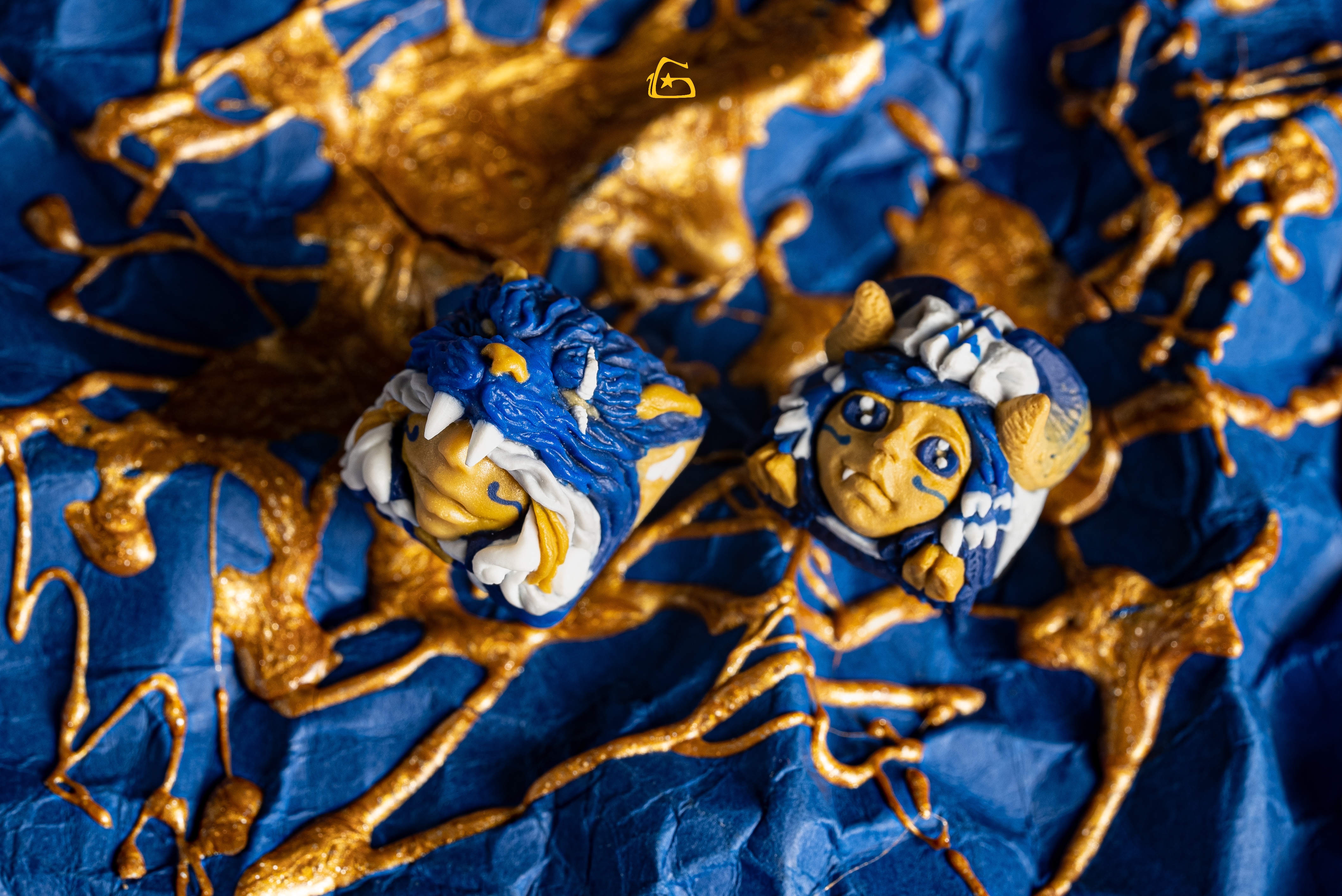 "Featuring the usage of ultramarine pigments, a replication of the randomness of real Lapis Lazuli (thanks nature!), and pieces of history itself. That’s right, there are actually 2 pieces of the gemstone itself encapsulated inside both ears of the sculpt." -NORK