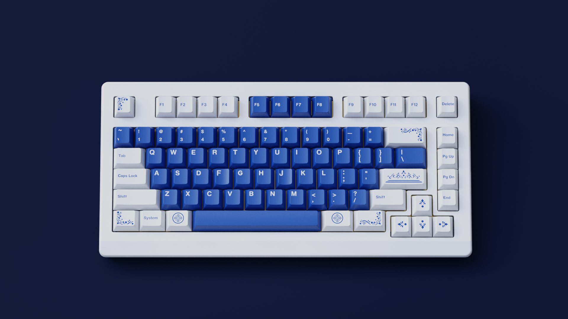 have a look at this GMK Earth Tones x GMK Lazurite High Renaissance (Blue) Novelties render