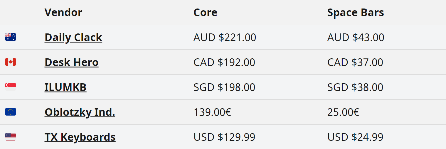 Space Bars| MOQ: 100Additionally, we are also offering a space bar kit that extends Lux’s layout support by including two 6.00u spacebars, allowing us to cover HHKBs, Gok’s 7V, and Cherry G80-1800 keyboards. The kit also includes accent space bars for standard and split keyboards.