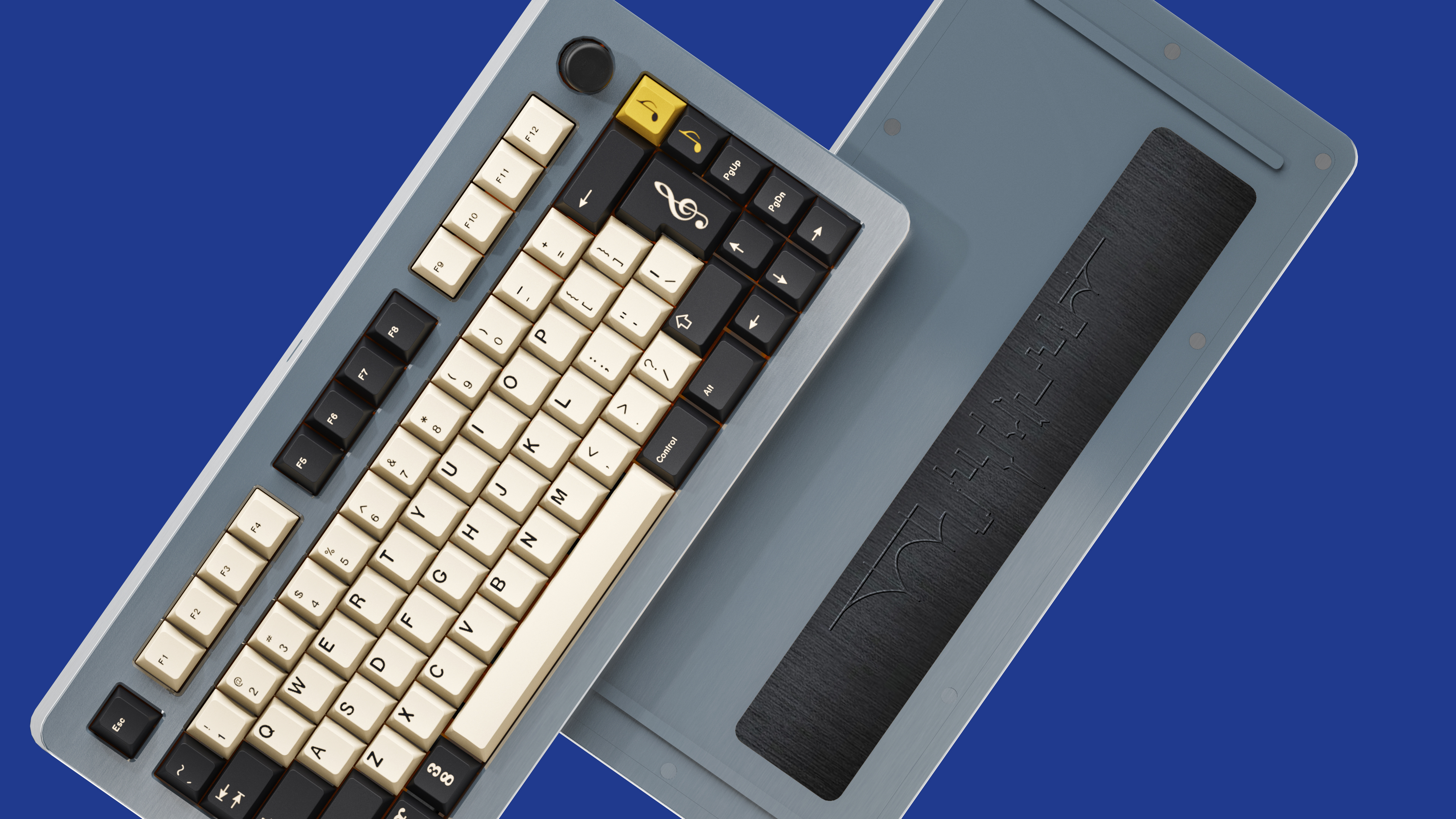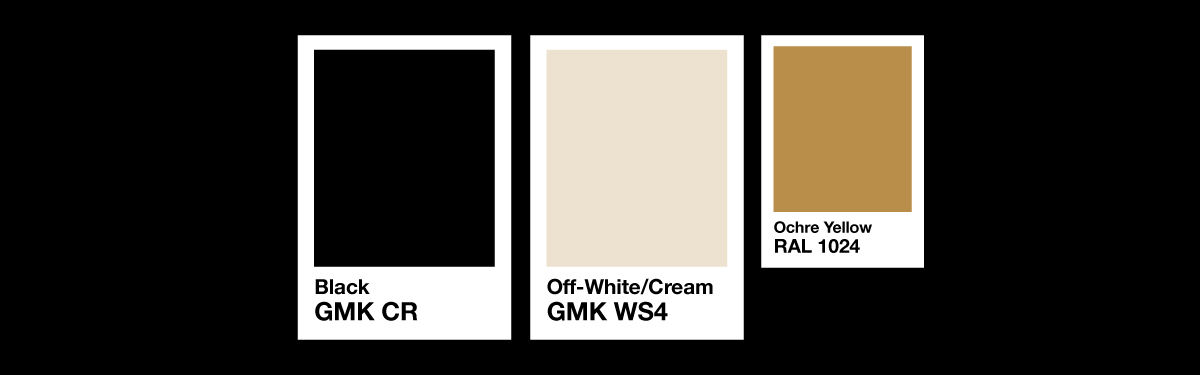GMK Stock colors WS4 and CR. Accent color will be RAL Ochre Yellow to resemble gold.