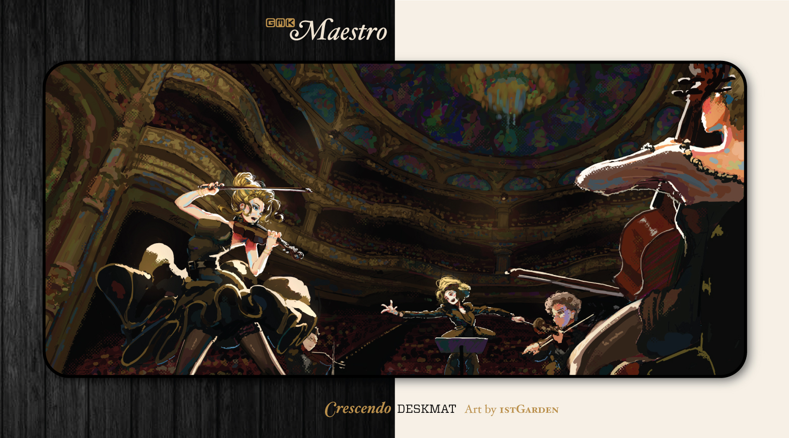 Deskmat Design #3: Crescendo - Art by 1stGardenRAMABrass with Gold polished PVD finish