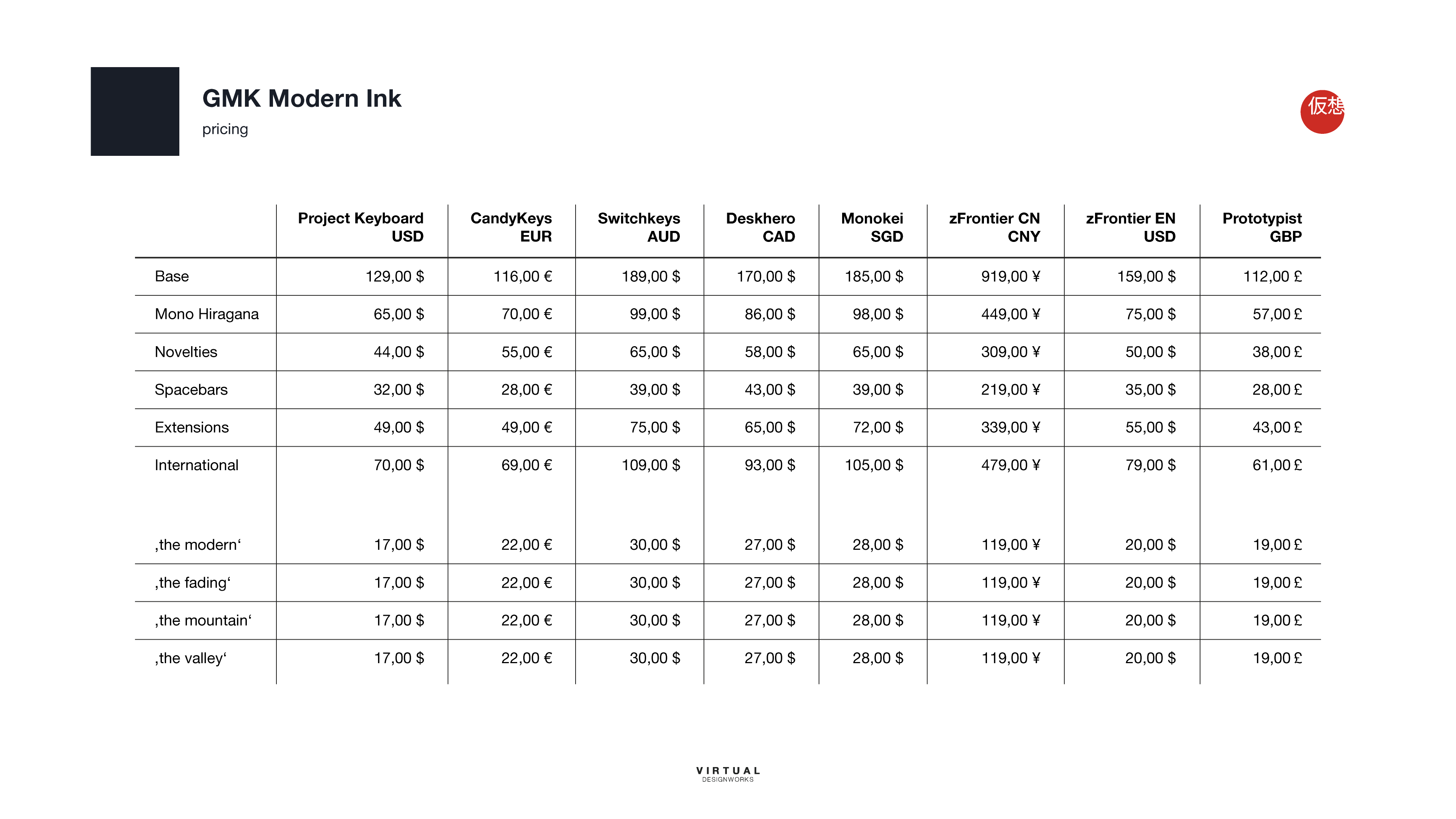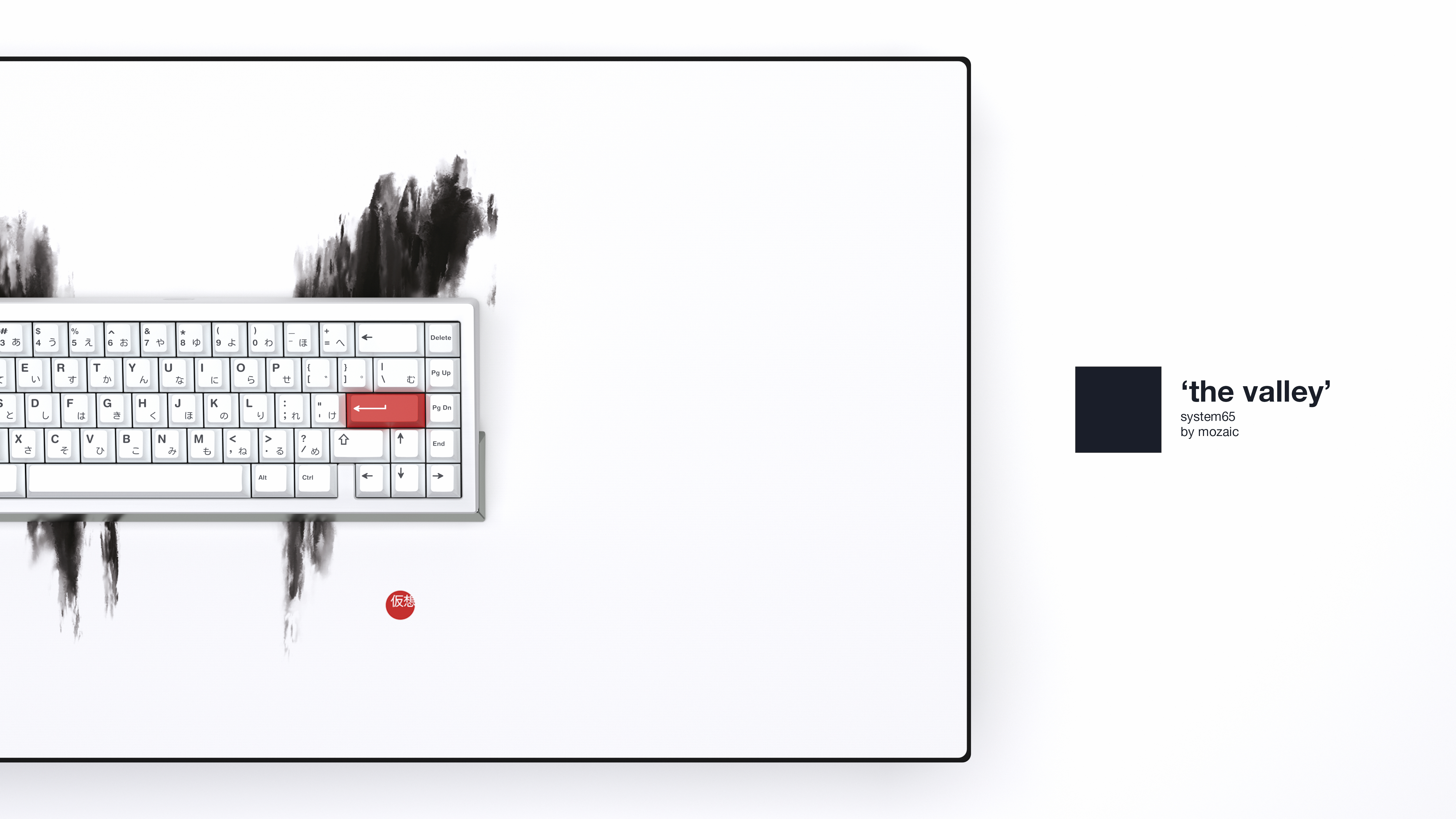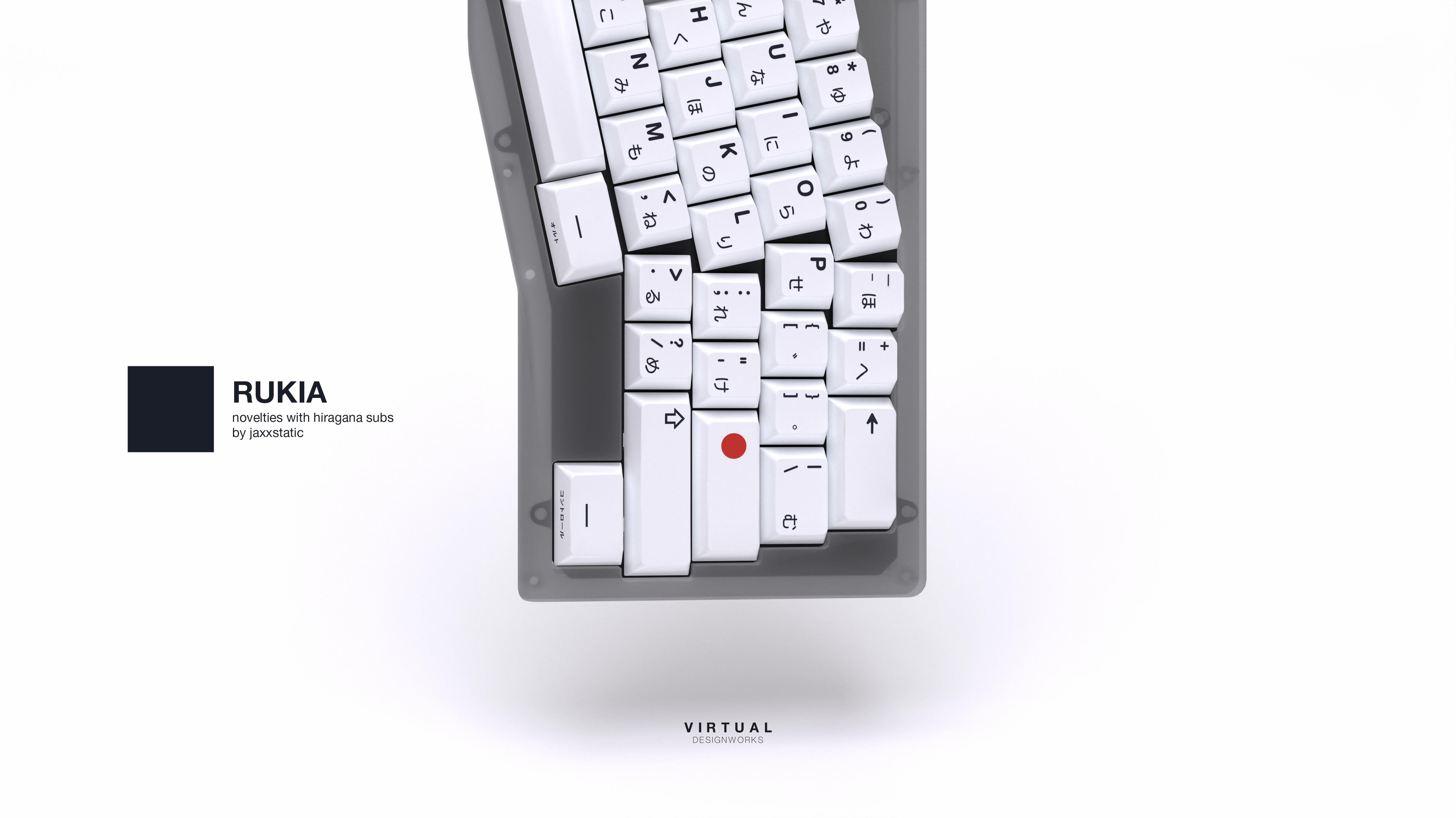 Pikku-Allu for the kit renderings. Zaum for the usage of the Werk One and helping me out with rendering in general. Milo from Kindakeybaords for the usage of the CONONE80. Mozaic for the usage of the System 65. RAMA Works for the usage of the Koyu. Scucka for the Hiragana Alphas, used in the other renderings.