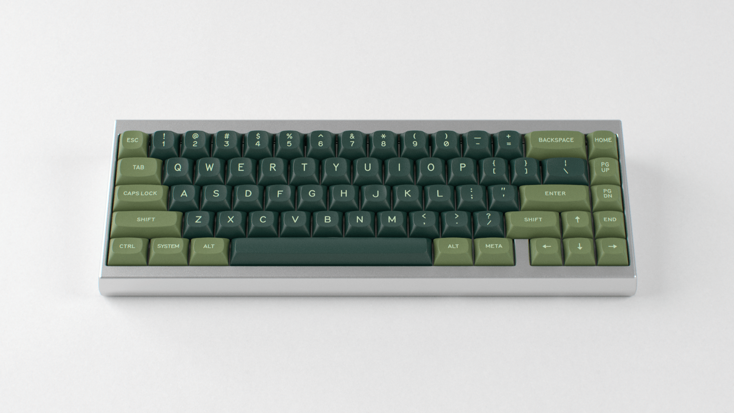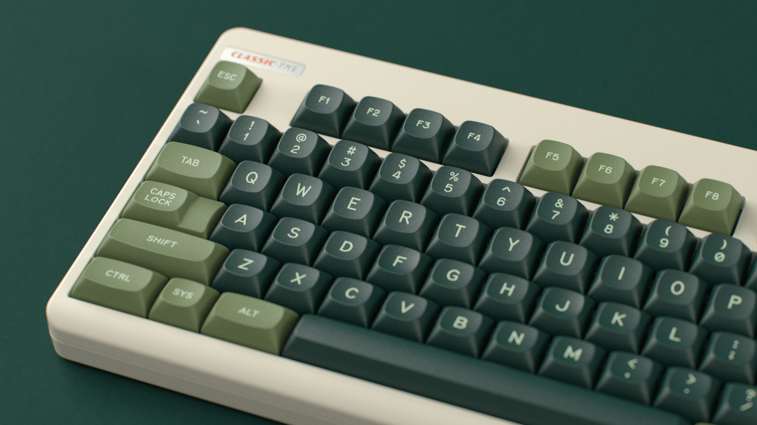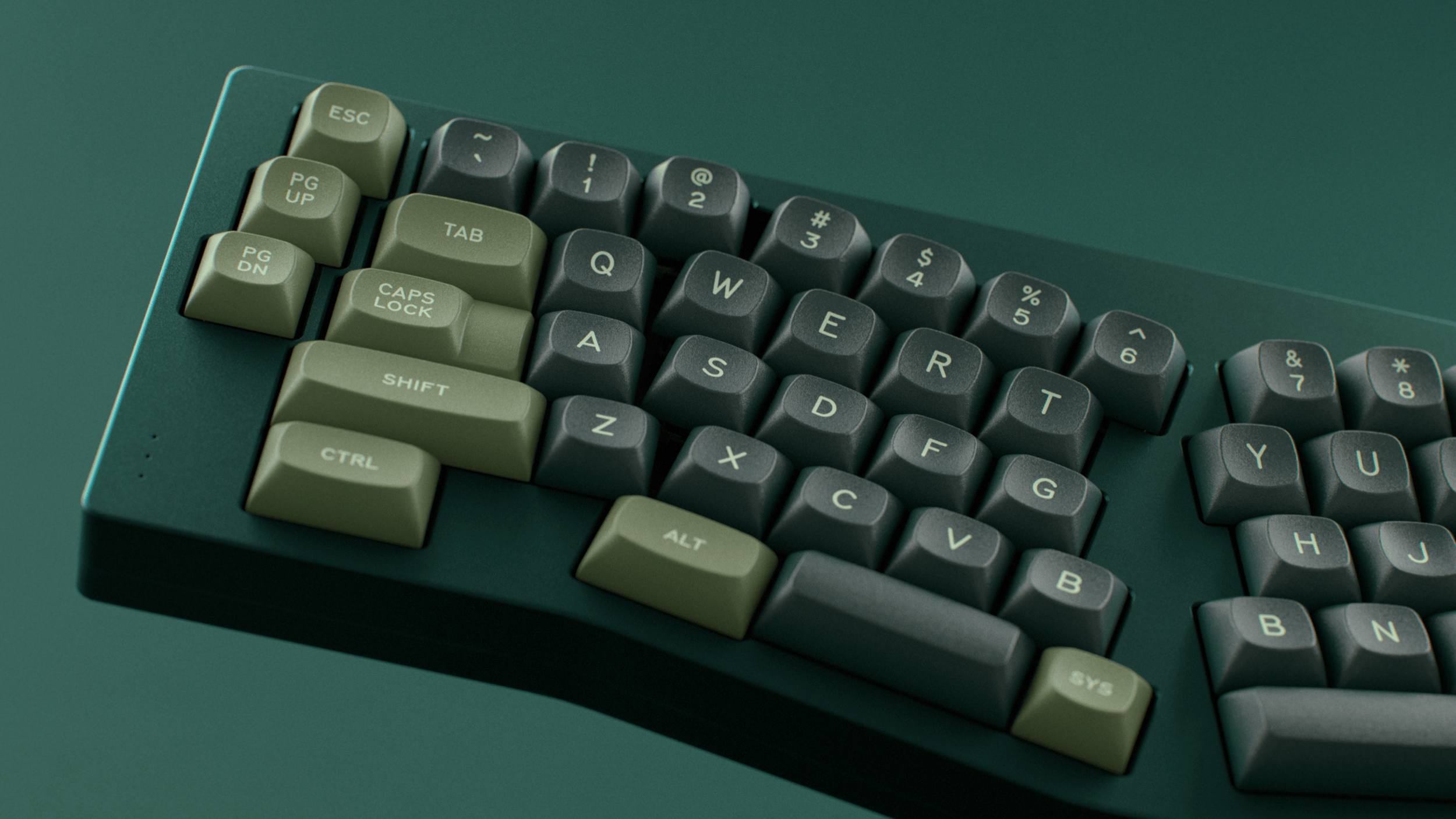 In partnership with NovelKeys, I am pleased to bring back the Skyriter keycap set in the MTNU profile. This vintage inspired, deep forest green, olive, and seafoam colourway is based on the early 50s typewriter “Skyriter” from Smith-Corona.