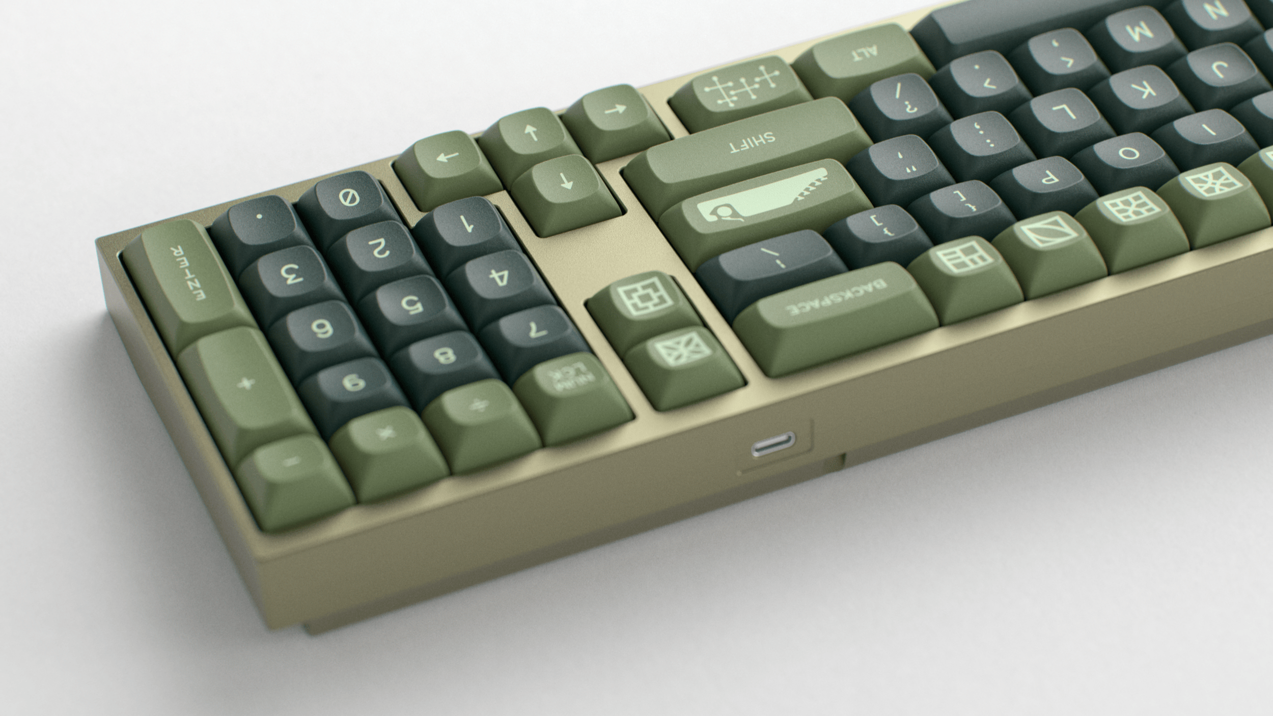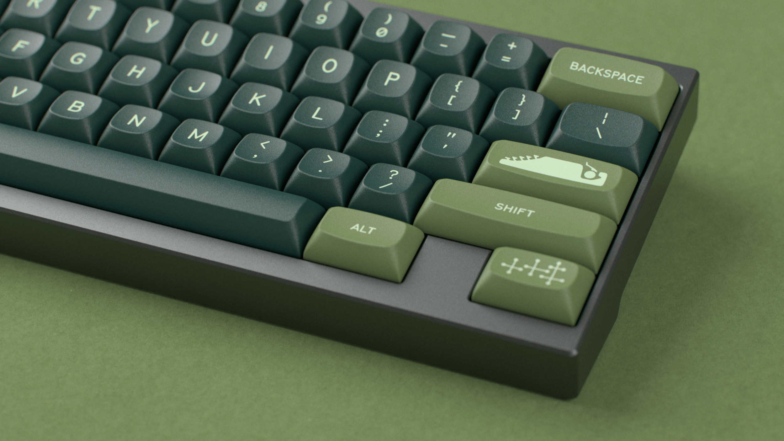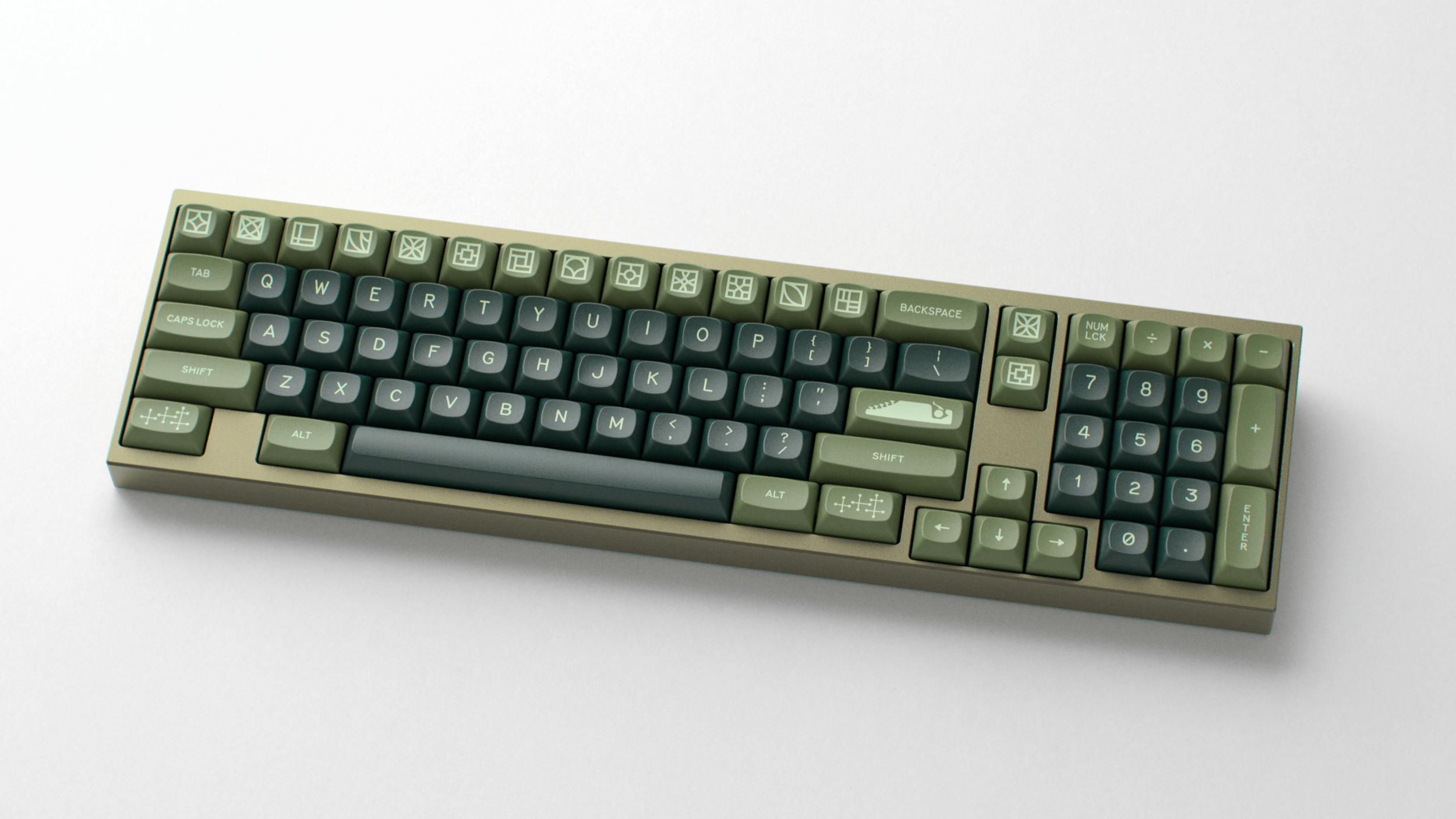 In partnership with NovelKeys, I am pleased to bring back the Skyriter keycap set in the MTNU profile. This vintage inspired, deep forest green, olive, and seafoam colourway is based on the early 50s typewriter “Skyriter” from Smith-Corona.