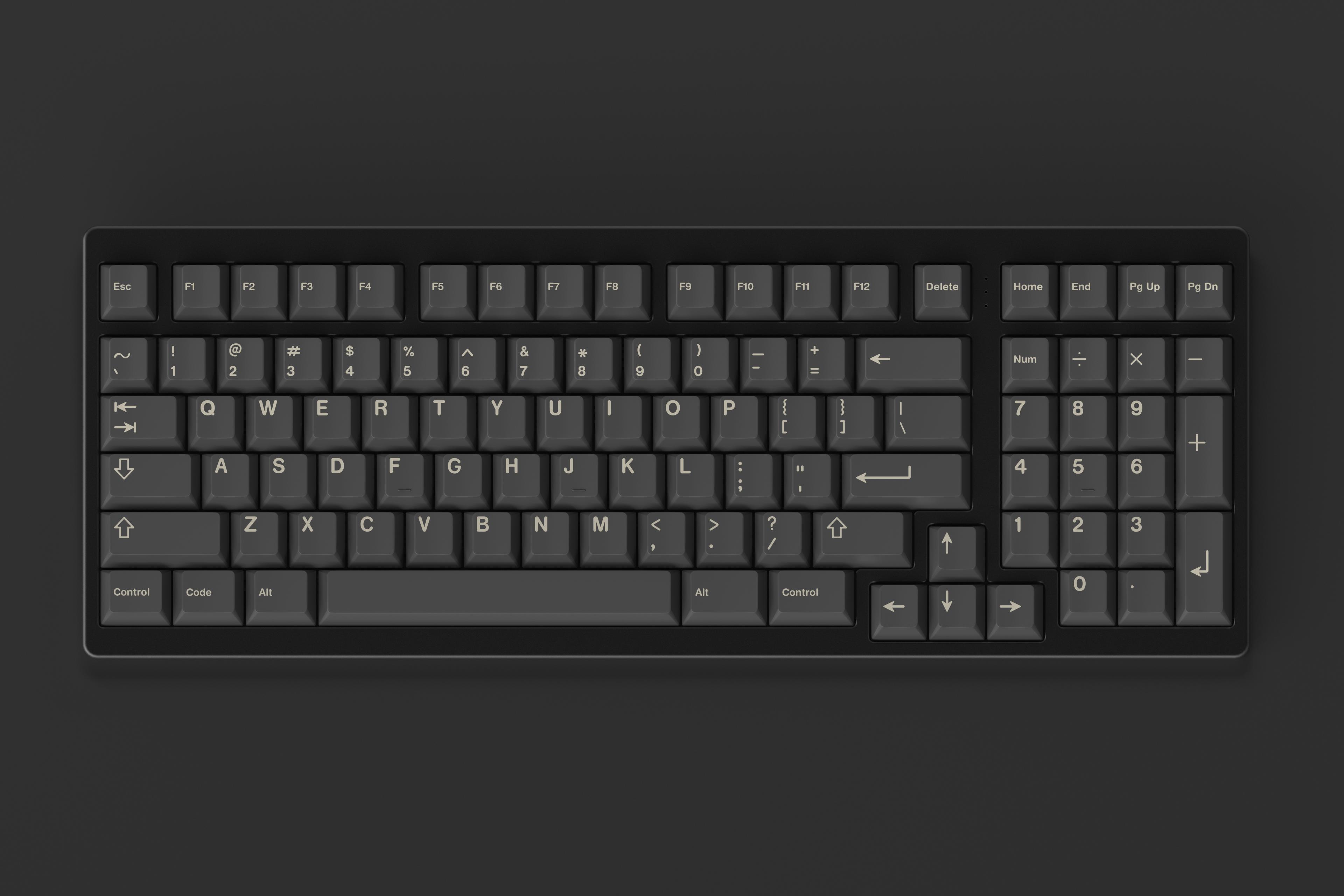 It is inspired by GMK Carbon Bone + Boneyard alphas, but uses stock GMK colors N9 + U9.