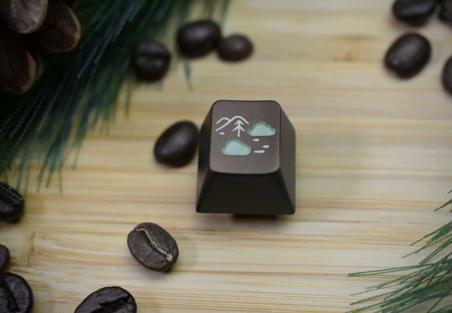 This keycap is a custom design by Kate from Hibi created specially for GMK November Fog. It is meant to evoke the forest theme, but not overtly be that. Because of that, it's a design that could fit any situation, yet still call back to the theme of the set. This is a machines aluminum keycap that's custom anodized to match the Panton of the accent color. It has 11 ridges to represent the 11th month.