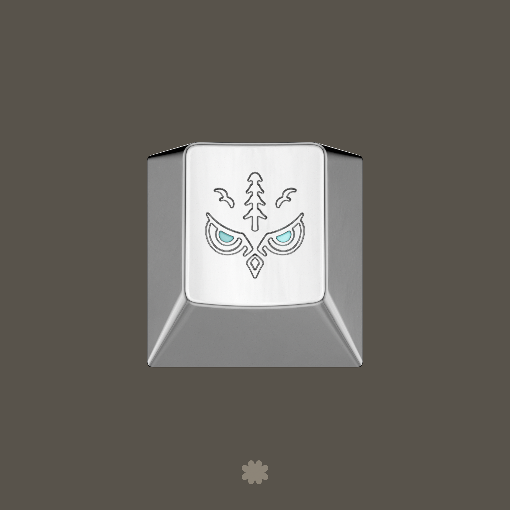 This is a milled solid brass keycap that's been PVD coated with a polished silver fininsh. It uses the owl design from the novelties, which is milled into the surface with precision CNC machining. The eyes are enamel filled and are luminecent, so they will glow if first given light. This is a special one.