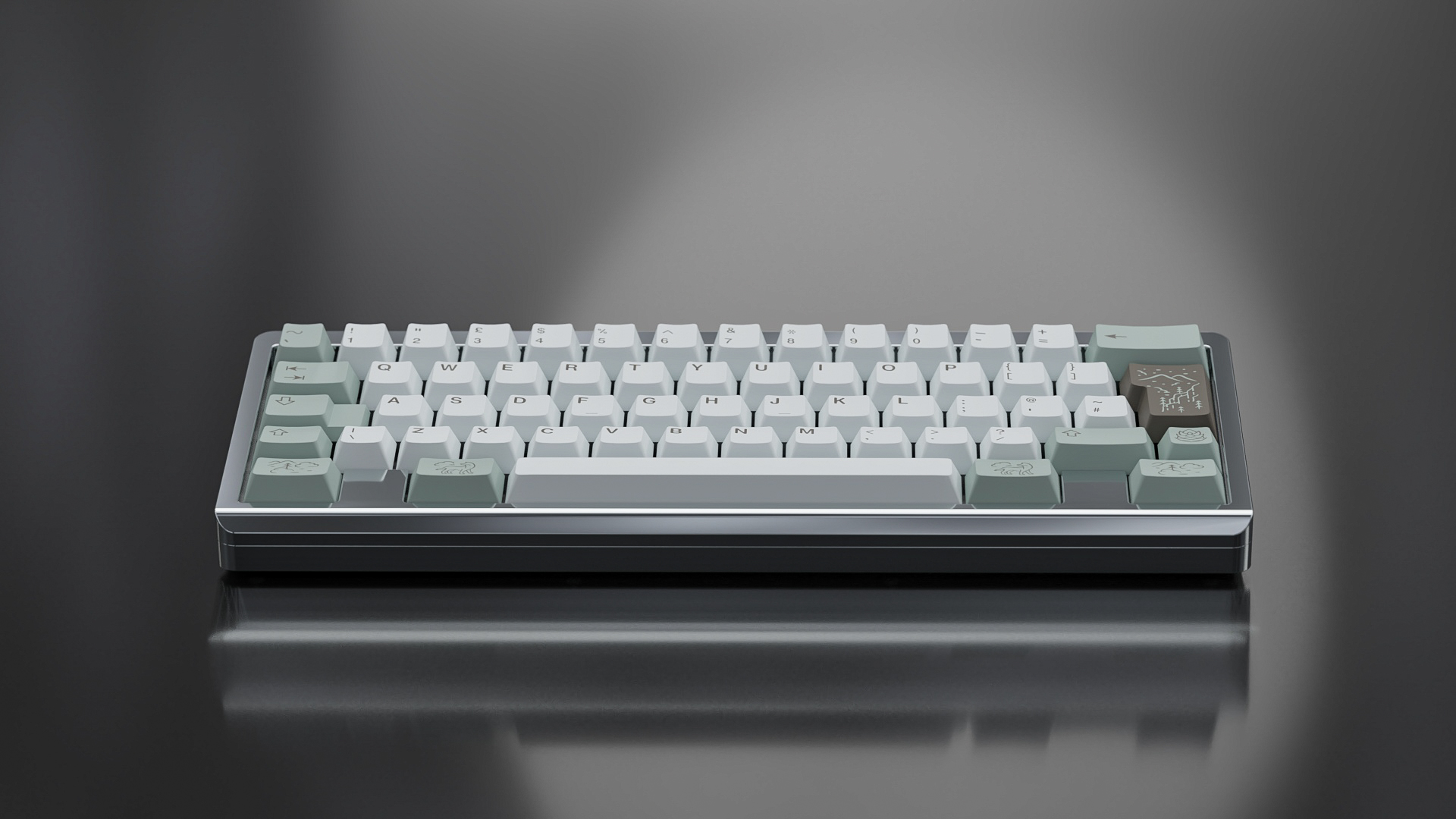 Both keycaps are machined aluminum and anodized to match the pantone of the accent color. Each keycap has parts that are milled more deeply and are filled with enamel color matched to the Pantone of the mod color. The scenes are completed with laser etched designs. I'm thrilled that KeyLabs is doing their first ever metal enter key as a collaboration with November Fog