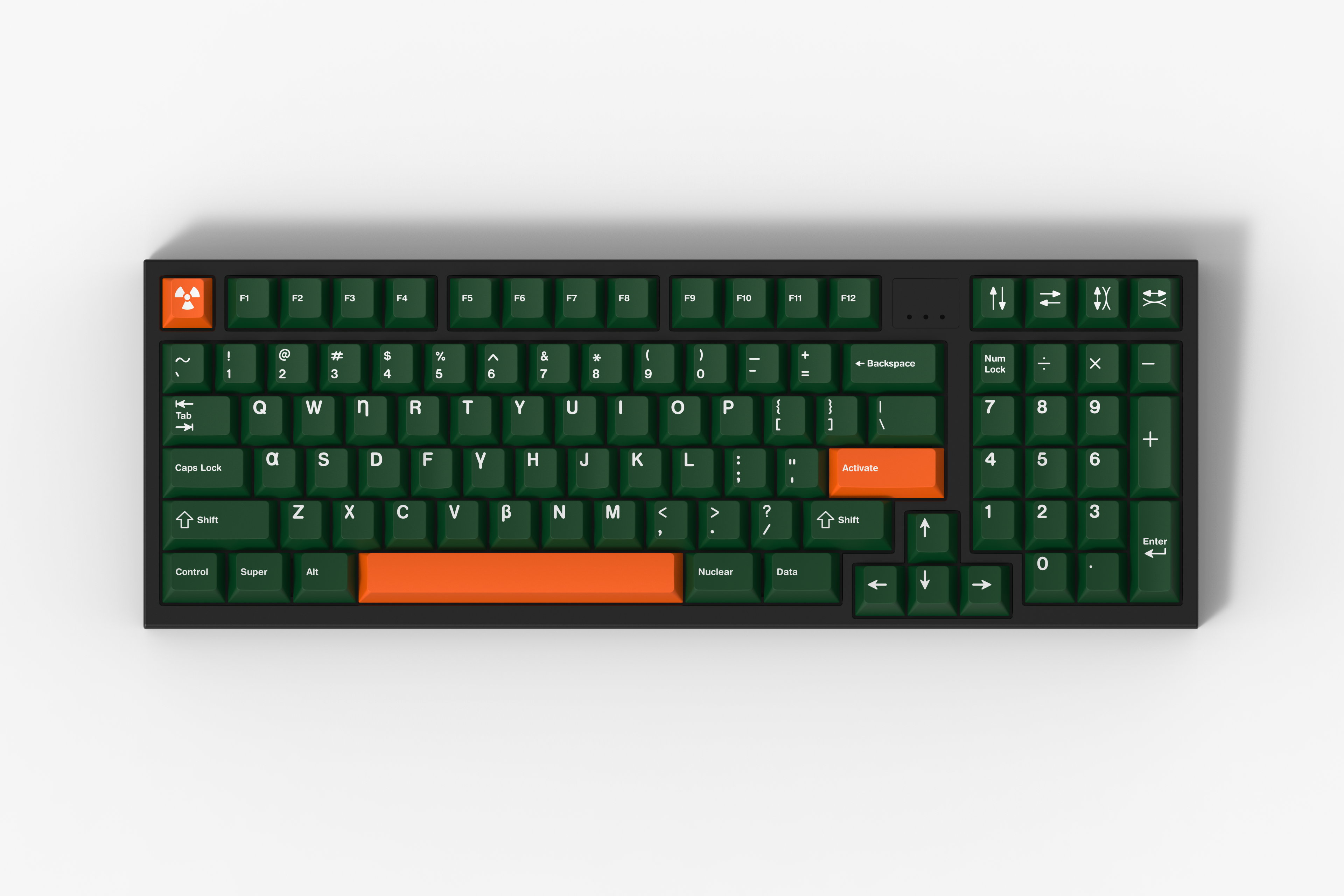 The green and orange accents are matched to the SP SA colors via RAL, the legends are GMK CP. We brought some of the original ND6600 legend symbols to GMK style, as well as some new original ideas. Biip did a killer job with these.