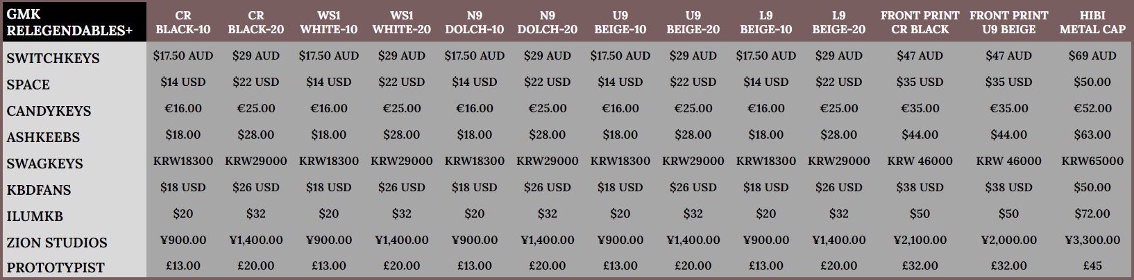 Blanks kits – CR, WS1, U9, L9 and N9. These kits will cover a range of common colourways used frequently on GMK sets. If you are unsure if these kits will match your set, please ask in the comments or with your local vendor. The short version, is it will cover you for most things WOB or BOW related, sets with white alphas (that aren’t WS2), all the classic beige variants and anything with Dolch coloured mods. Recent sets that some of these will work with (blanks kits) include the Desert base of Botanical R2, Monochrome mods, Minimal, Serika Accents (to be confirmed), Sixes, Modern Desko, Patisserie, Stealth, Thinkcaps, Beta, Dolch R5 etc. You get the idea. They’re useful for many, many kits. The survey during IC was divided. So now you can buy them in lots of 10, or in lots of 20. Kits of 20 work out more economical, but for those wanting alternating beige especially, you can buy them in 10s. If you want to save money, buy the lots of 20 instead and split them with a friend.