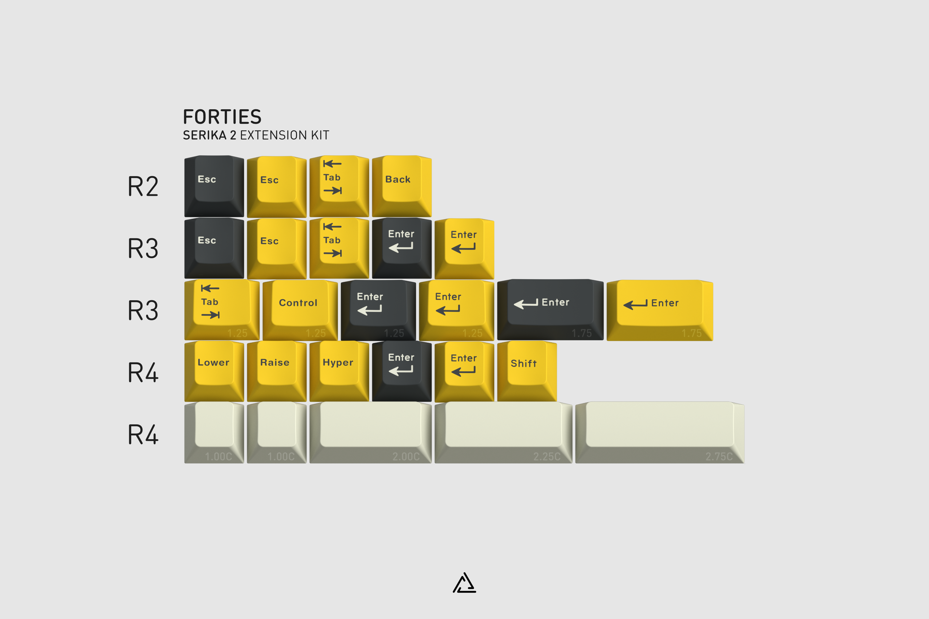 Forties extension kit adds layout support for small form factor and ortholinear keyboards such as the OLKB Planck, ION × AI03 Equinox, or AE × Percebe.