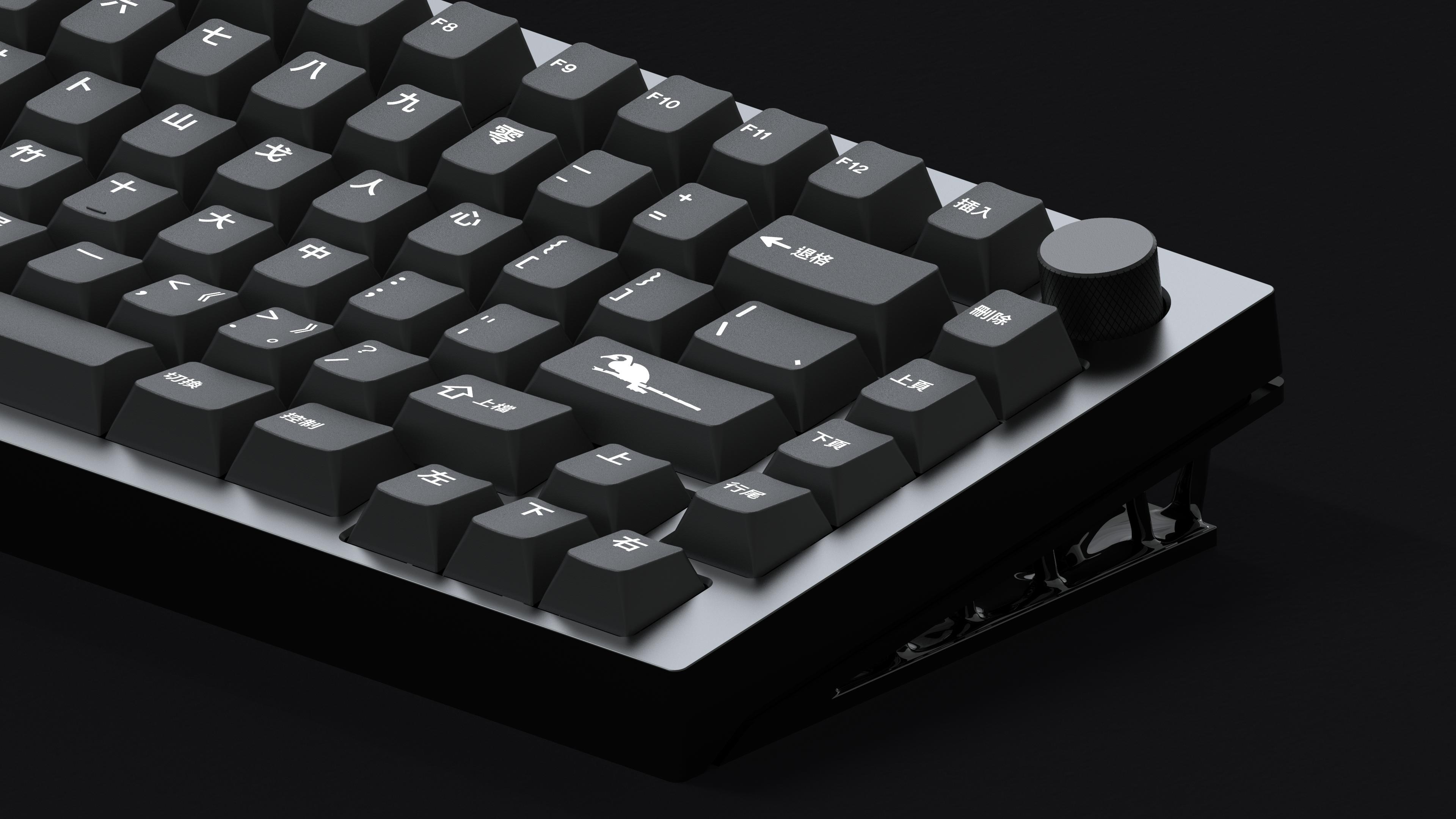A complete alphanumeric kit with Cangjie Chinese character monolegends, and duplicate modifiers and spacebars to assist base kit buyers in covering a second board if desired. Includes both Simplified and Traditional Chinese character alpha supplements and east/south/west/north Chinese character arrow keys. Recommended for compatibility with GMK WoB, Minimal, and other monochrome sets.