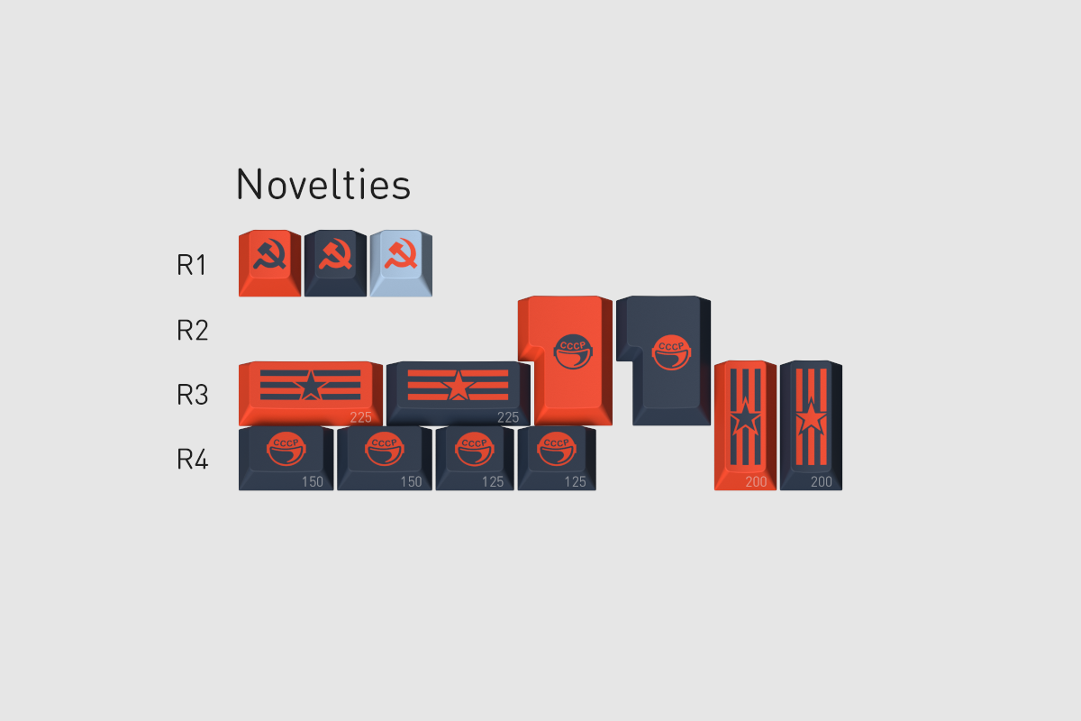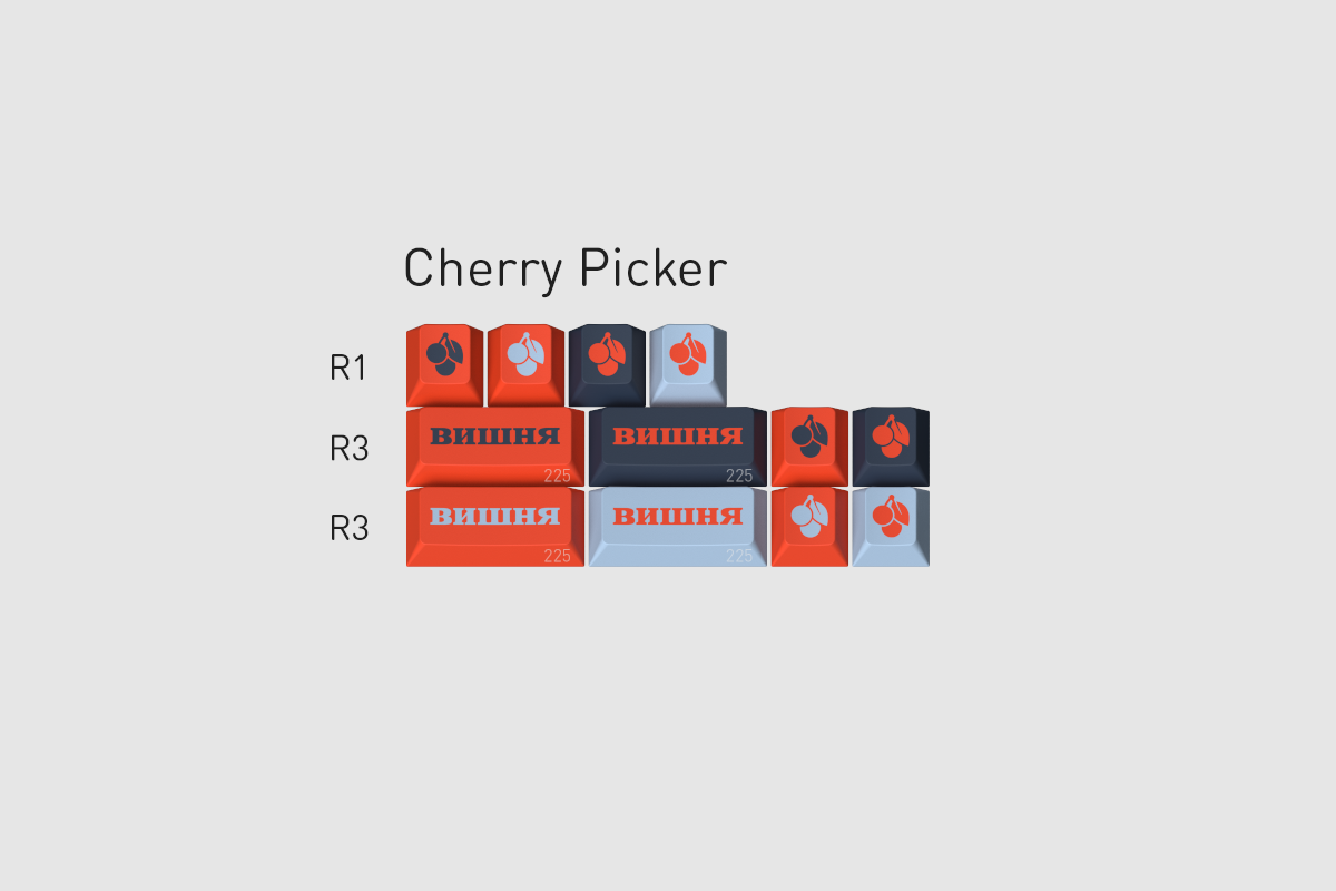 This is the second round for Yuri in Cherry profile. This set is dedicated to the first human in space: Yuri Gagarin. As a novelty for this round I've added Skydata - a monotone color design but with very striking colors. As alternative to Yuri novelties, there is a Cherry Picker kit and i hope it will suit people who don't like the socialist symbols in the original novelty kit.
