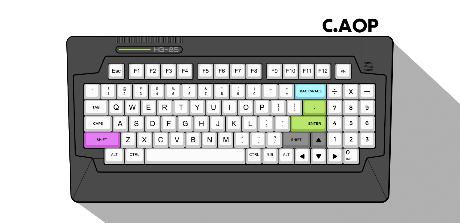 DESIGN AND LAYOUTPerhaps one of the most iconic feature of the HB85 is it's oddly intriguing design. The mid-piece design not only pays homage to the HitBit computers but also enable more color combinations and creates profound visual impact.