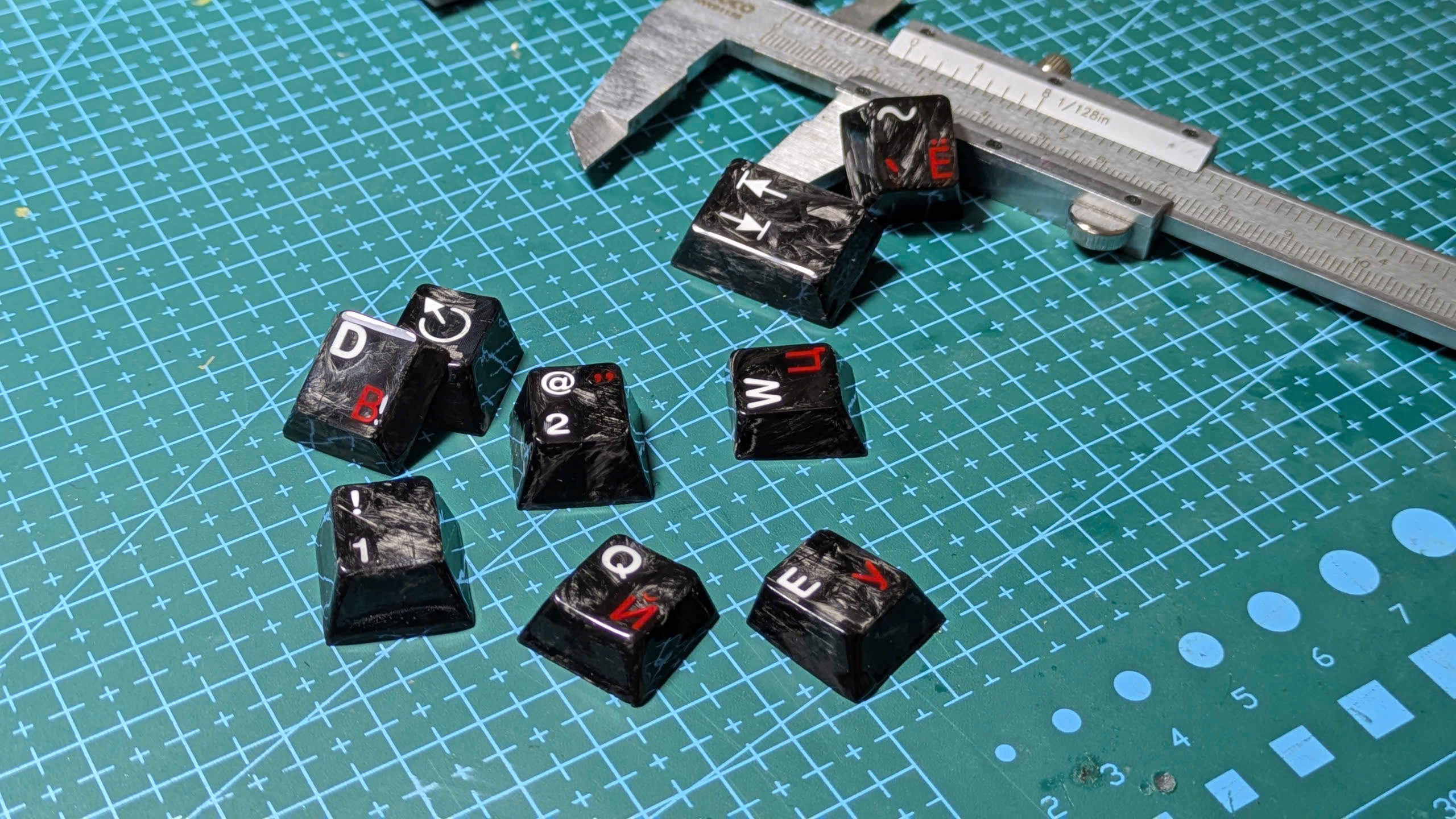 I'm writing this thread to see if anyone have same idea with me, carbonfiber keycap for mechanical keyboard, i've seen some other people making it, but it's just 1 or 2 blank carbon fiber caps. With help from other friends, i'm making full set keycap ( right now for my alice ) and want to share progress here with you guys.
