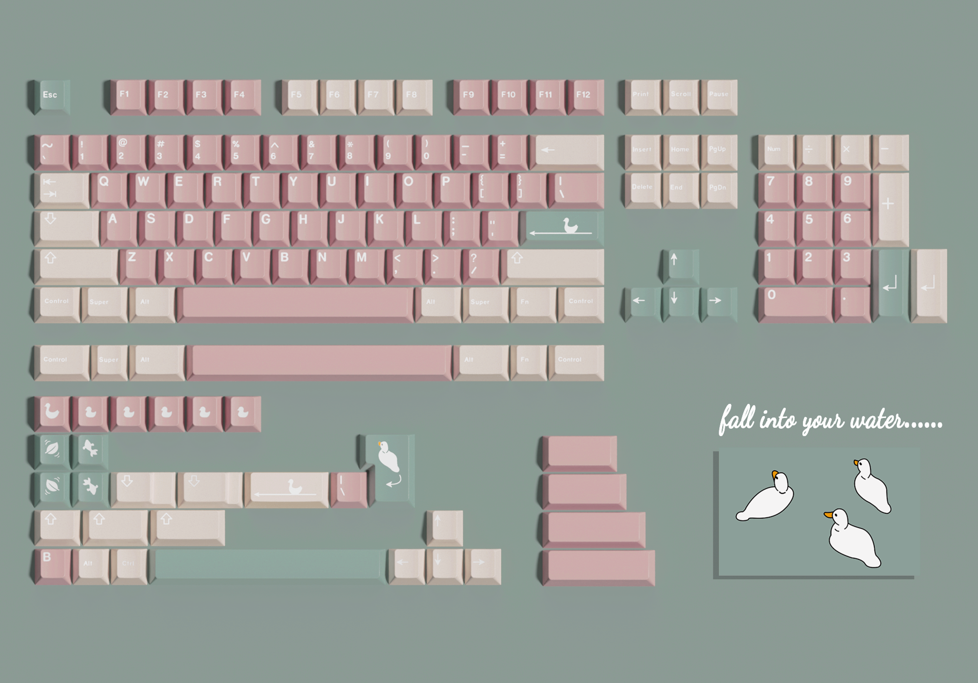 Greetings Hello, everyone! This is desgeek, we are dedicated to bringing custom keyboards and relative items here. The Heart & Water PBT keycaps kit is designed by Duckker Studio, and the GB begins now, please check if you like it