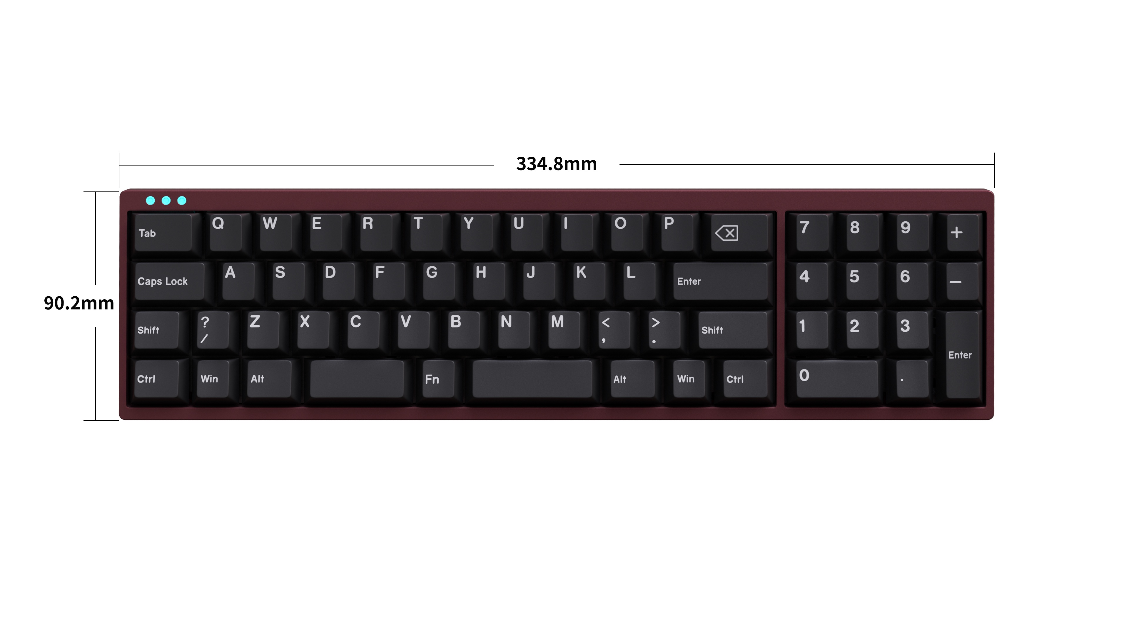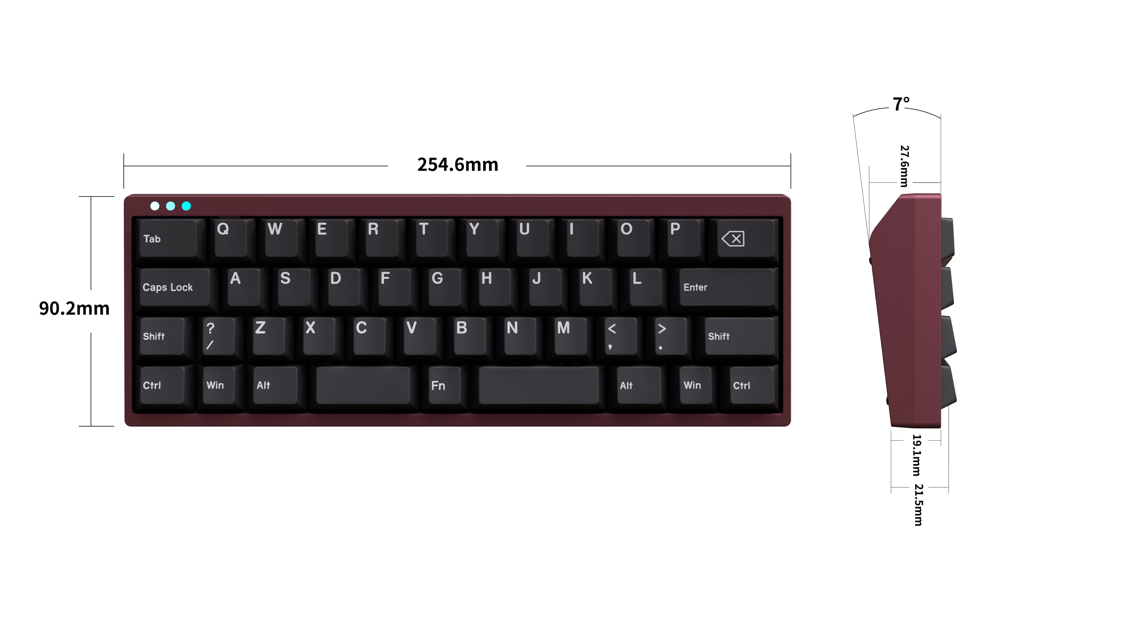 Add 3 small dots of RGB on the upper left side of the front as decoration,also it is caps indicator light.