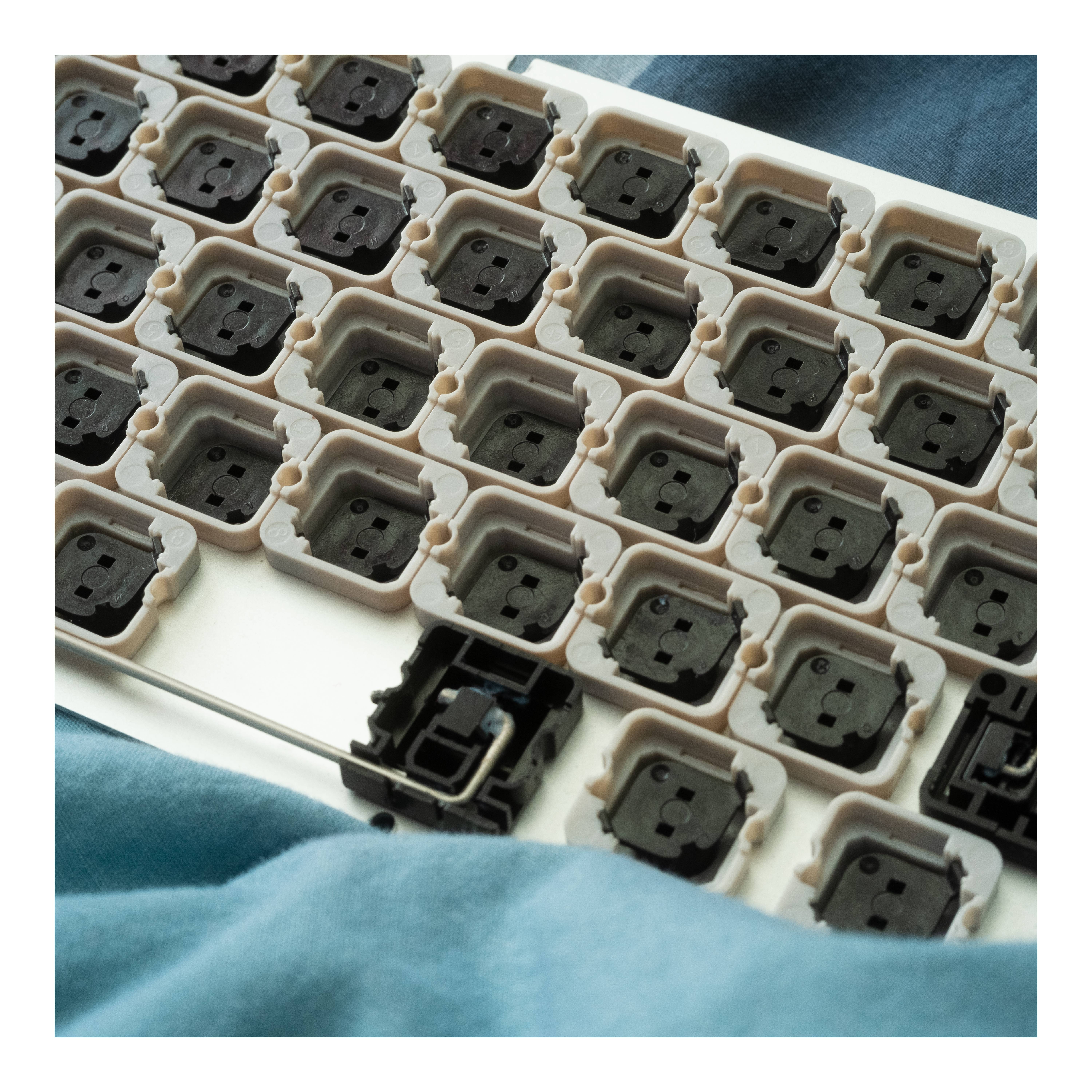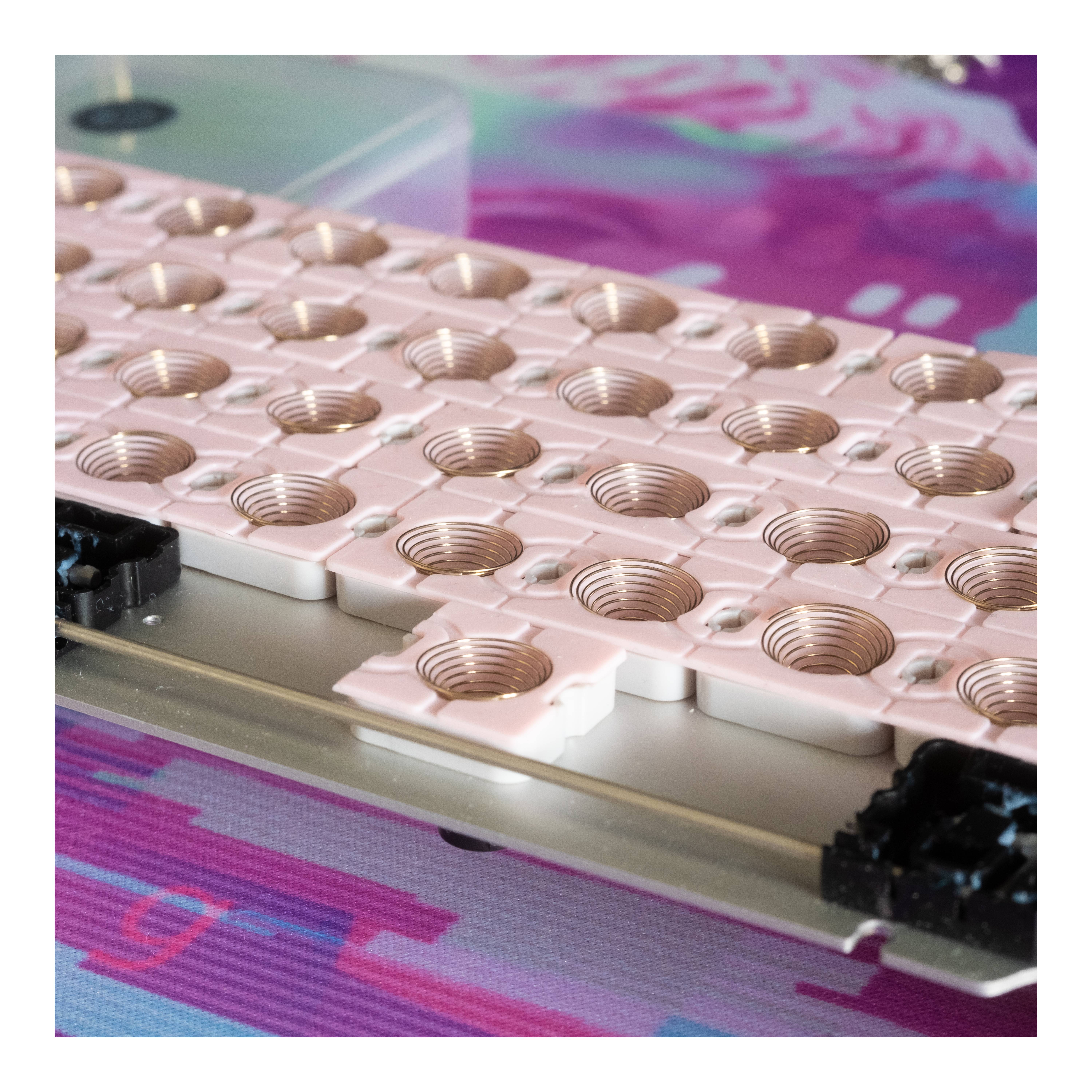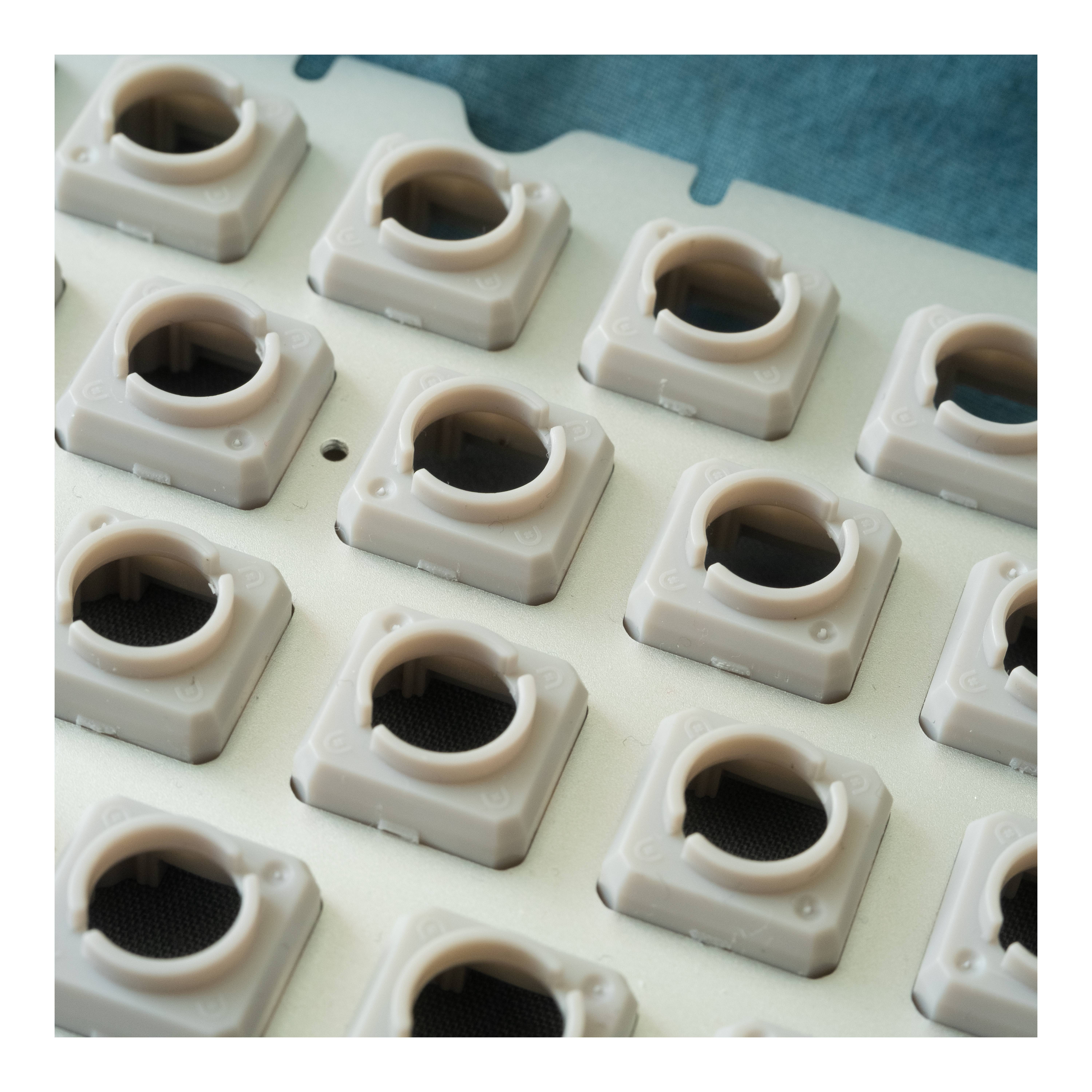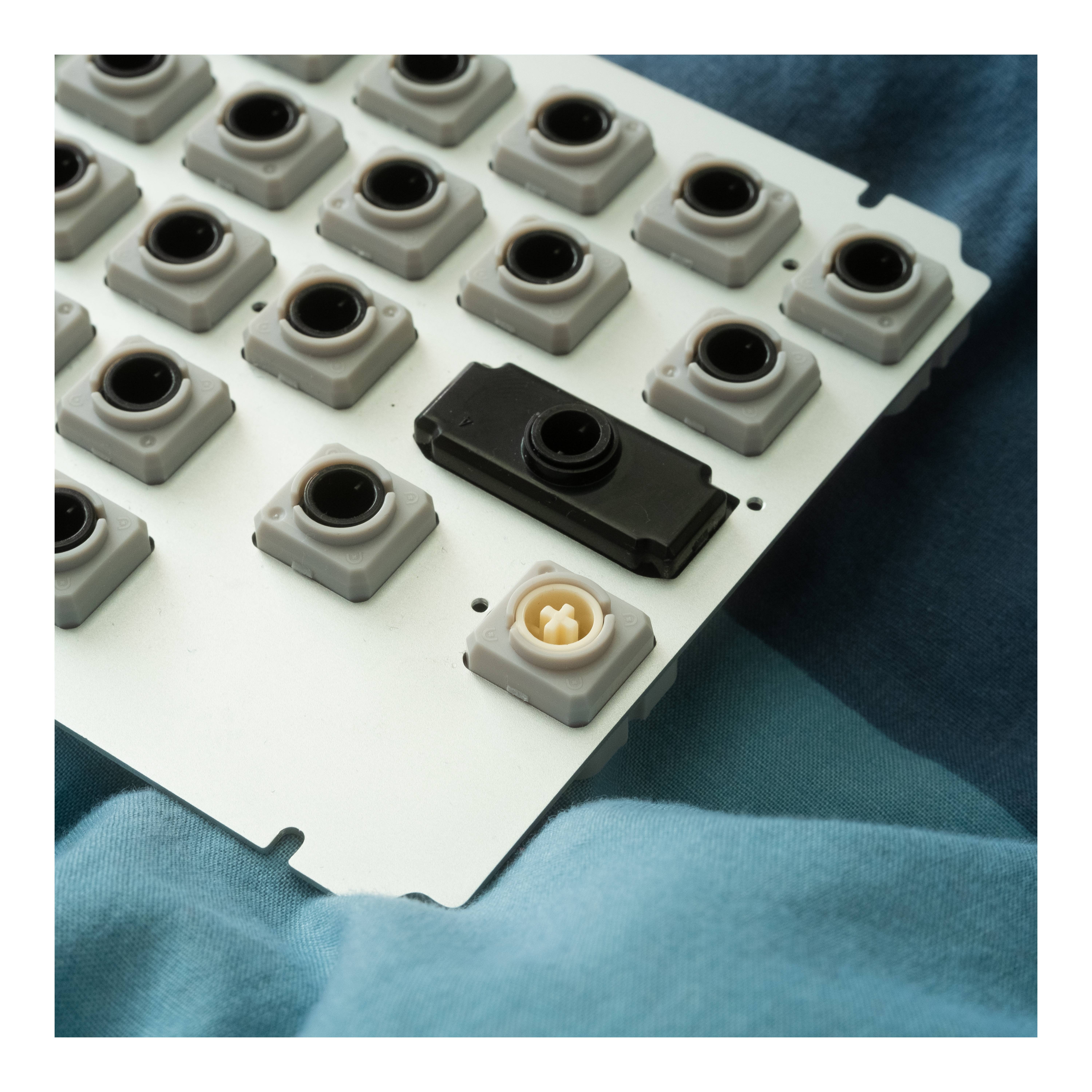 ^ 1. Not "true" F1 mount as the O-ring cord is cut and there's no topside isolation.^ 2. Measured without feet. ^ 3. Uses the MX style model in the plate which rests slightly higher than Topre; .2-.3 mm lower would be more accurate.