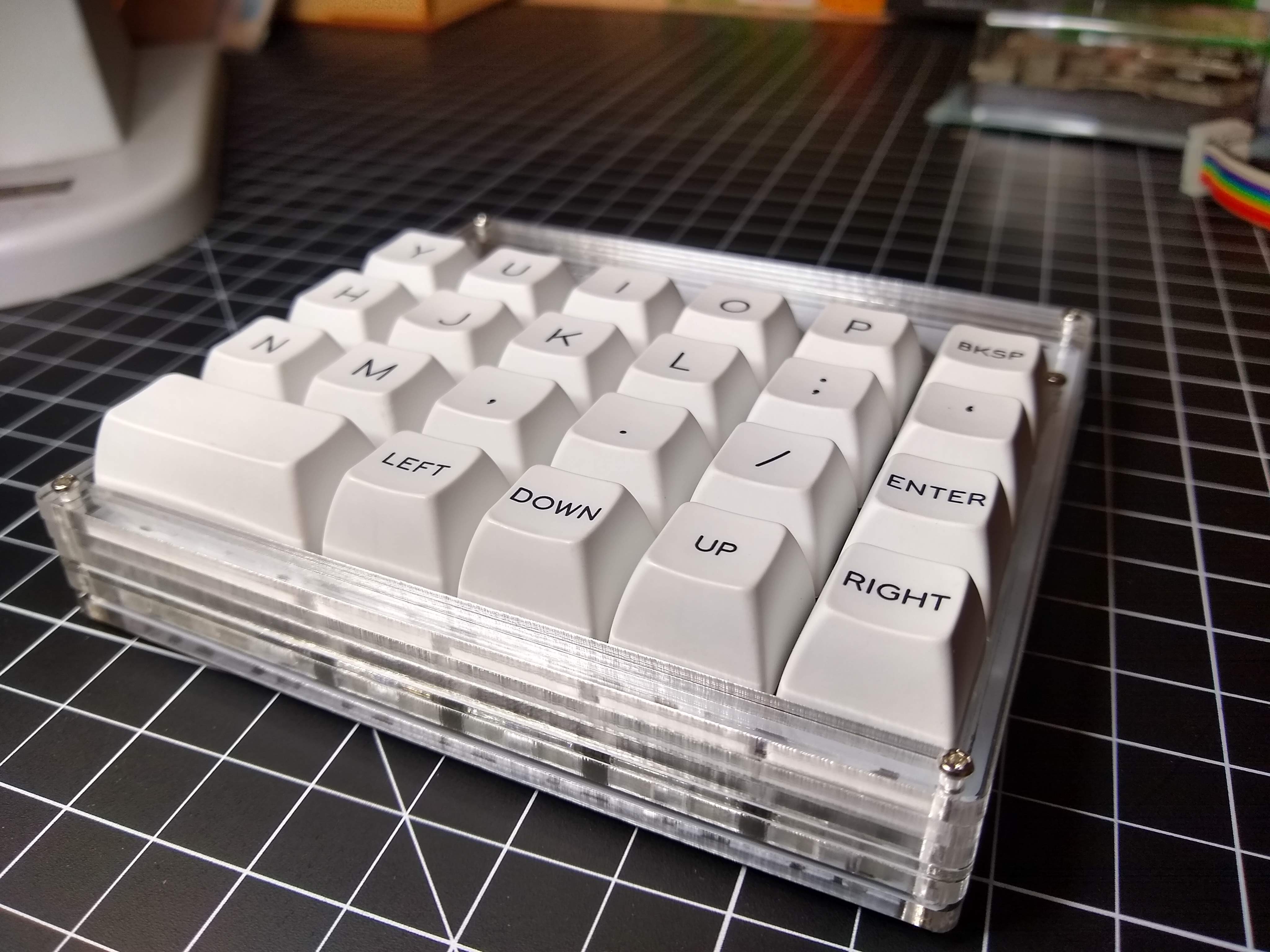Playing on the theme from the Plaid and RoMac keyboard kits, this is a split keyboard design featuring only through hole soldering for the end-user. Layout options