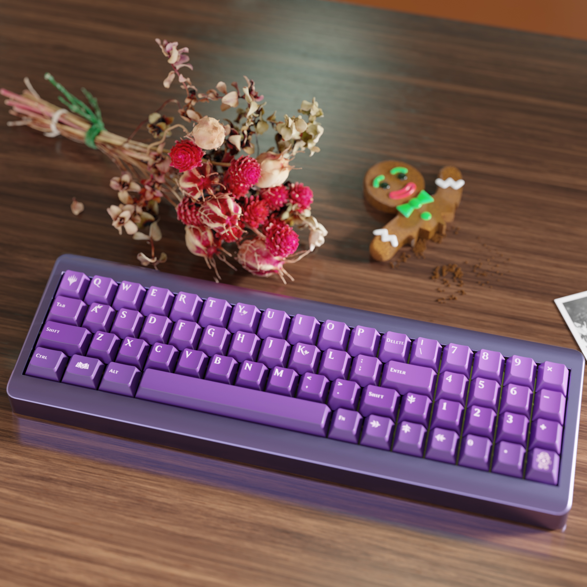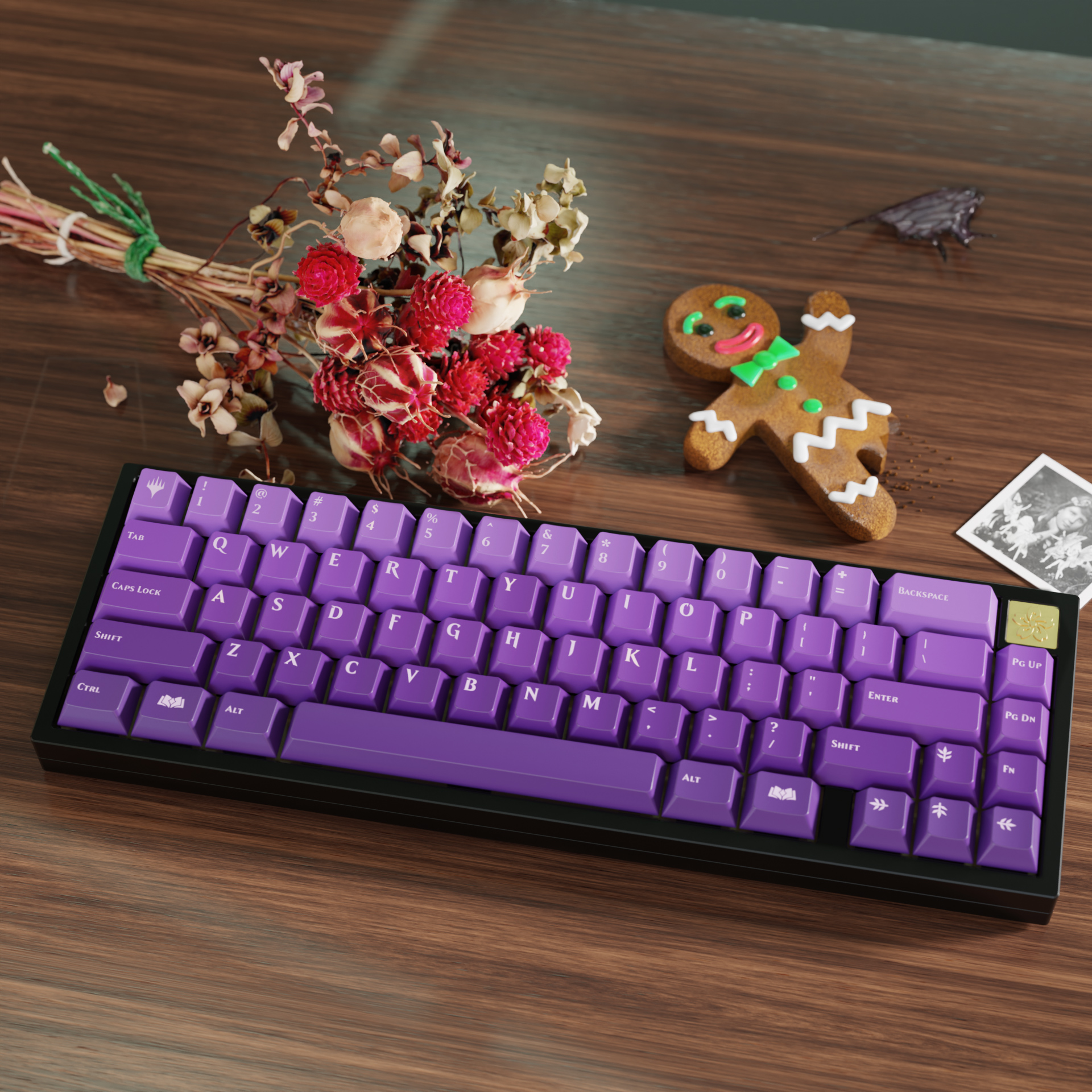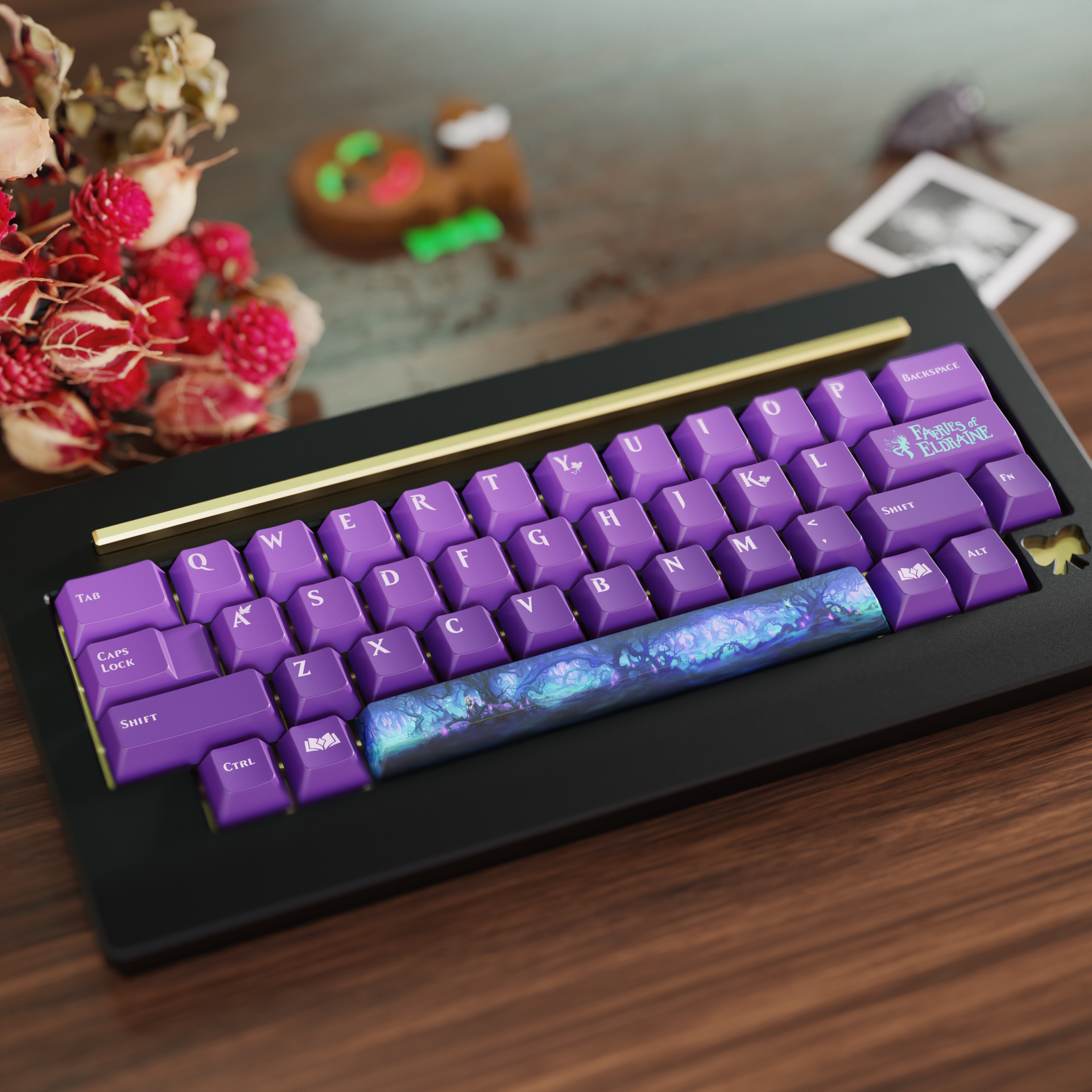 The official Eldraine keycap set on a Ikki68.