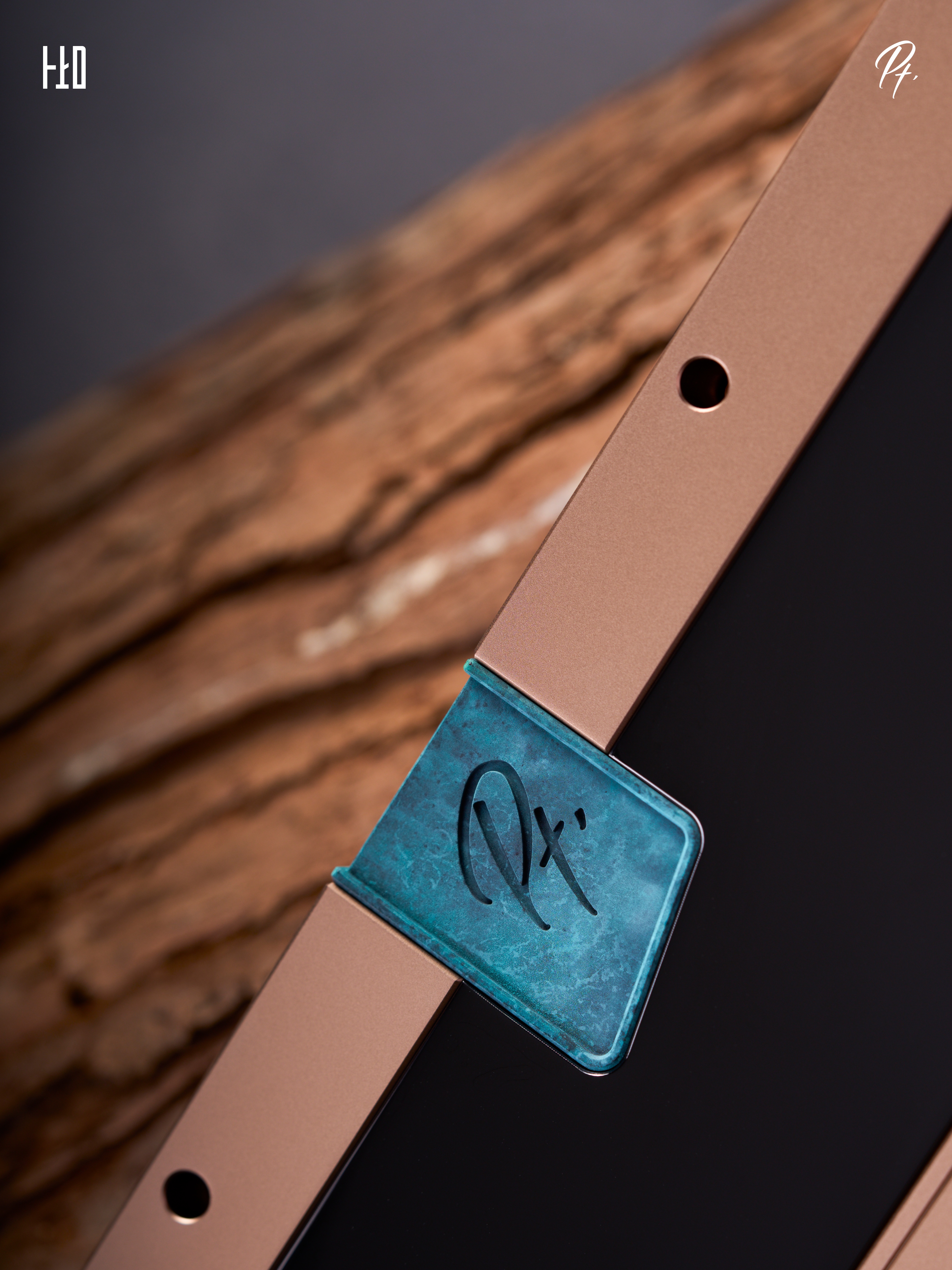 * Fuji Internal Weight: Sandblasted brass Bottom Weight: Mirror natural stainless steel USB Port Badge: Marble-colored Copper Patina