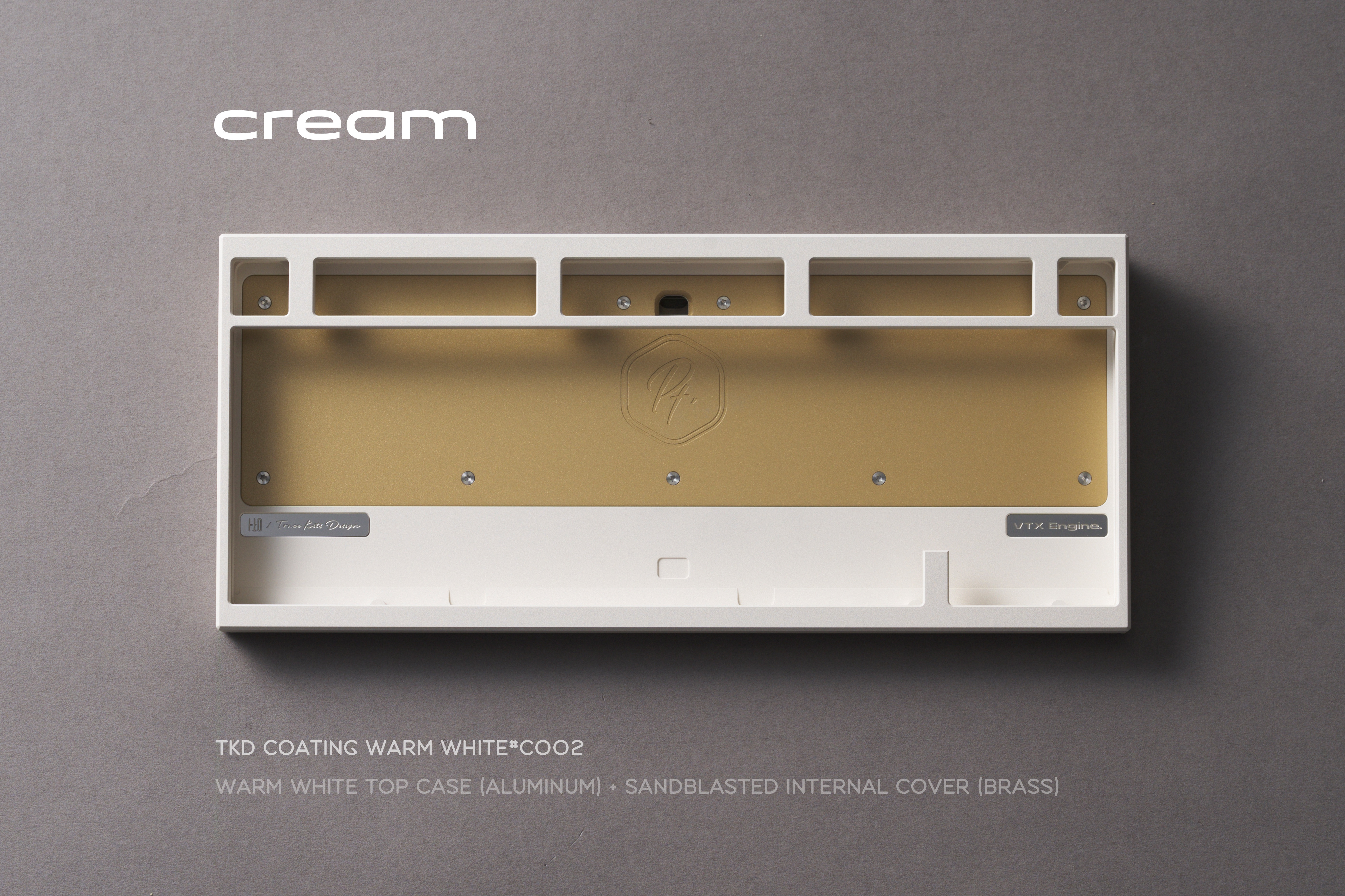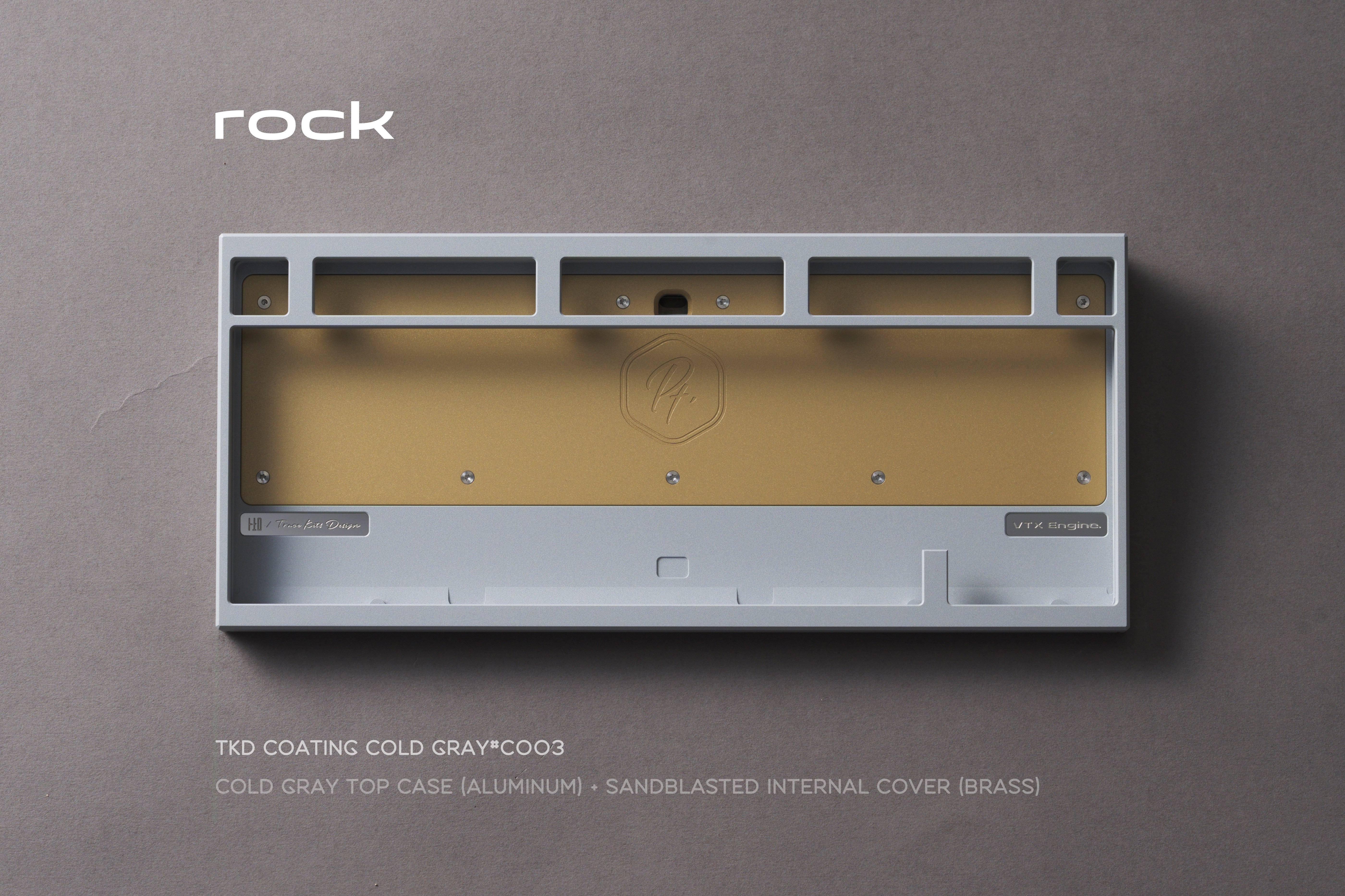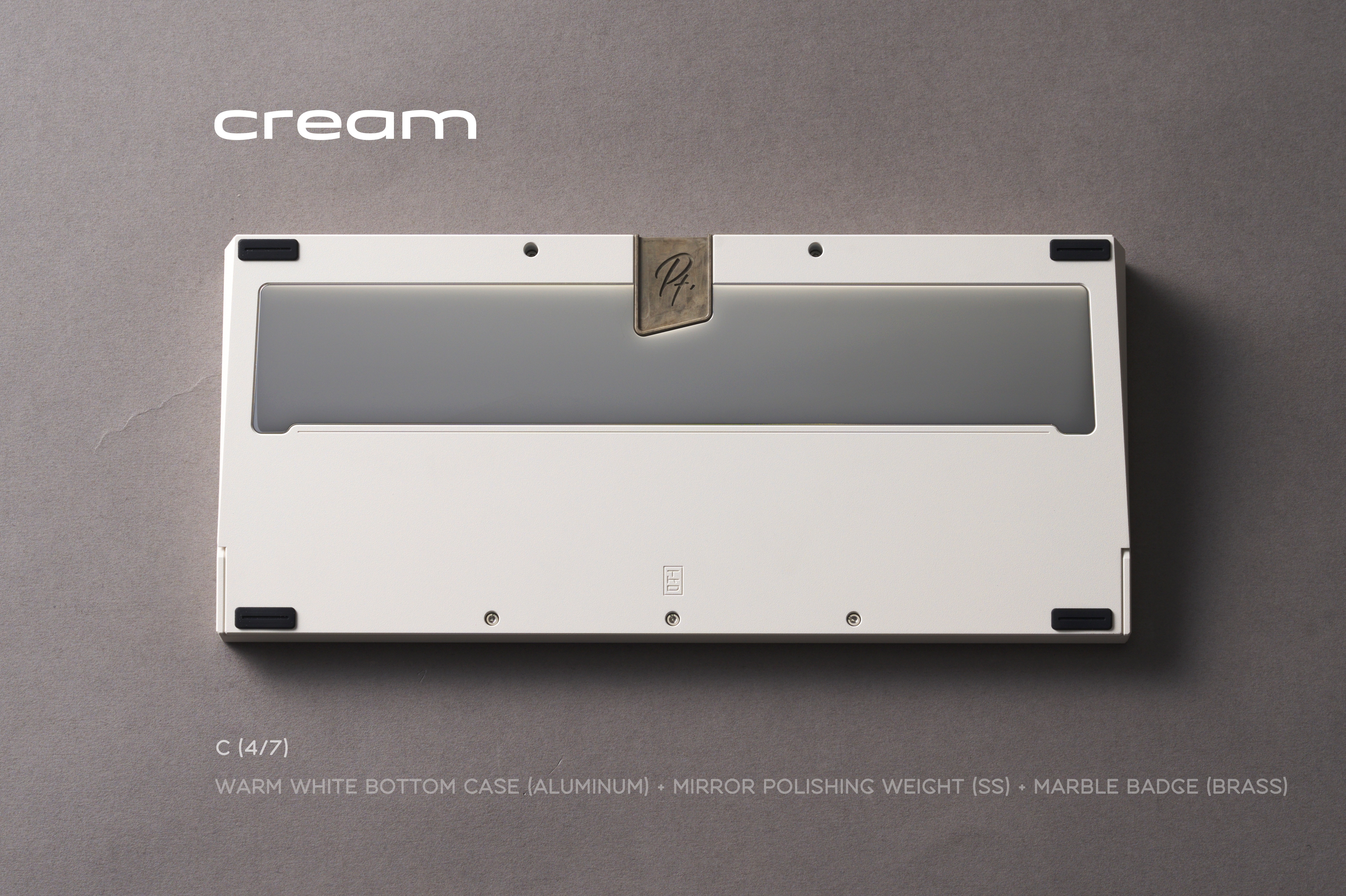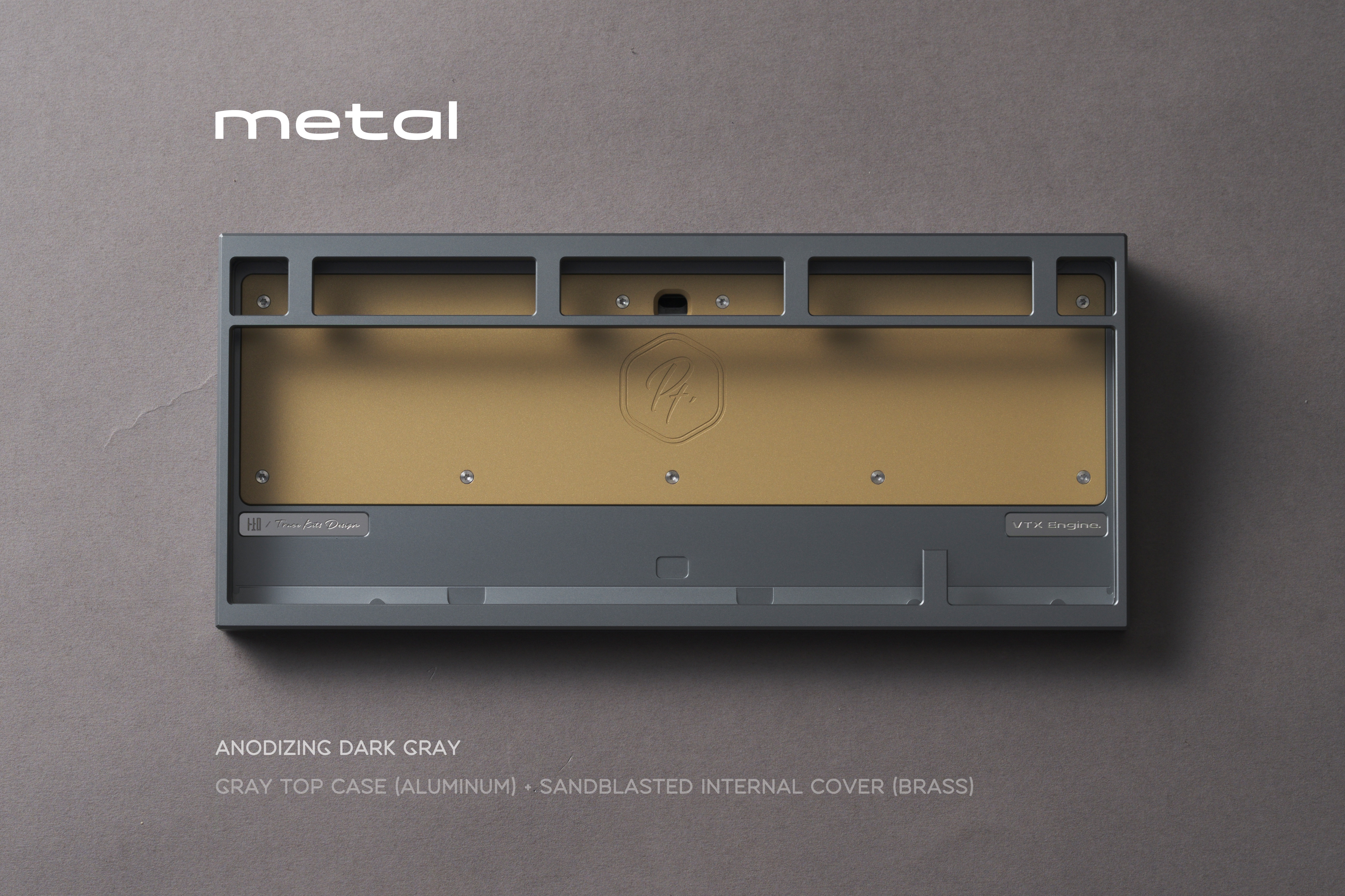 We added a large brass cover inside the bottom case of Pt.1. Below it, we left a hollow space filled with an internal stainless steel weight. Combined with the external stainless steel/brass weight on the bottom, this increases the overall weight of the keyboard while also refining the internal structure and optimizing the typing sound.