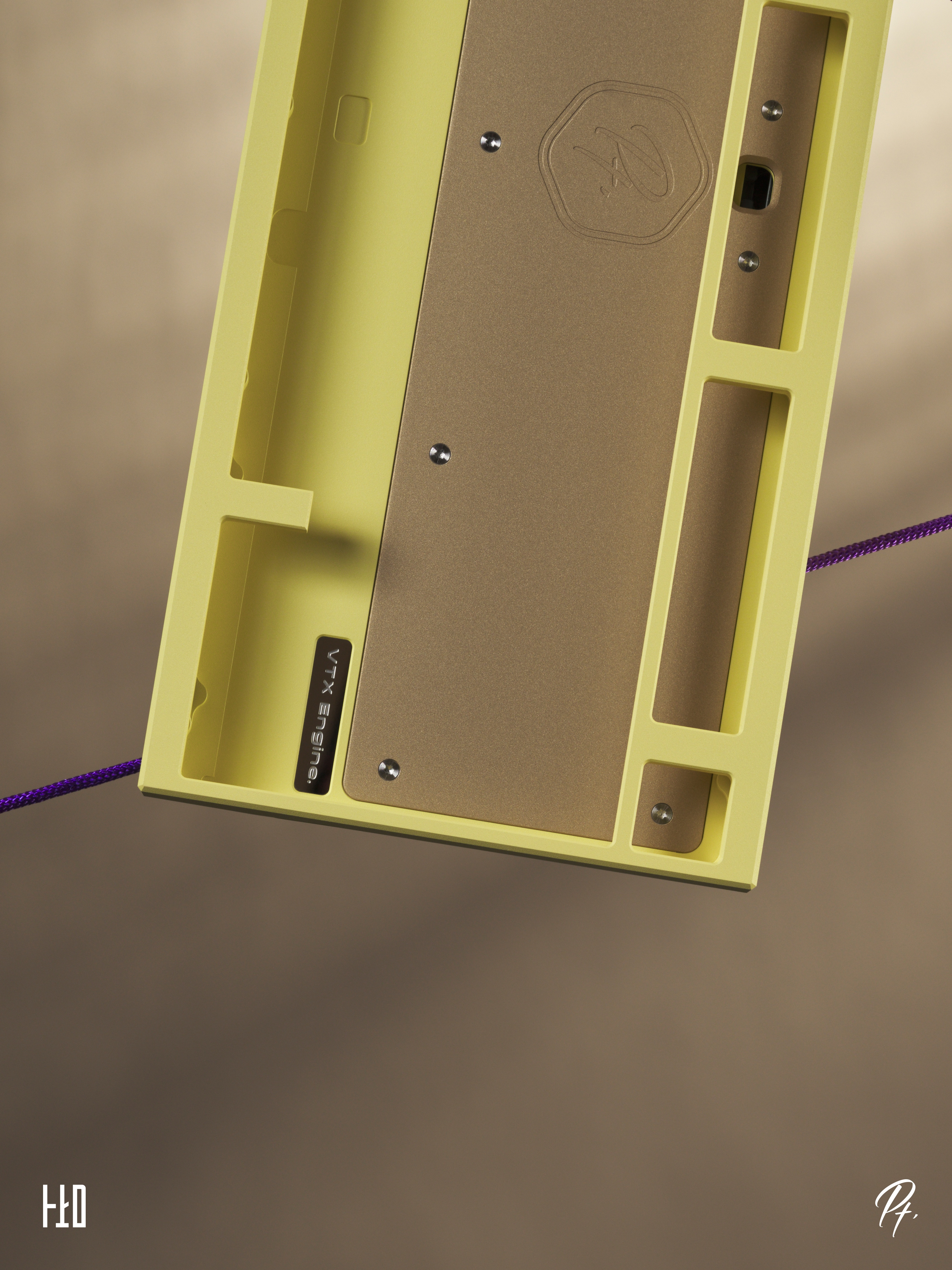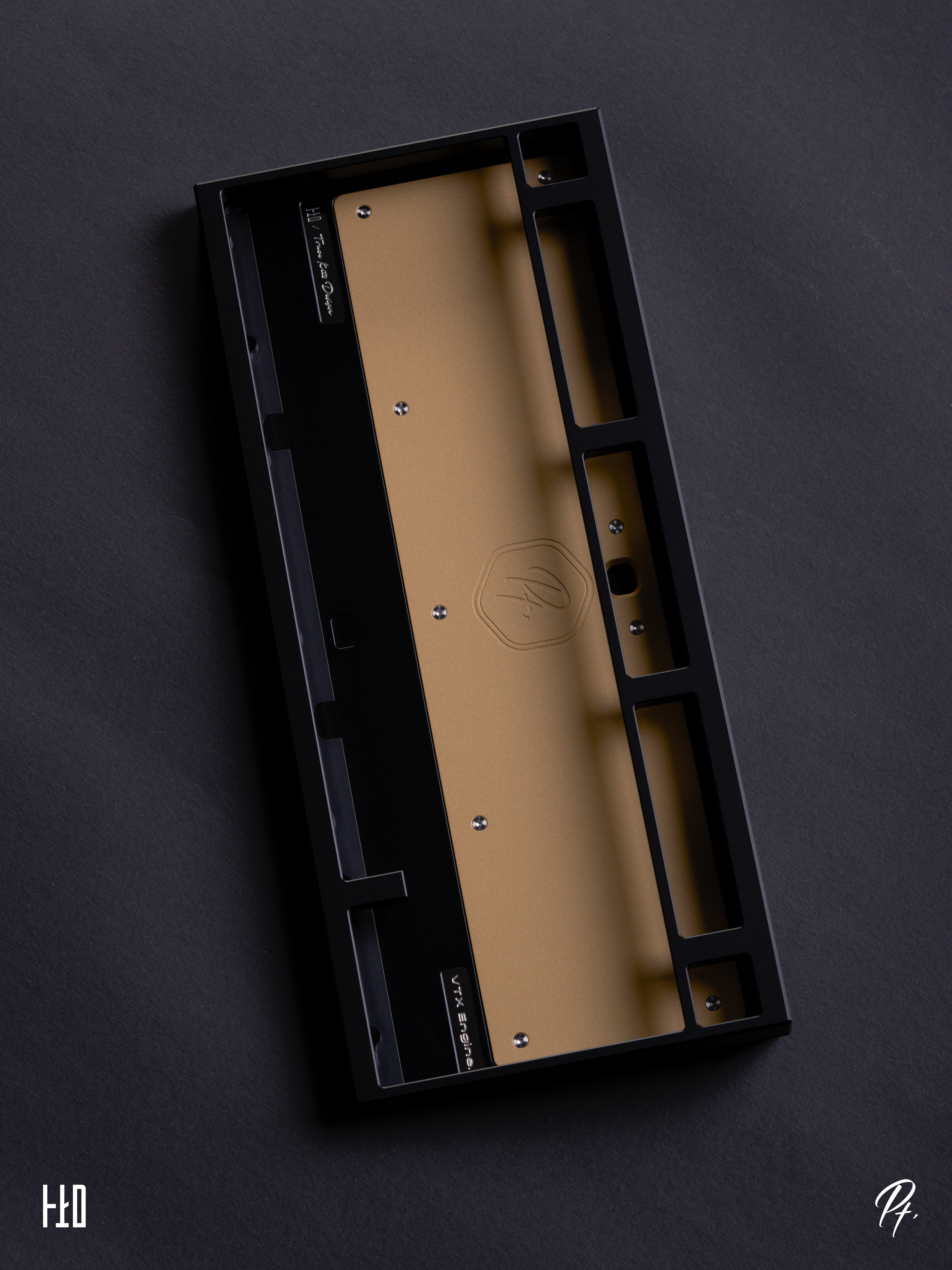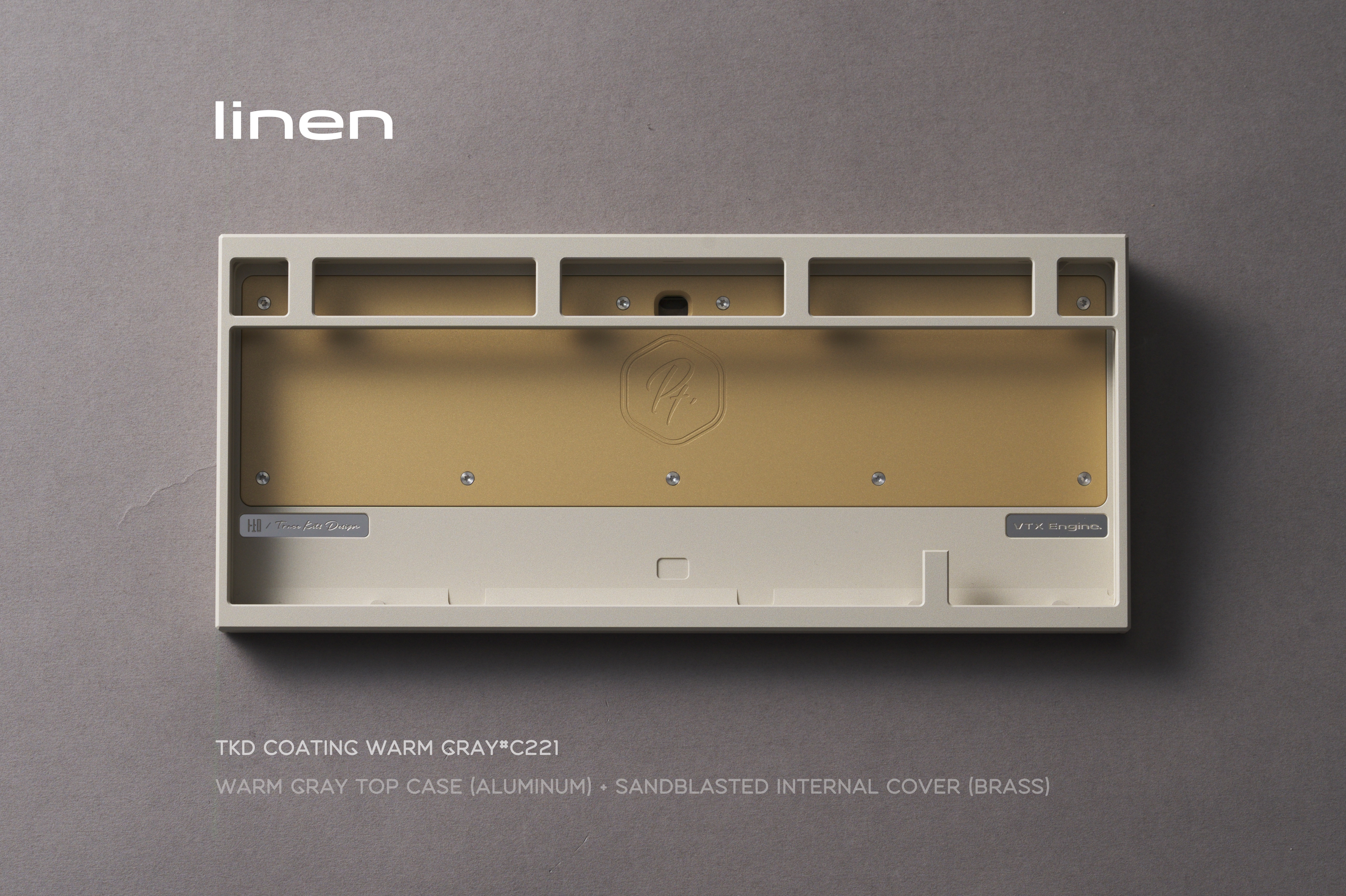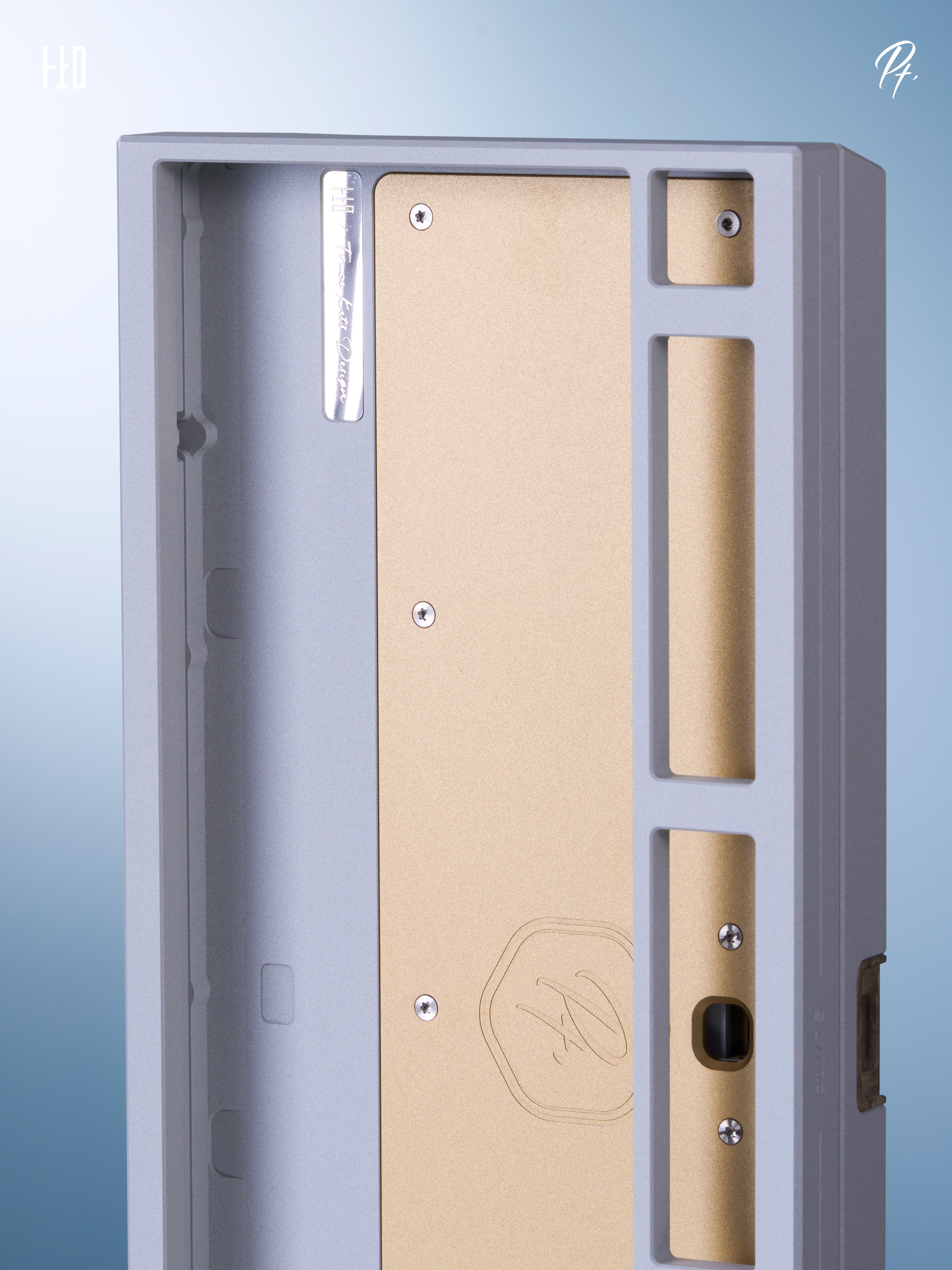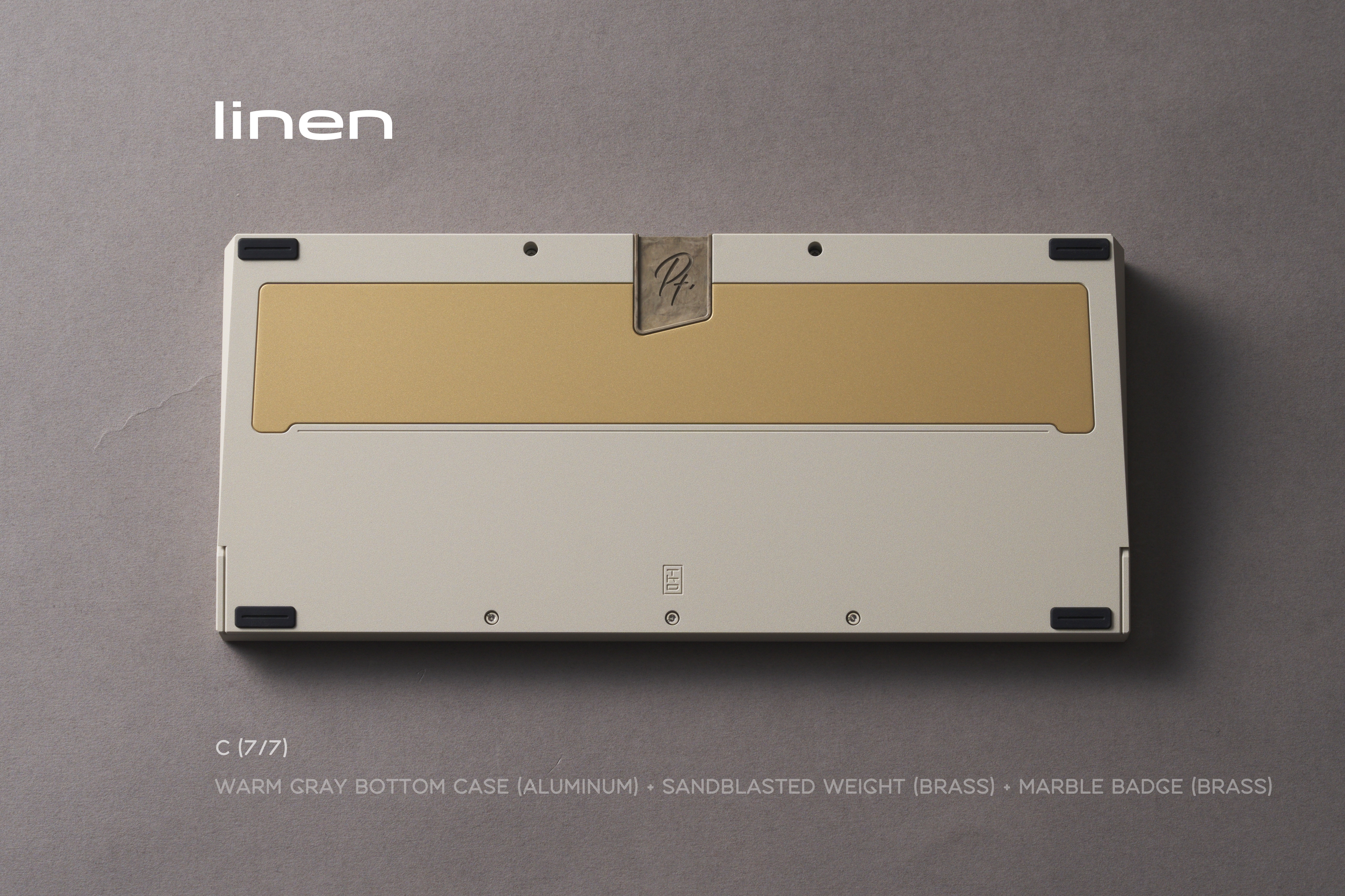We added a large brass cover inside the bottom case of Pt.1. Below it, we left a hollow space filled with an internal stainless steel weight. Combined with the external stainless steel/brass weight on the bottom, this increases the overall weight of the keyboard while also refining the internal structure and optimizing the typing sound.