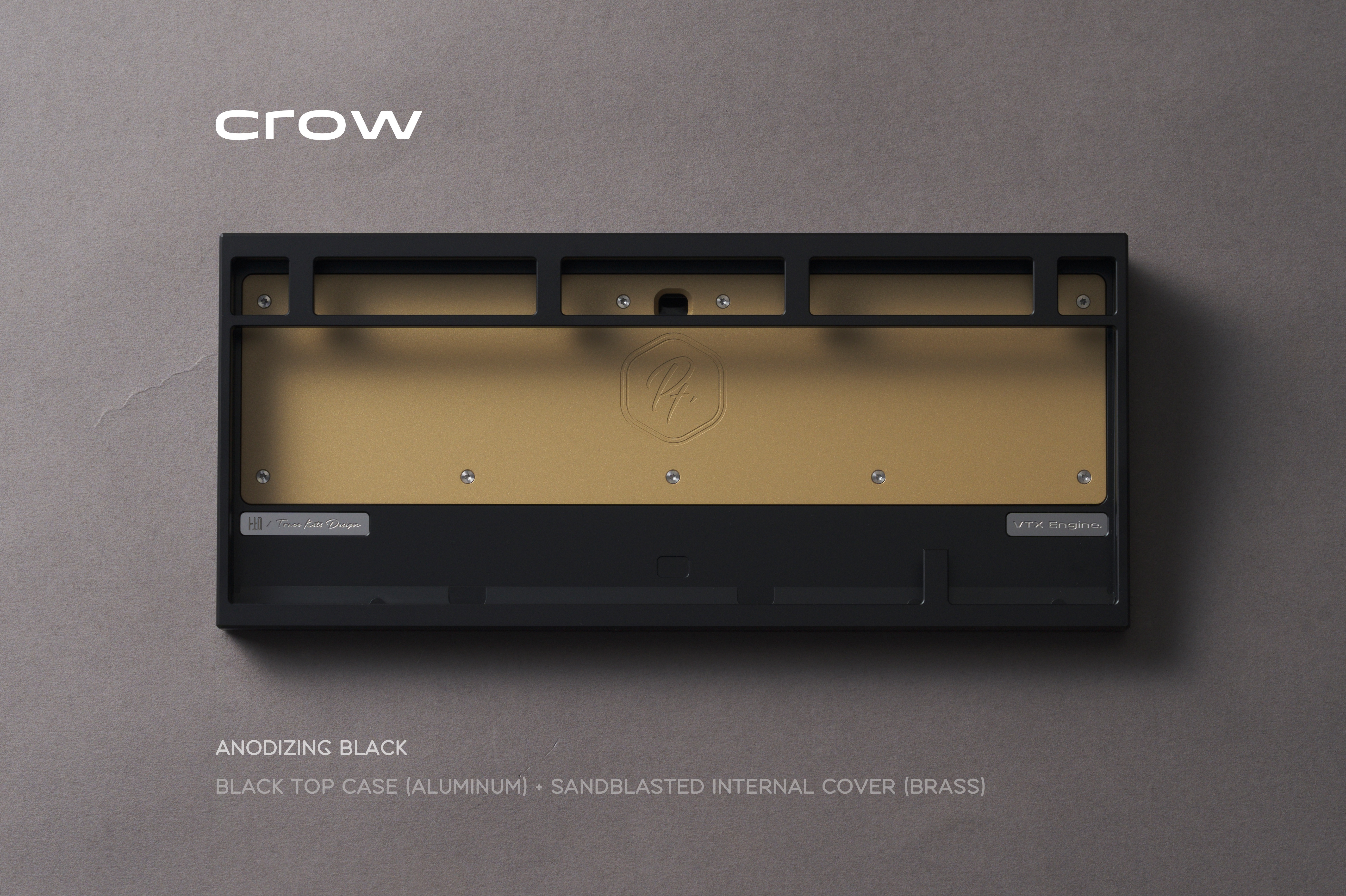 * Crow Internal Weight: Sandblasted brass Bottom Weight: Mirror-finish black PVD stainless steel USB Port Badge: Black Copper Patina