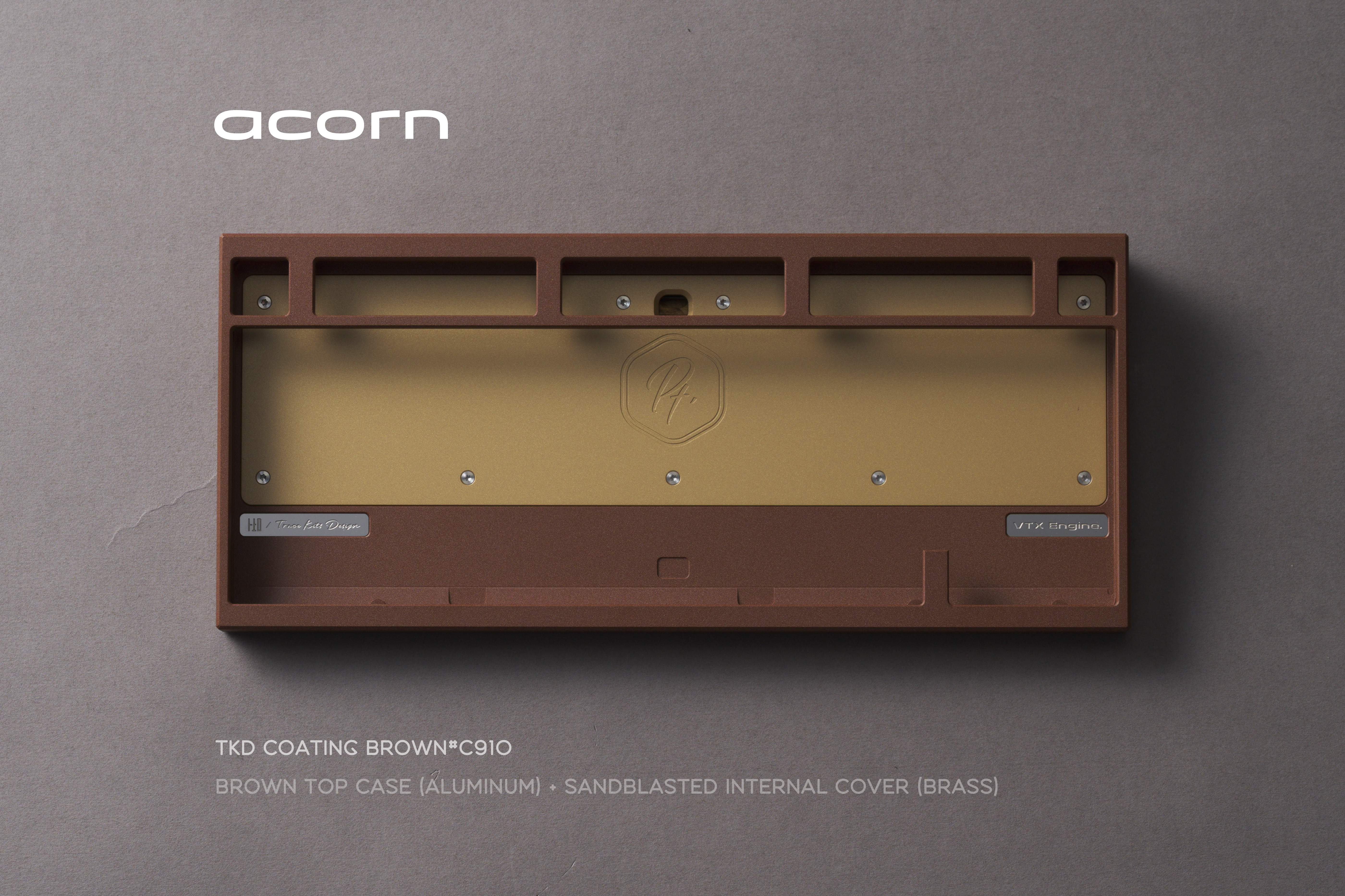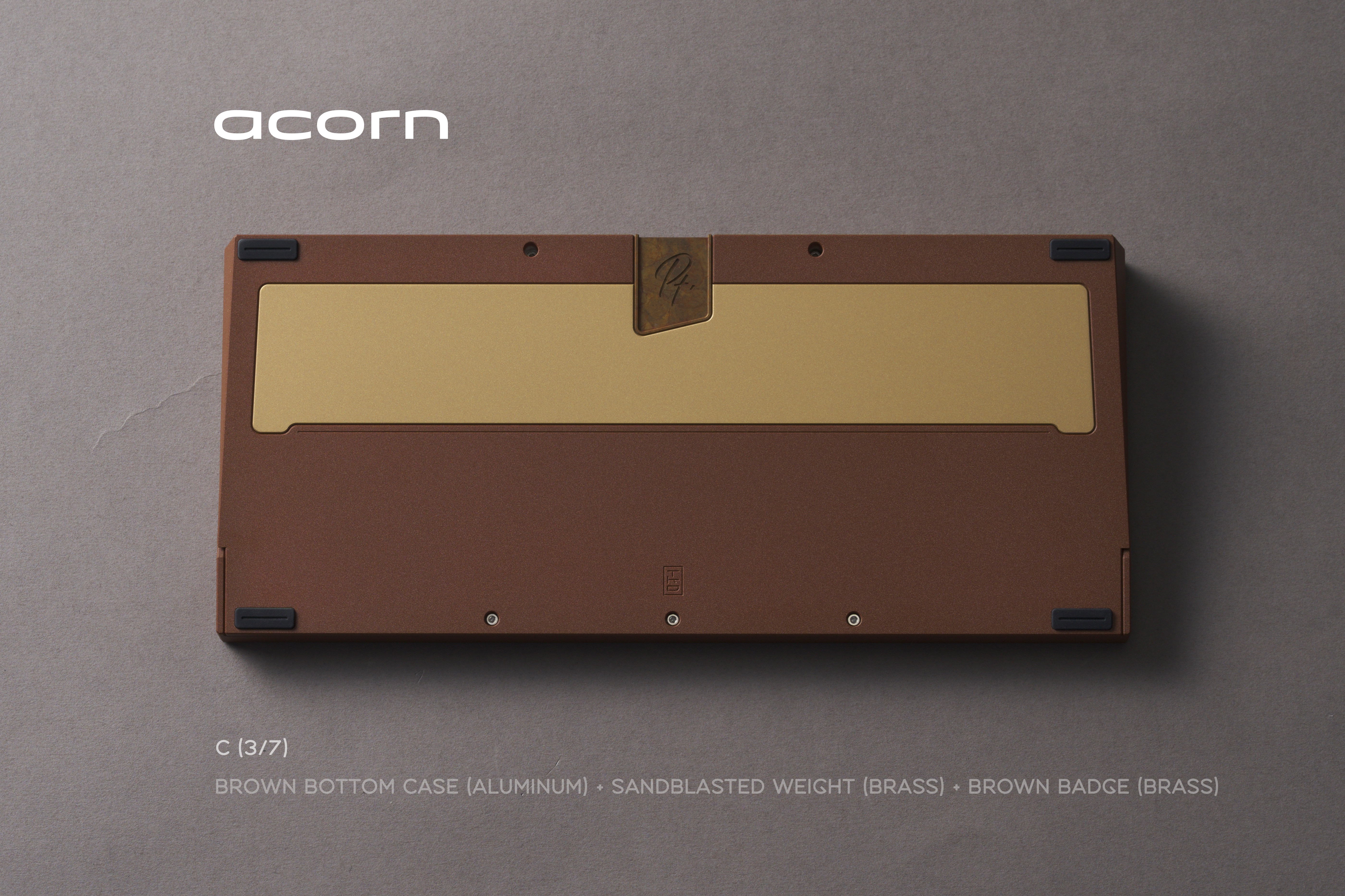 *Acorn Internal Weight: Sandblasted brass Bottom Weight: Sandblasted brass USB Port Badge: Brown Copper Patina