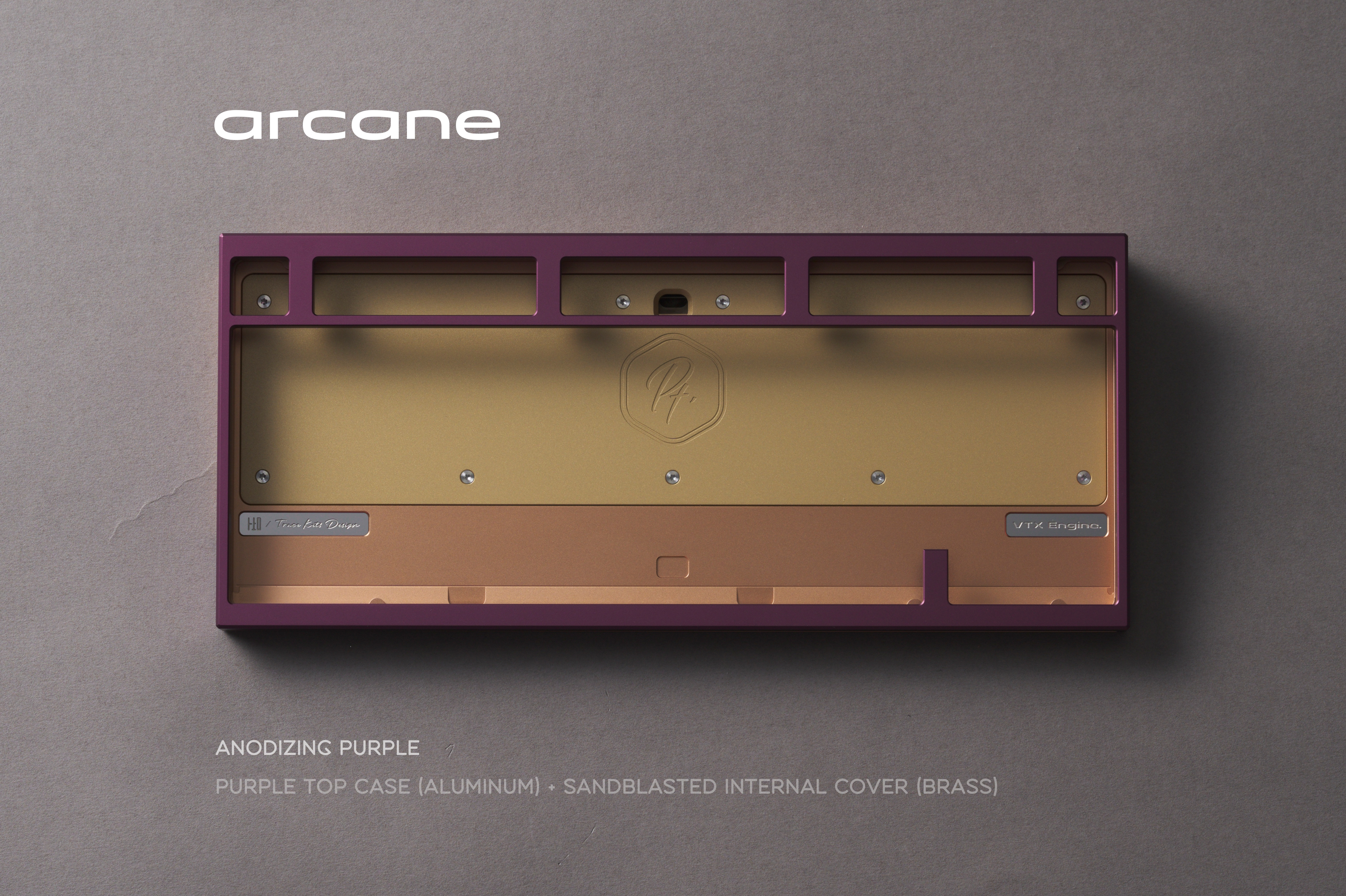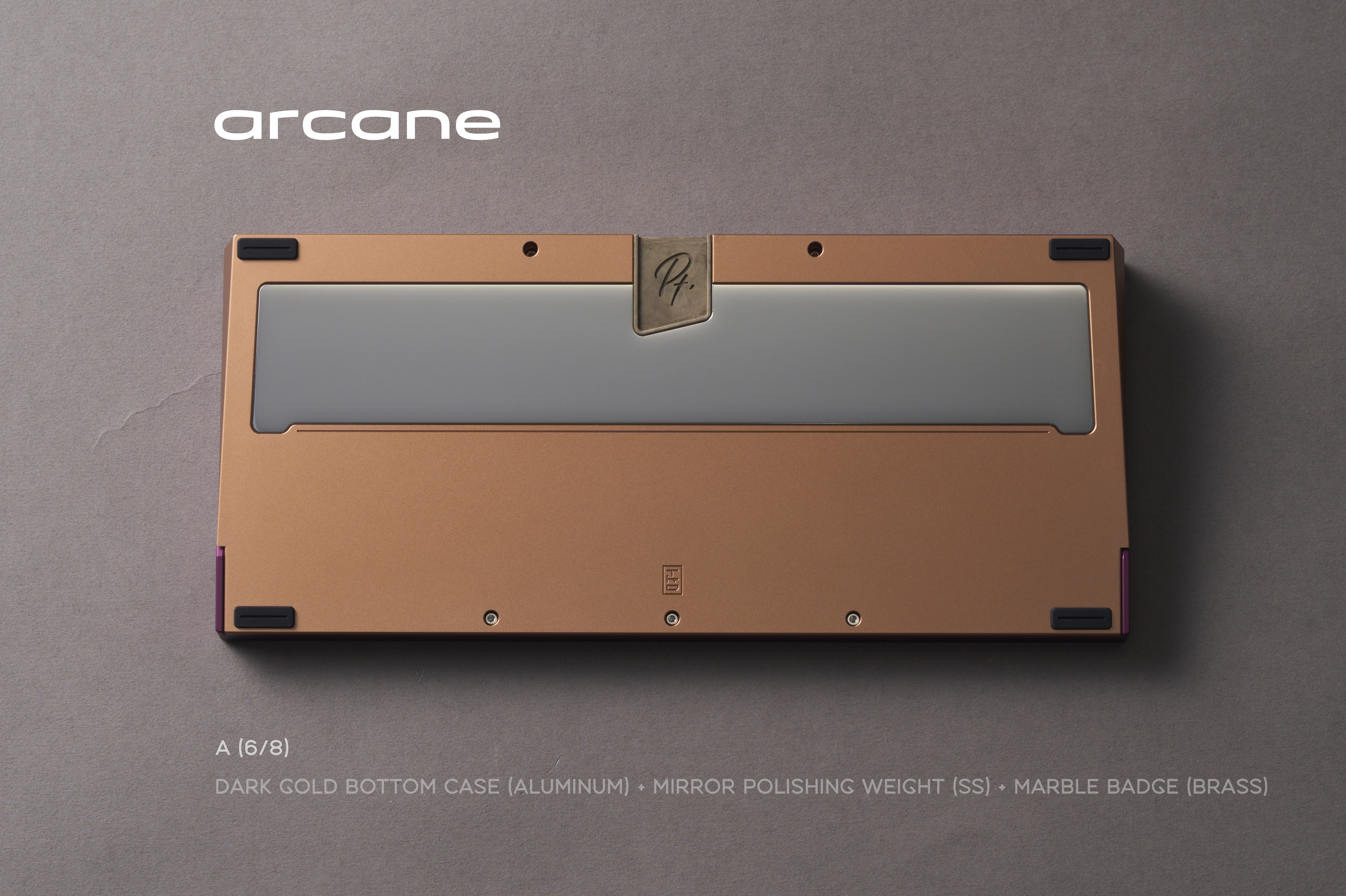 * Arcane Internal Weight: Sandblasted brass Bottom Weight: Mirror natural stainless steel USB Port Badge: Marble-colored Copper Patina