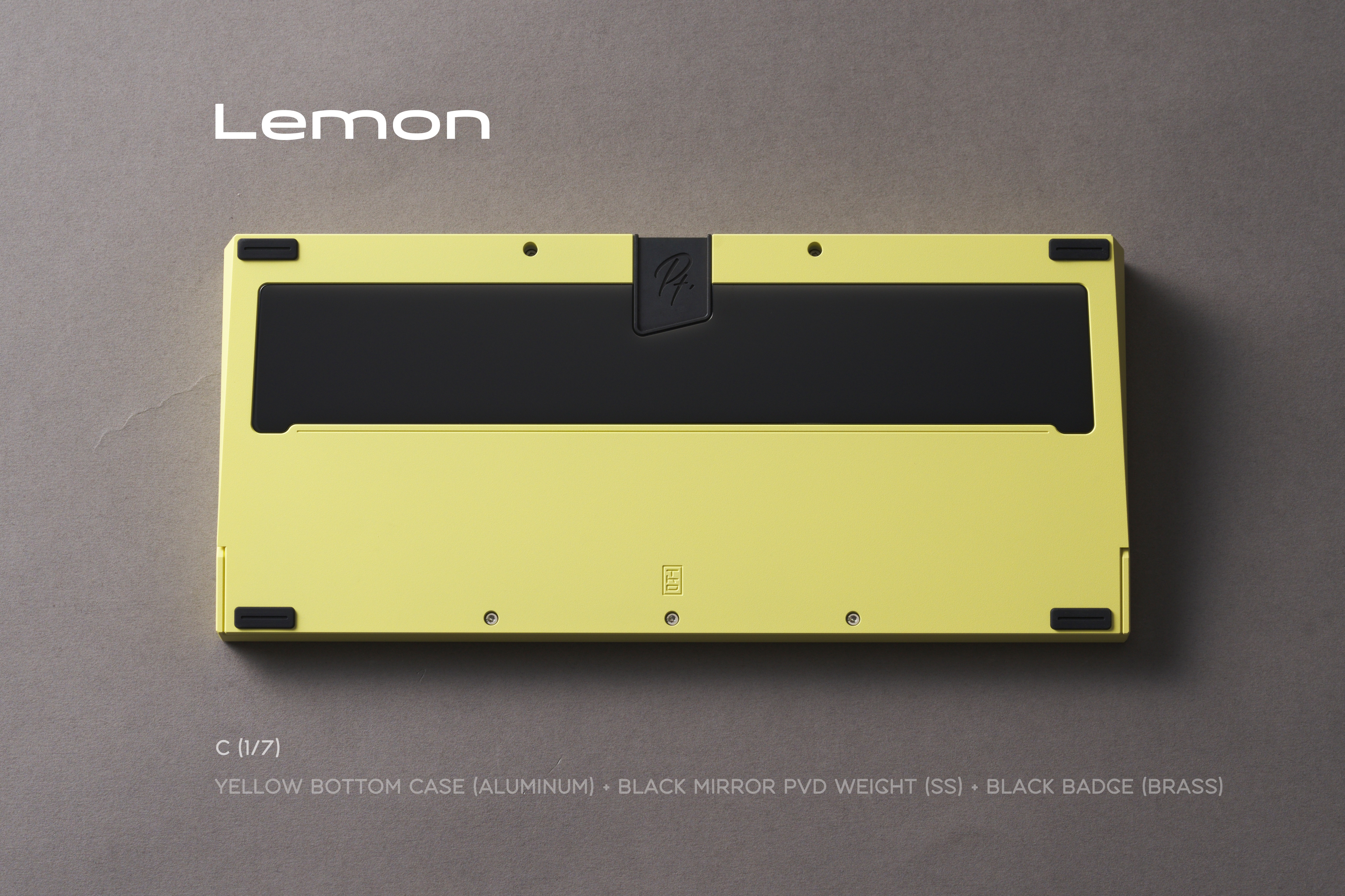 *Lemon Internal Weight: Sandblasted brass Bottom Weight: Mirror black PVD stainless steel USB Port Badge: Black Copper Patina