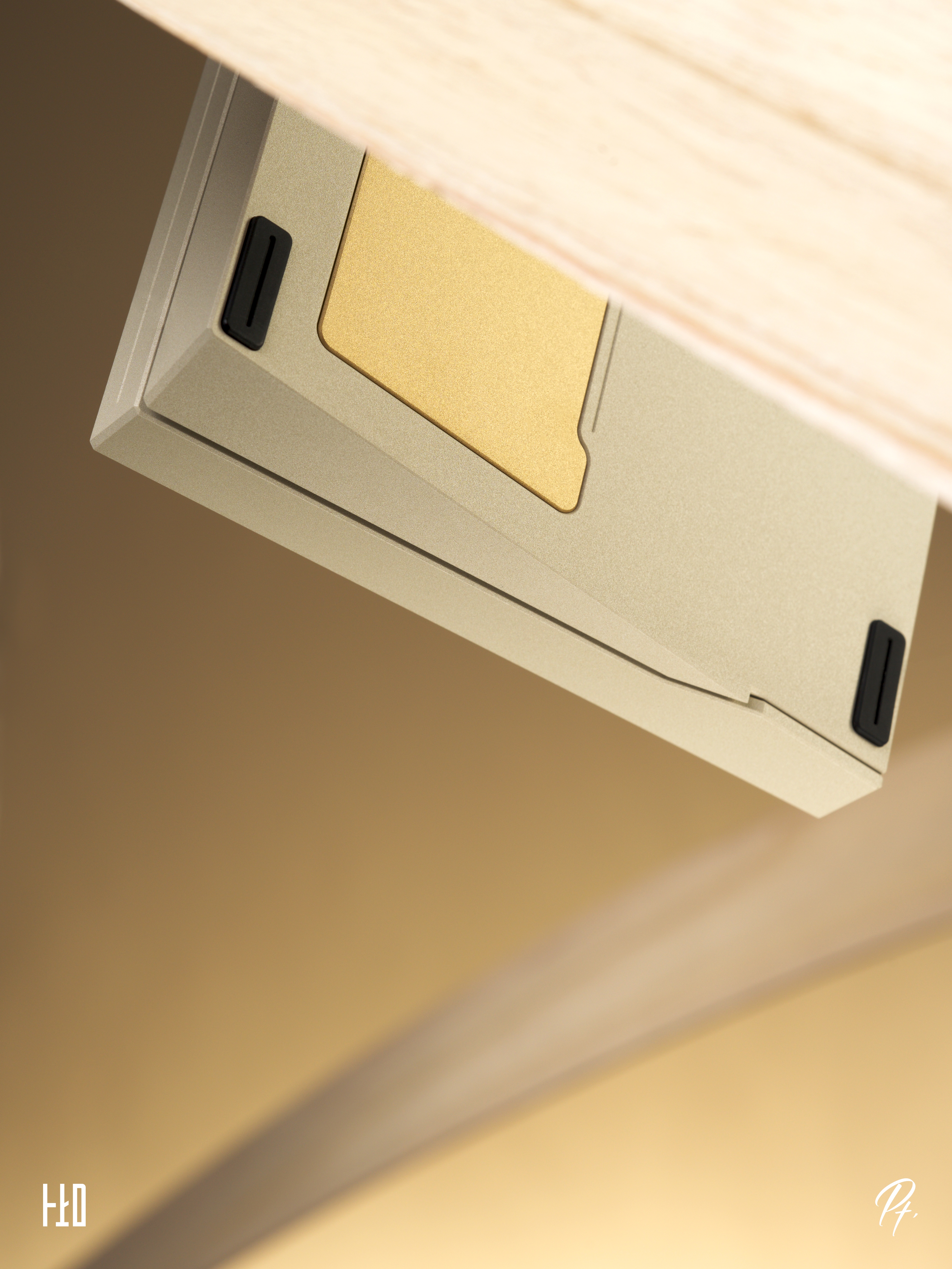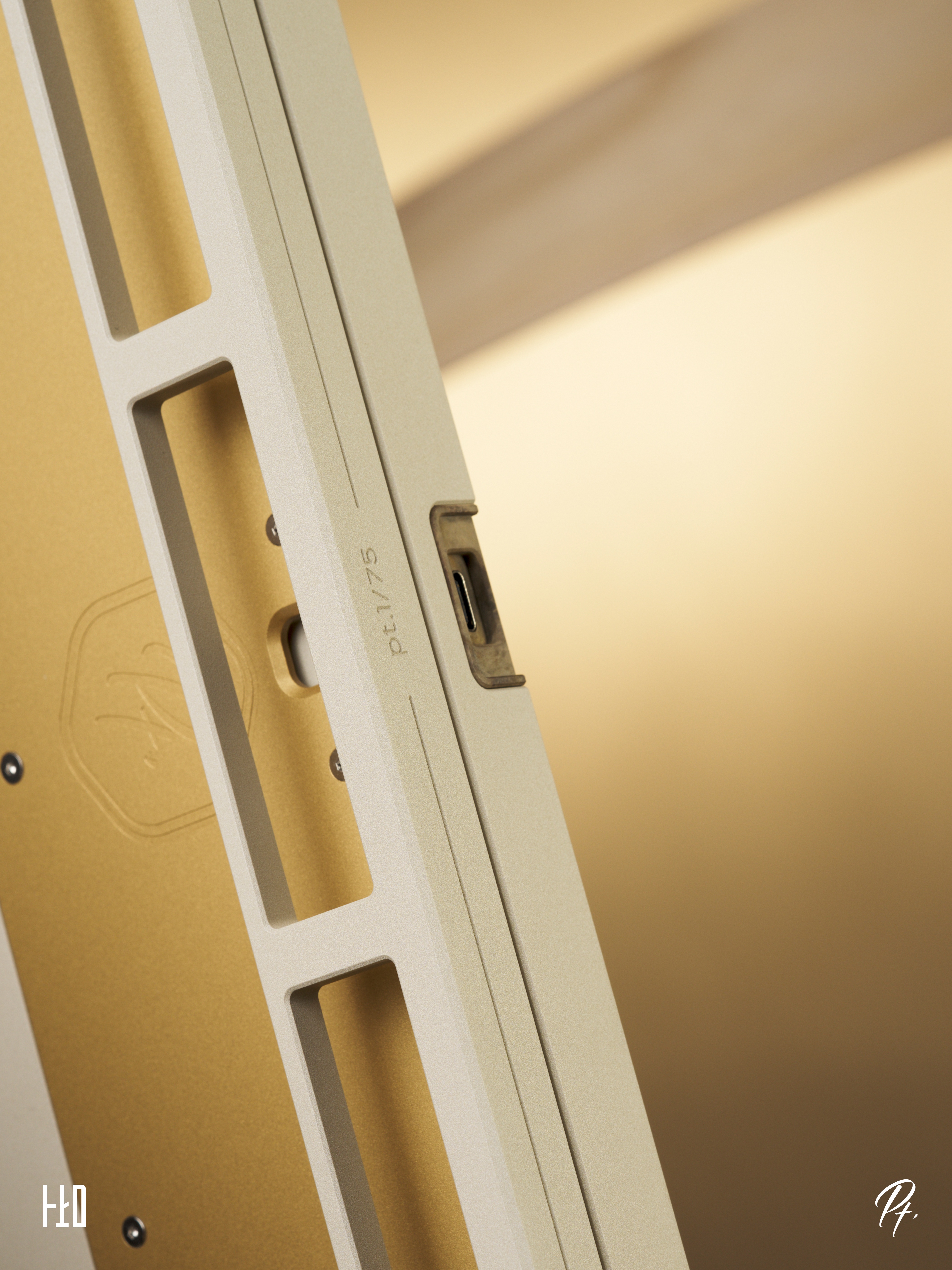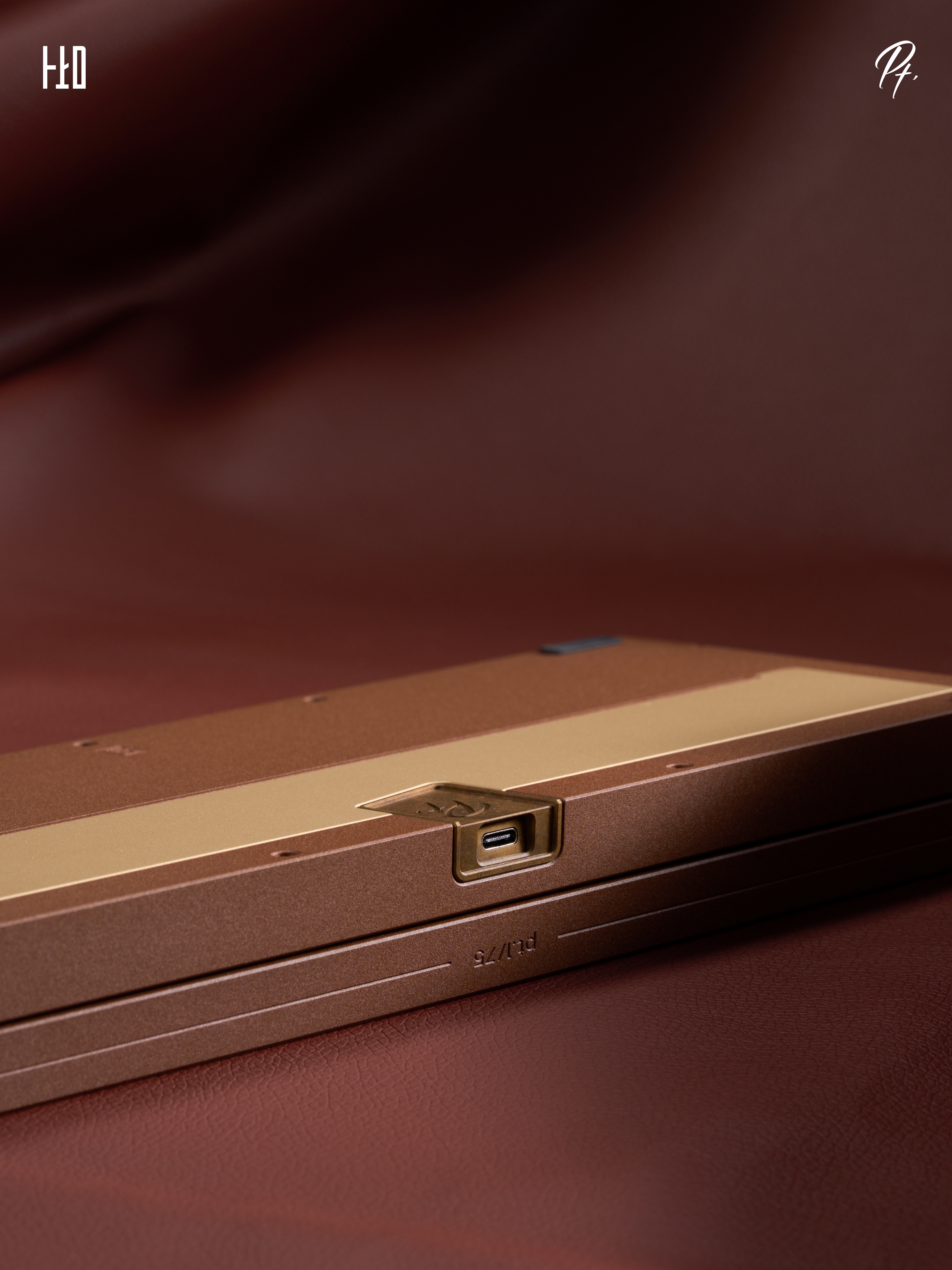 For Pt.1, we designed a separate USB port housing as an independent decorative piece made of brass. The surface is treated with a process, which complements the accents on the bottom and rear of the keyboard.