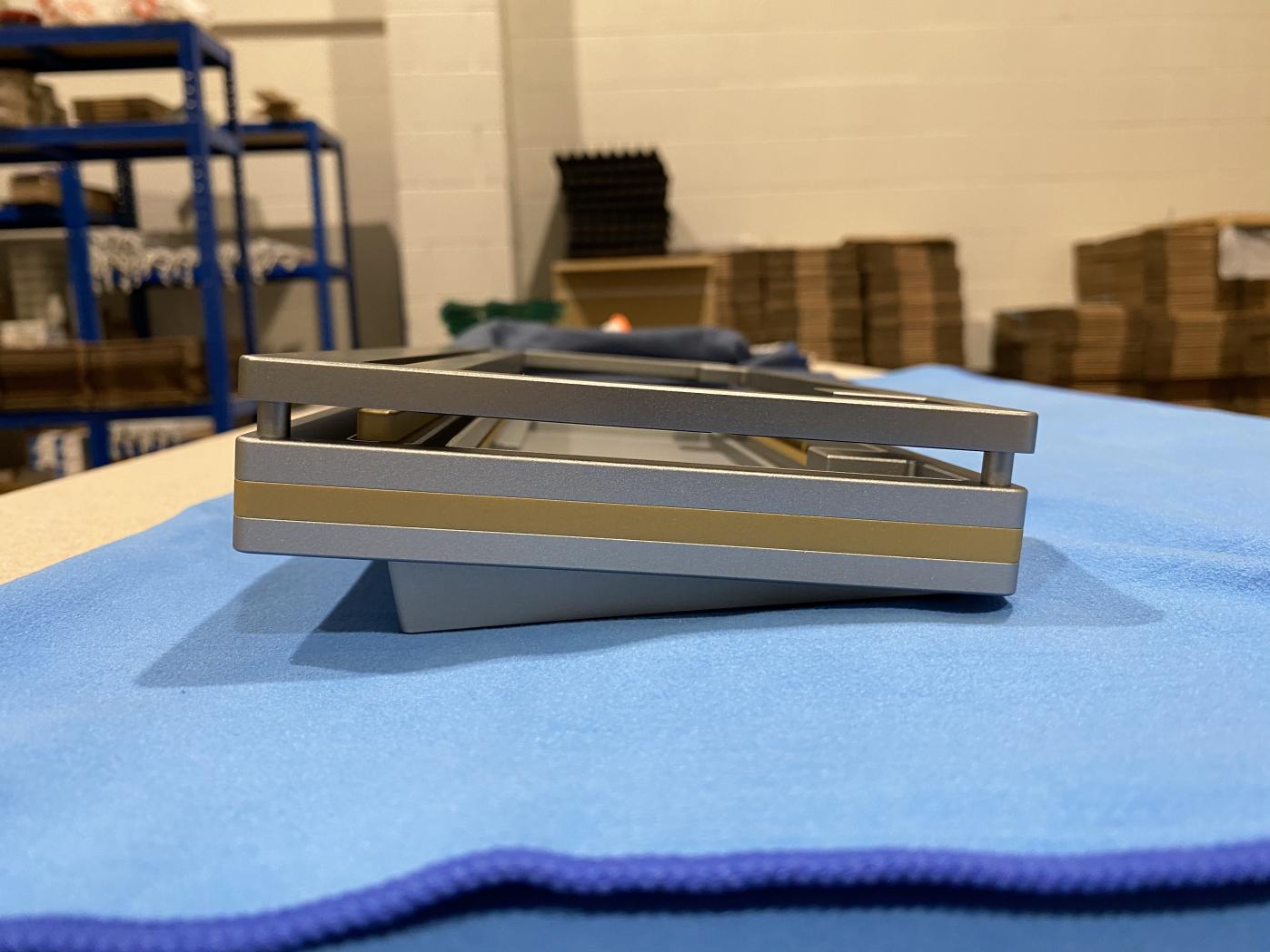 The 'Meh' news:All Black and LE boards have been manufactured to spec. The Grey boards have been produced in a lighter shade of grey than we requested. I worked with the manu to adapt a colour to the grey prototype shown in pictures and on streams etc (same grey as the Lodestone base, J-01 base, and the J-02 Prototype). The manufacturer is not willing to refinish these boards (This is due to the fact that re-finishing can have a significant and detrimental impact on quality of the final finish of the aluminium parts), and has sent them to the vendors despite Upas trying his best to get them to resolve prior to shipping. You can see a picture below comparing the prototype finish top compared to the production board.
